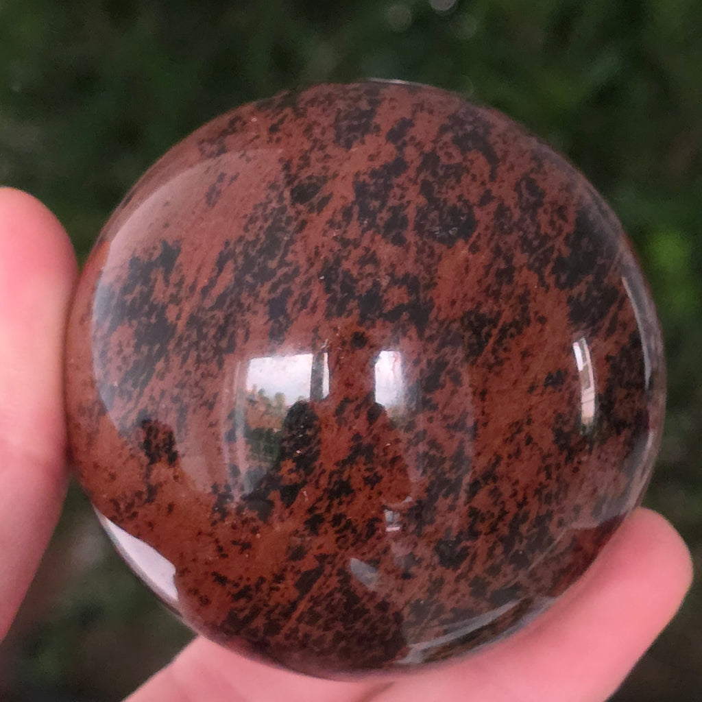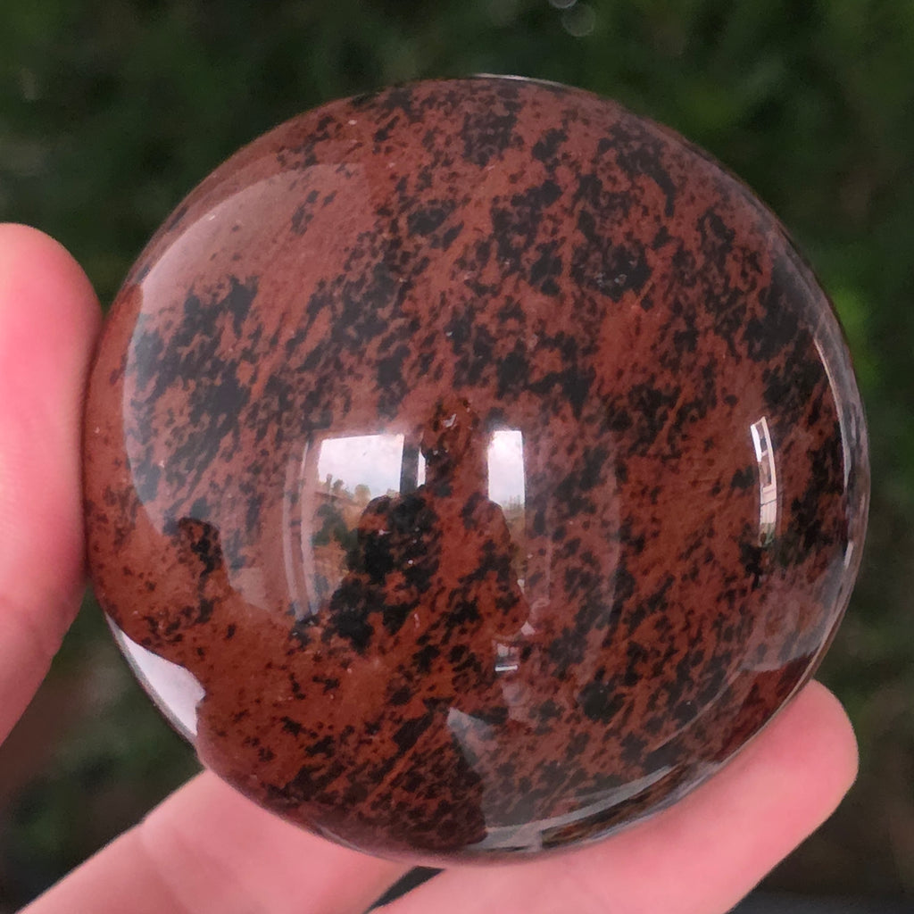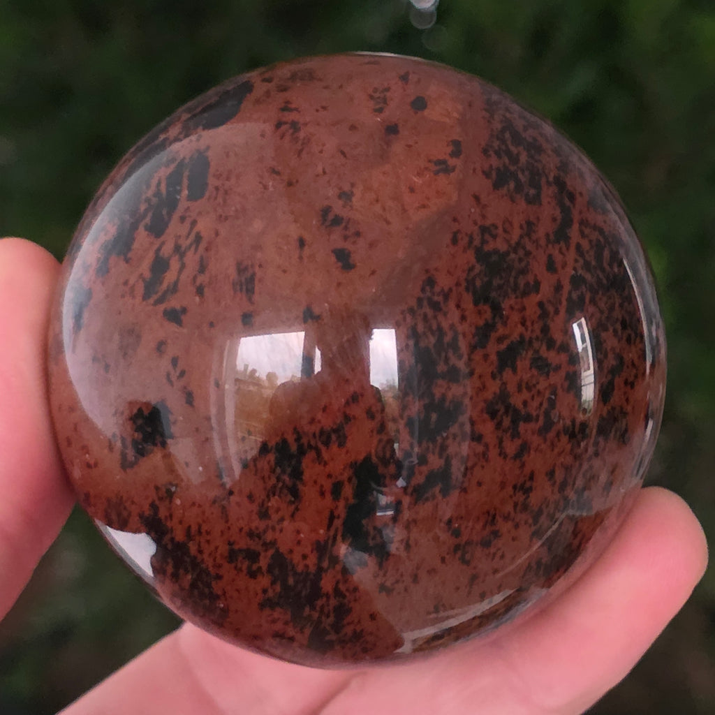 Lasă-te inspirat de forța liniștită a Pământului prin această sferă din obsidian mahon.