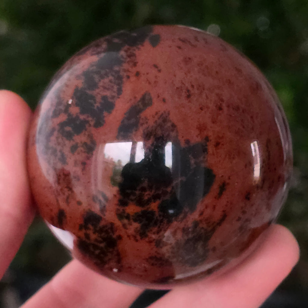 Lasă-te inspirat de forța liniștită a Pământului prin această sferă din obsidian mahon.