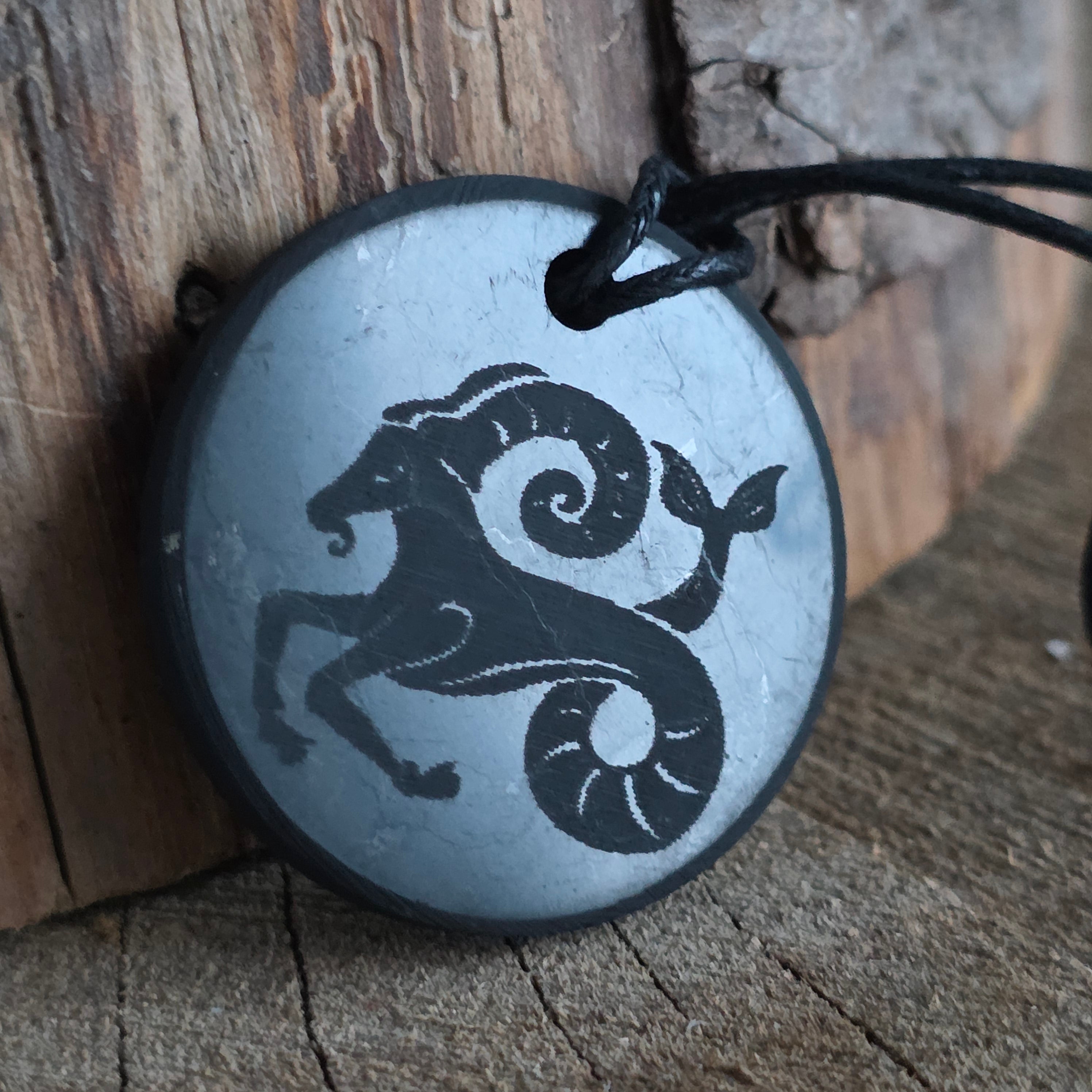 - Pendant Shape: round, engraved with the Capricorn astrological symbol