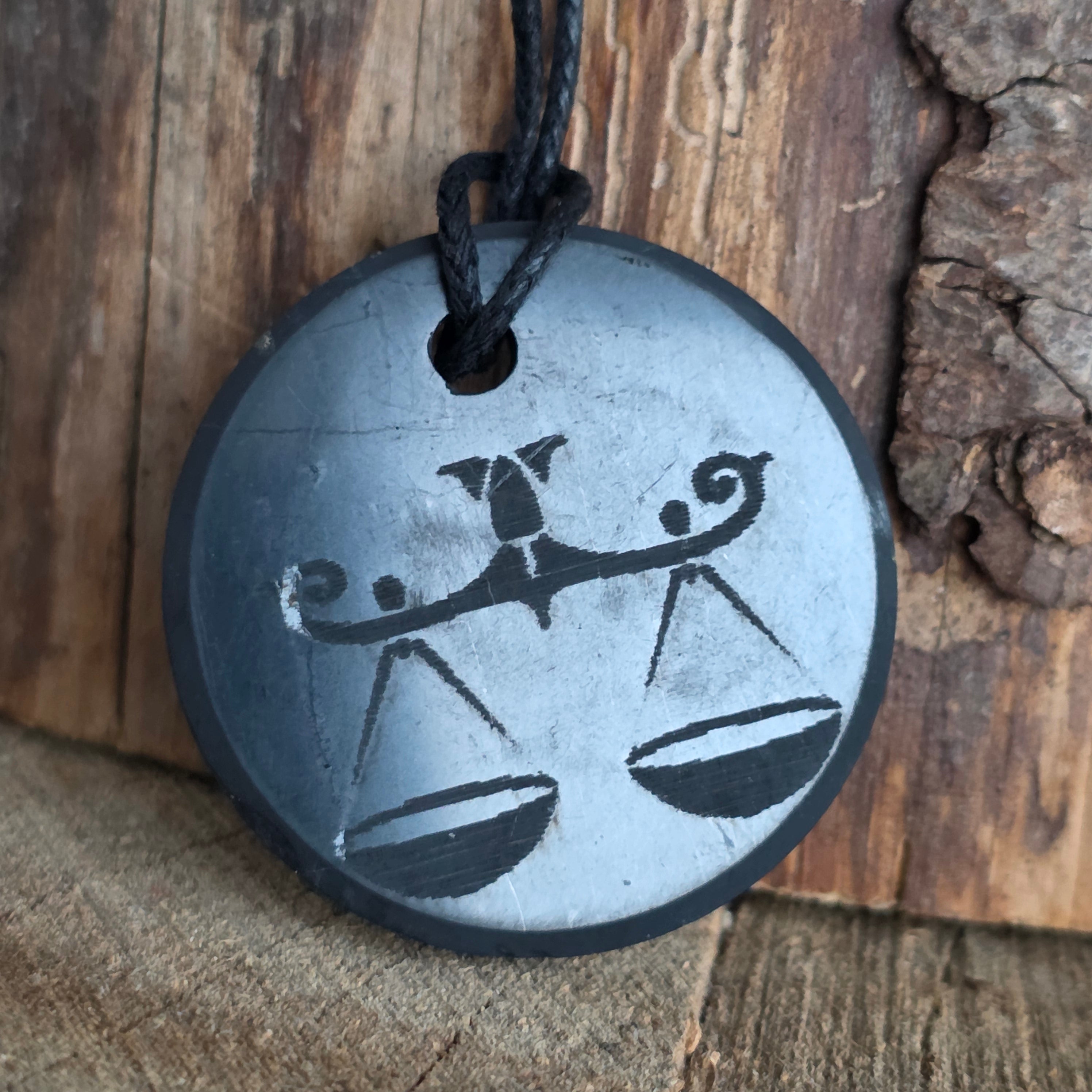 - Pendant Shape: round, engraved with Libra zodiac symbol