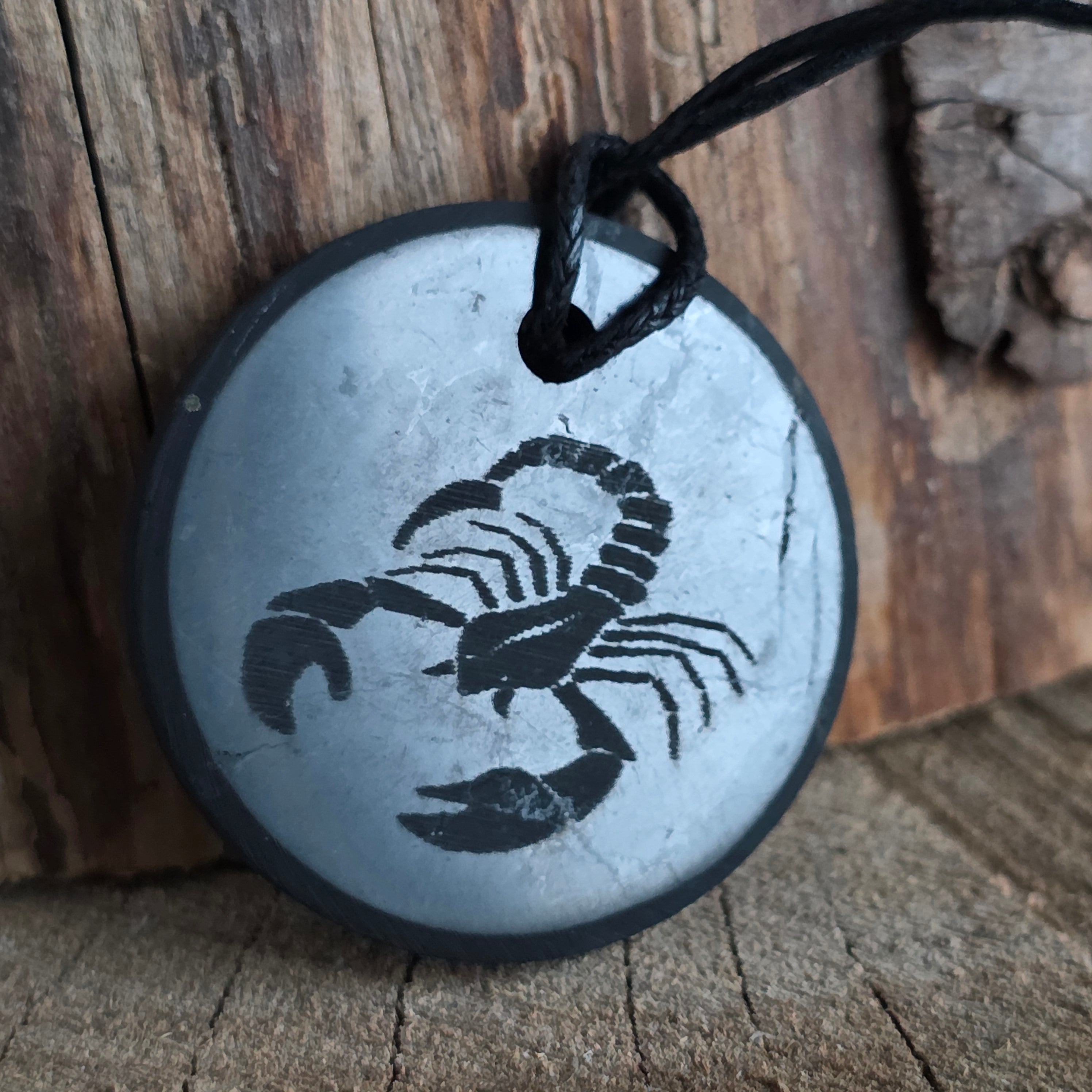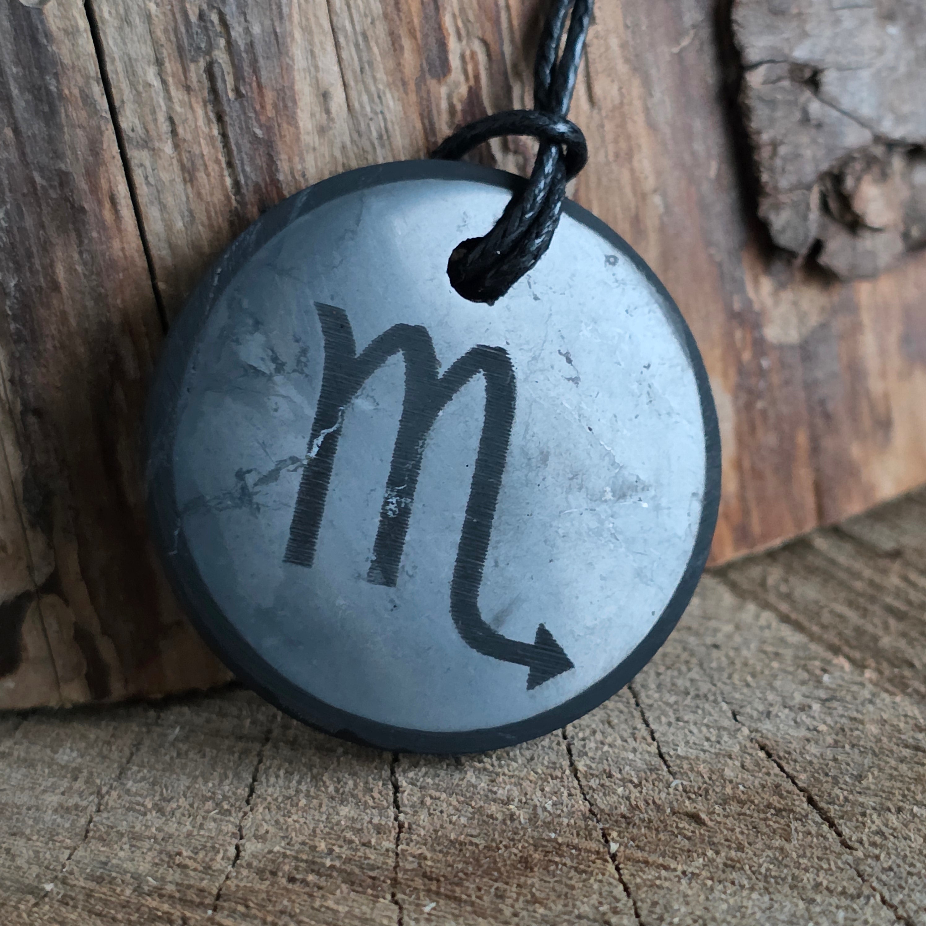 - Pendant Shape: round, engraved with Scorpio astrological symbol
