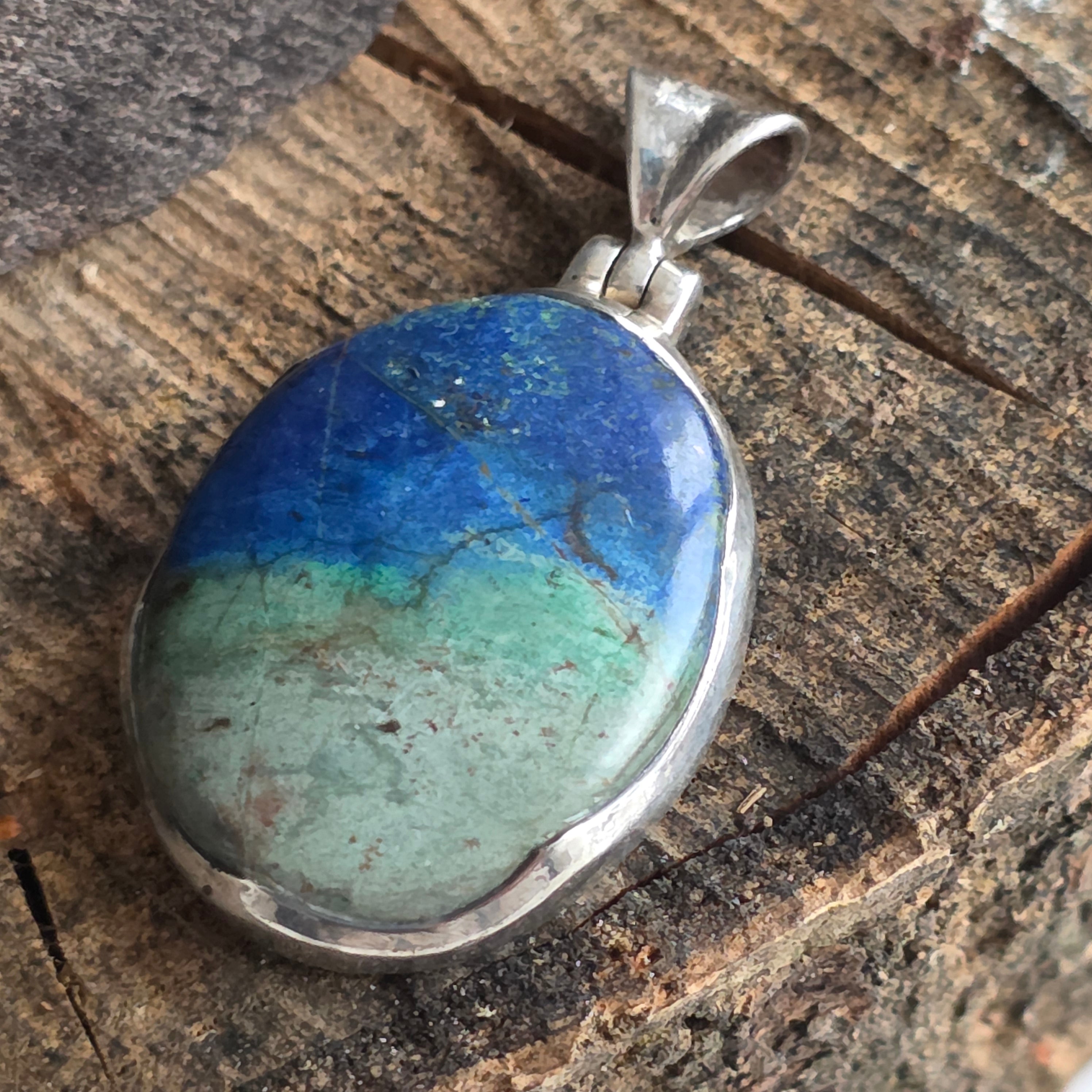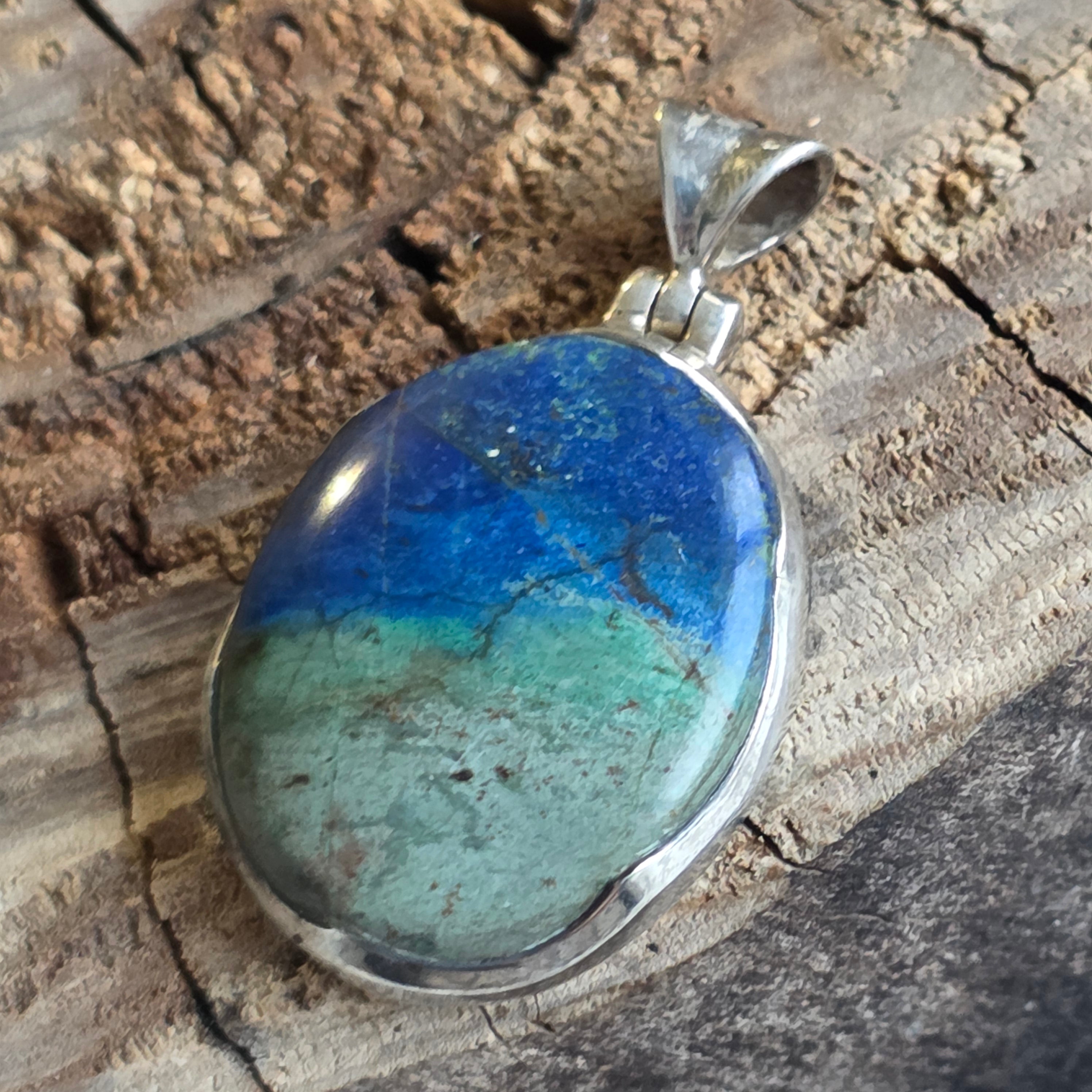 Silver azurite-malachite pendant | Model 1