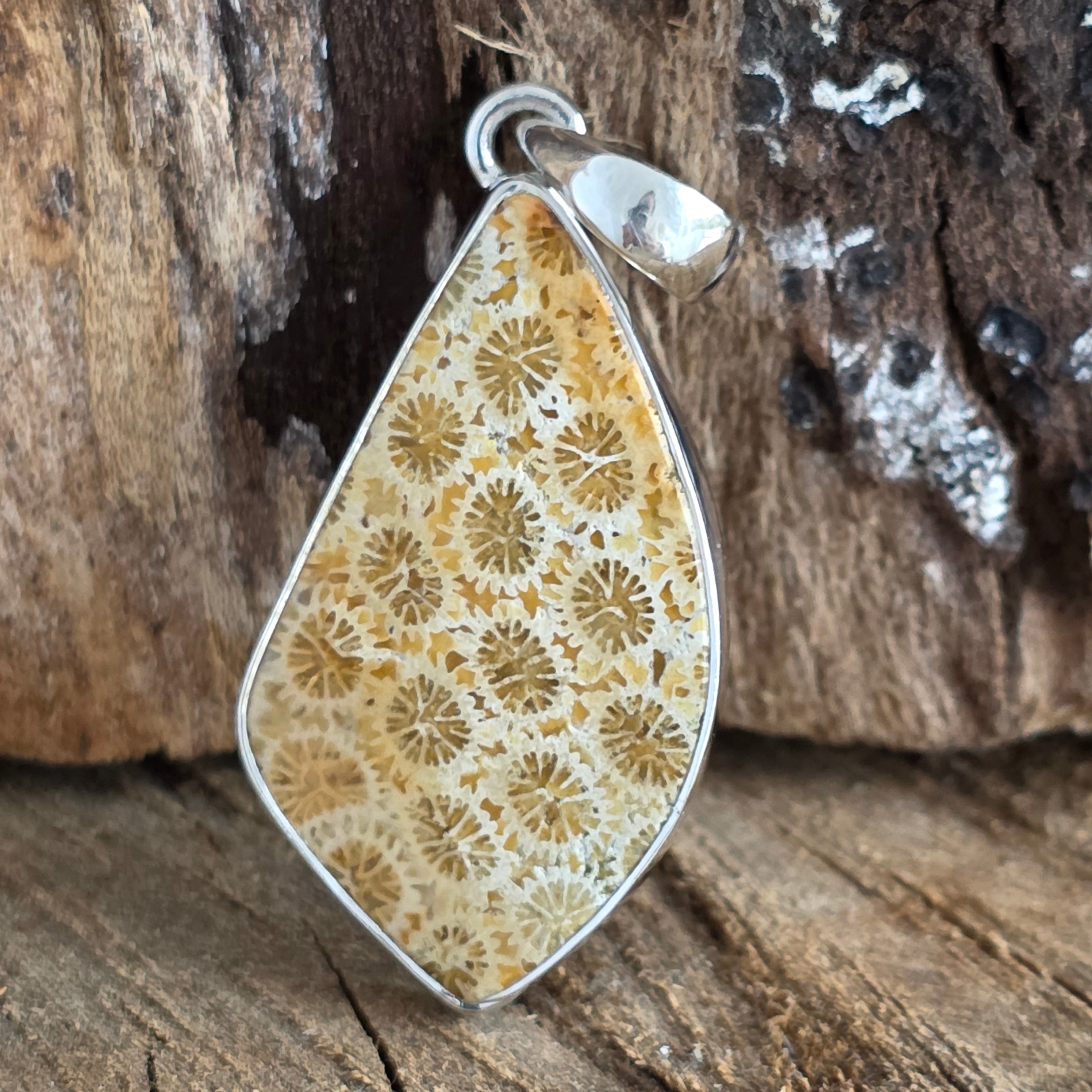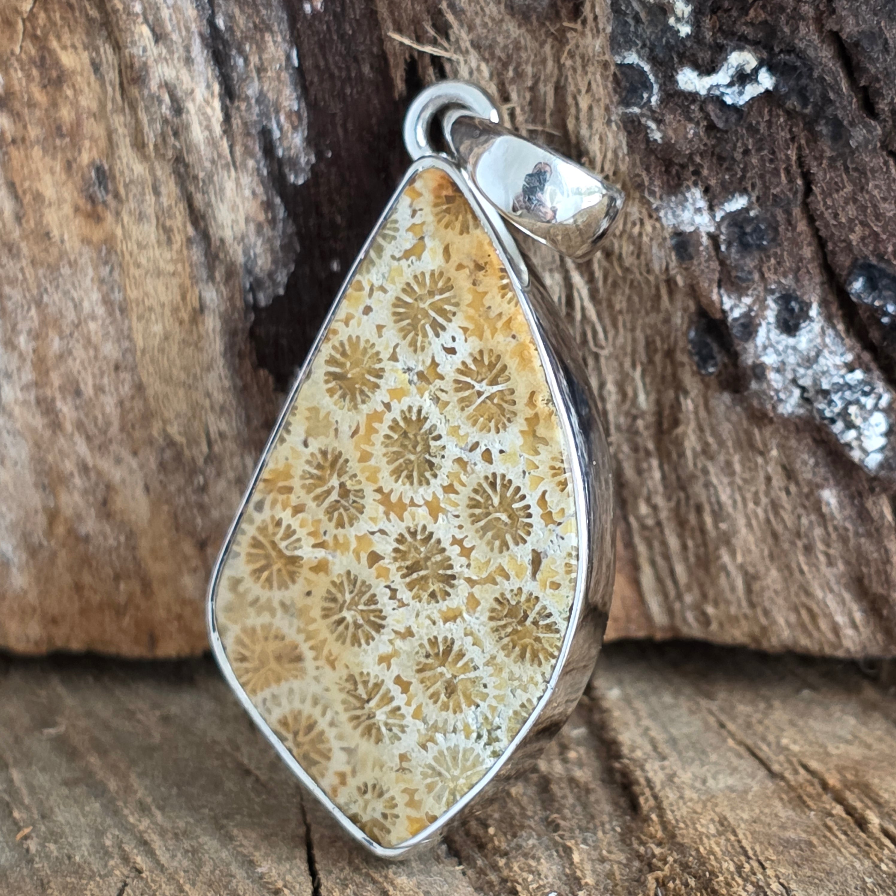 Silver fossilized coral pendant | Model 2