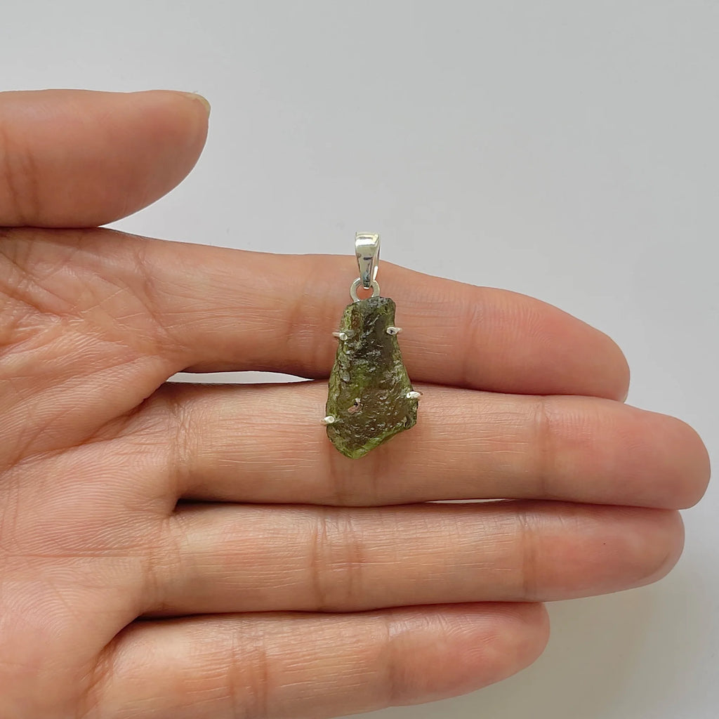 A rare and authentic pendant, made with Moldavit gross, elegantly mounted in 925 silver.