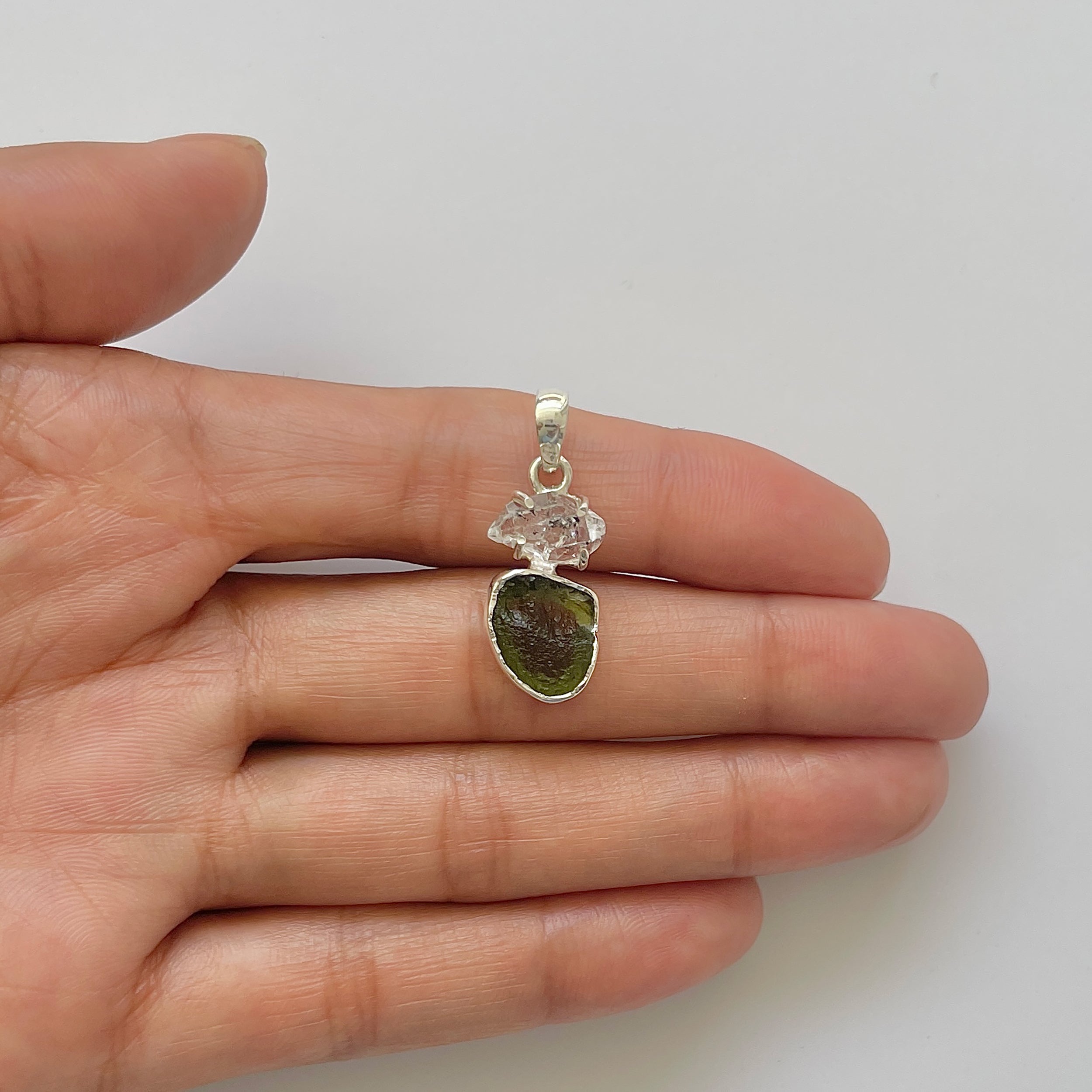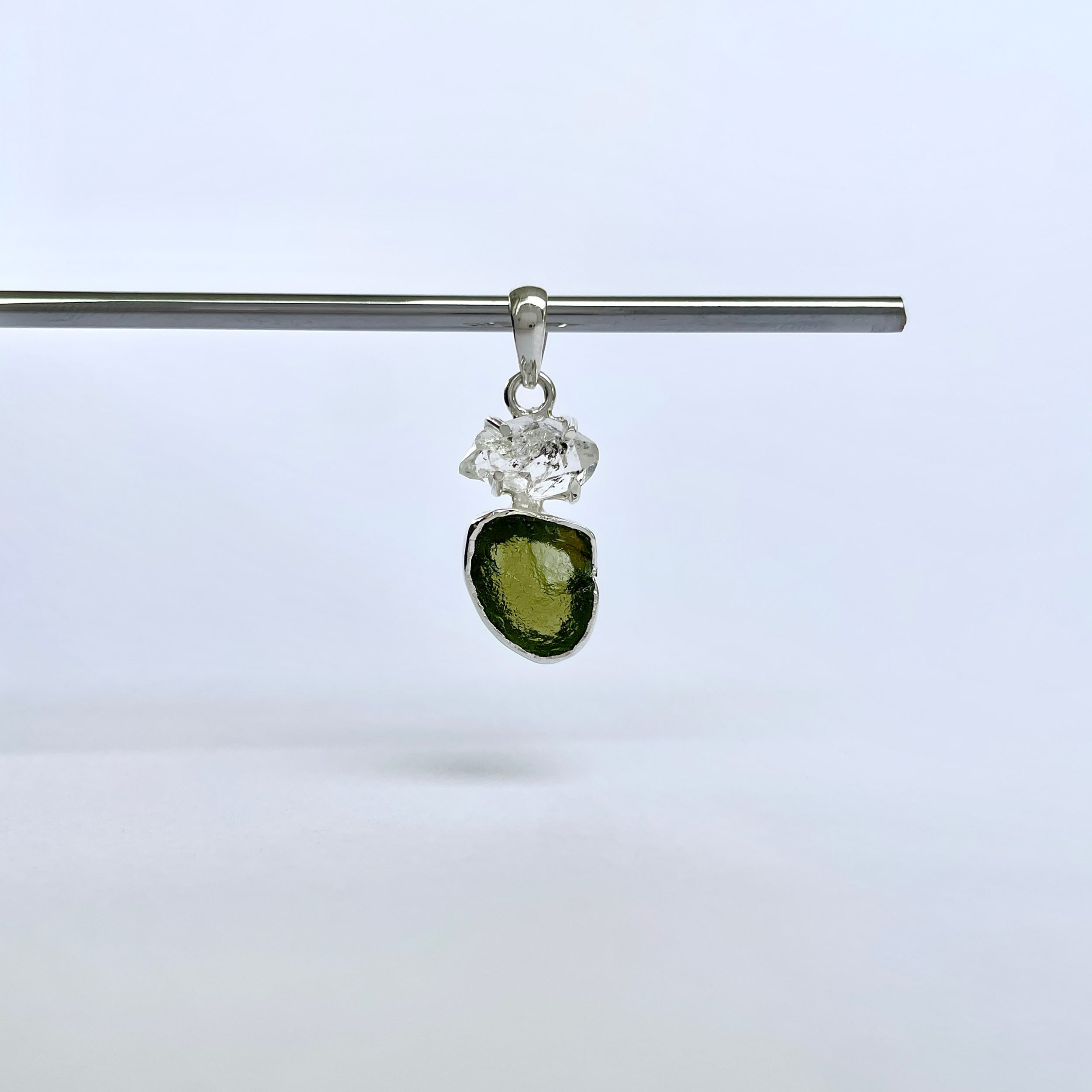A rare and authentic pendant, made with Moldavit gross, elegantly mounted in 925 silver.