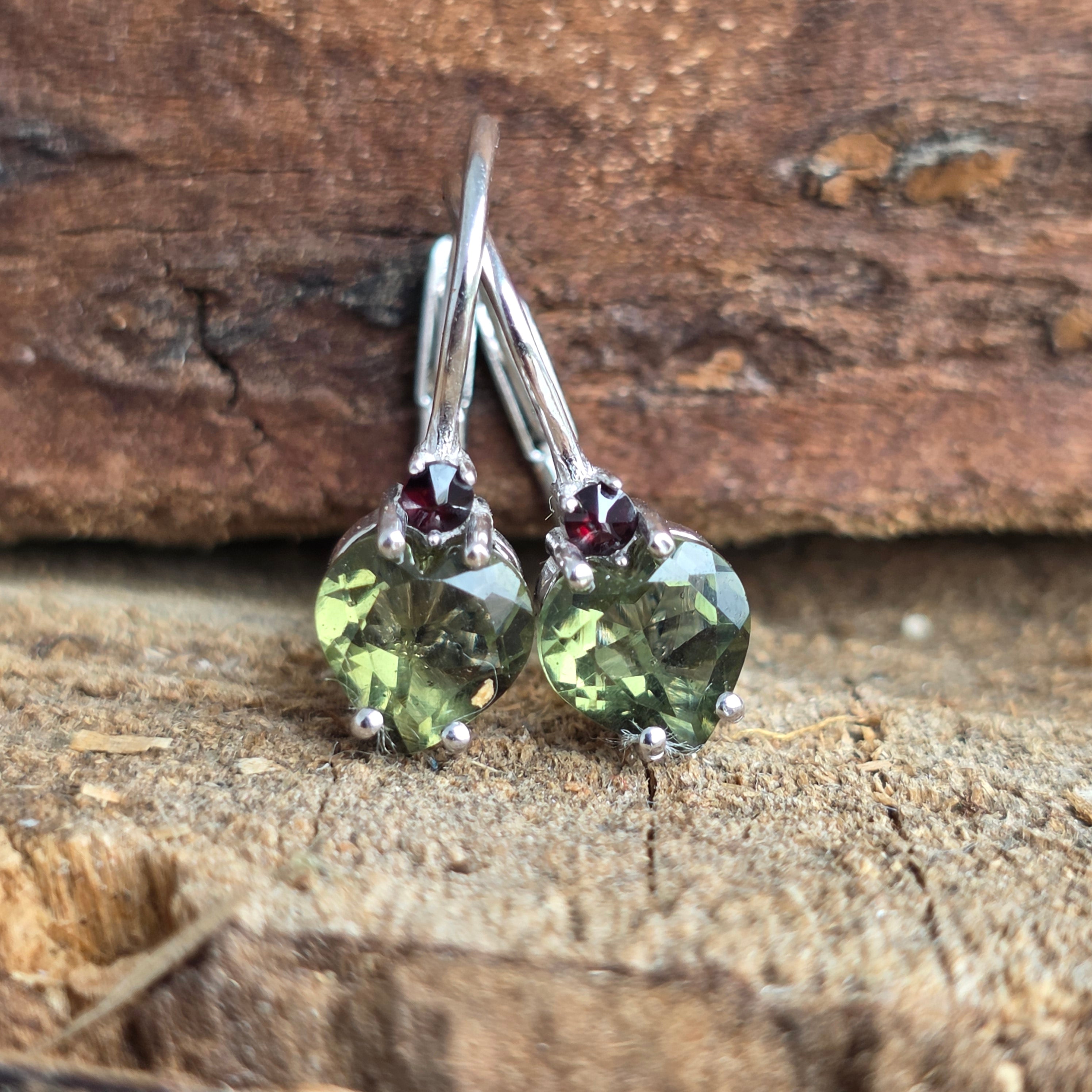 Reviews- Silver moldavite earrings | GARNET