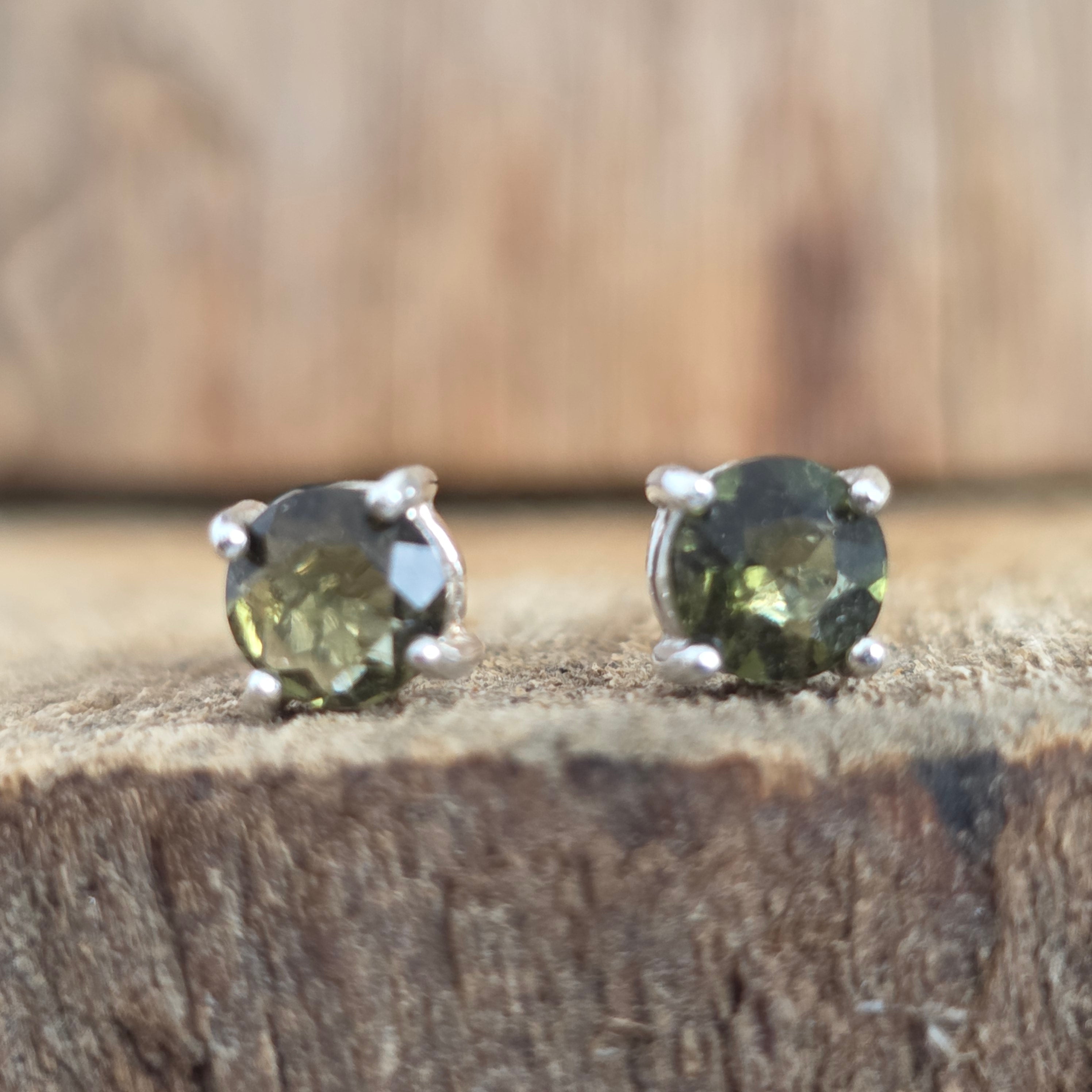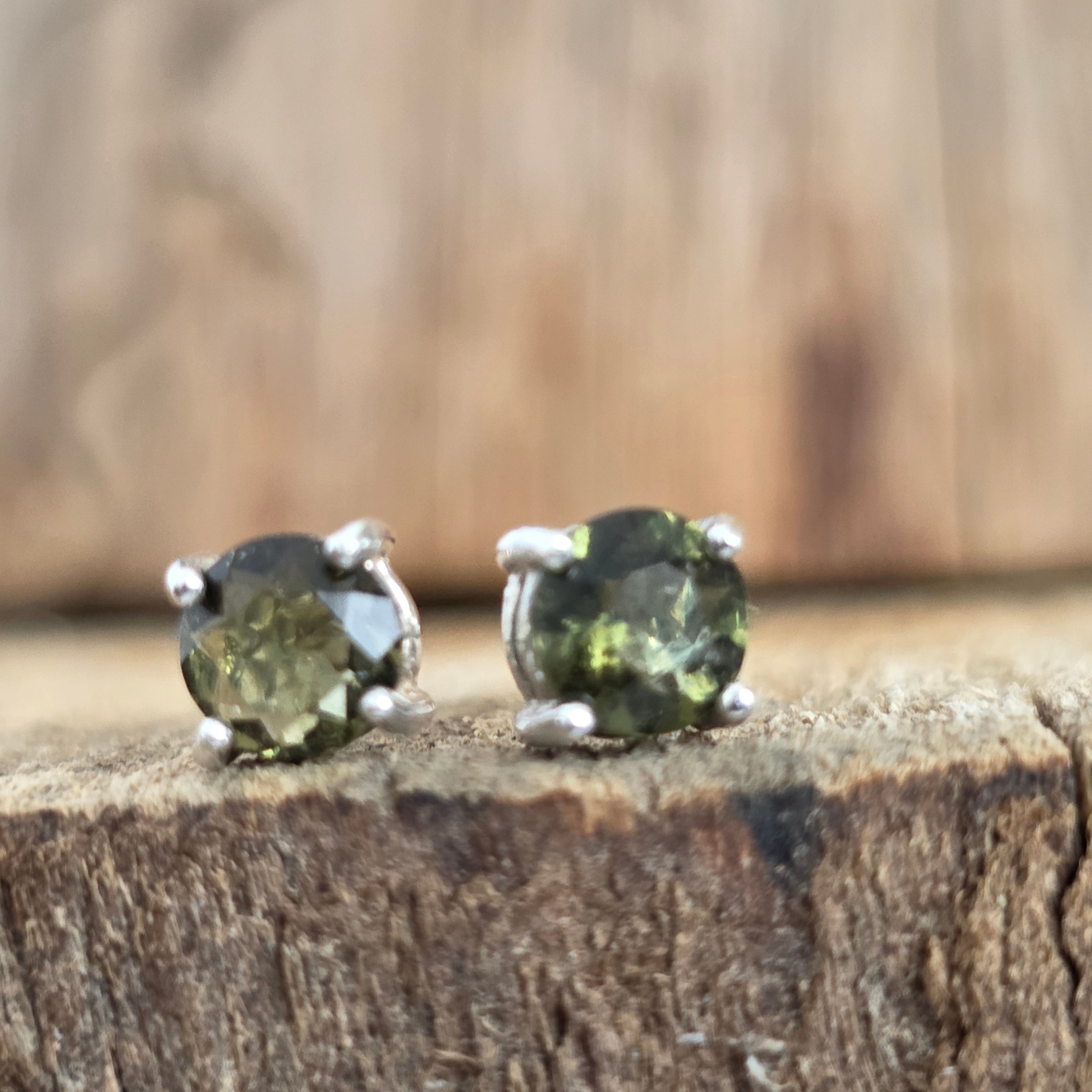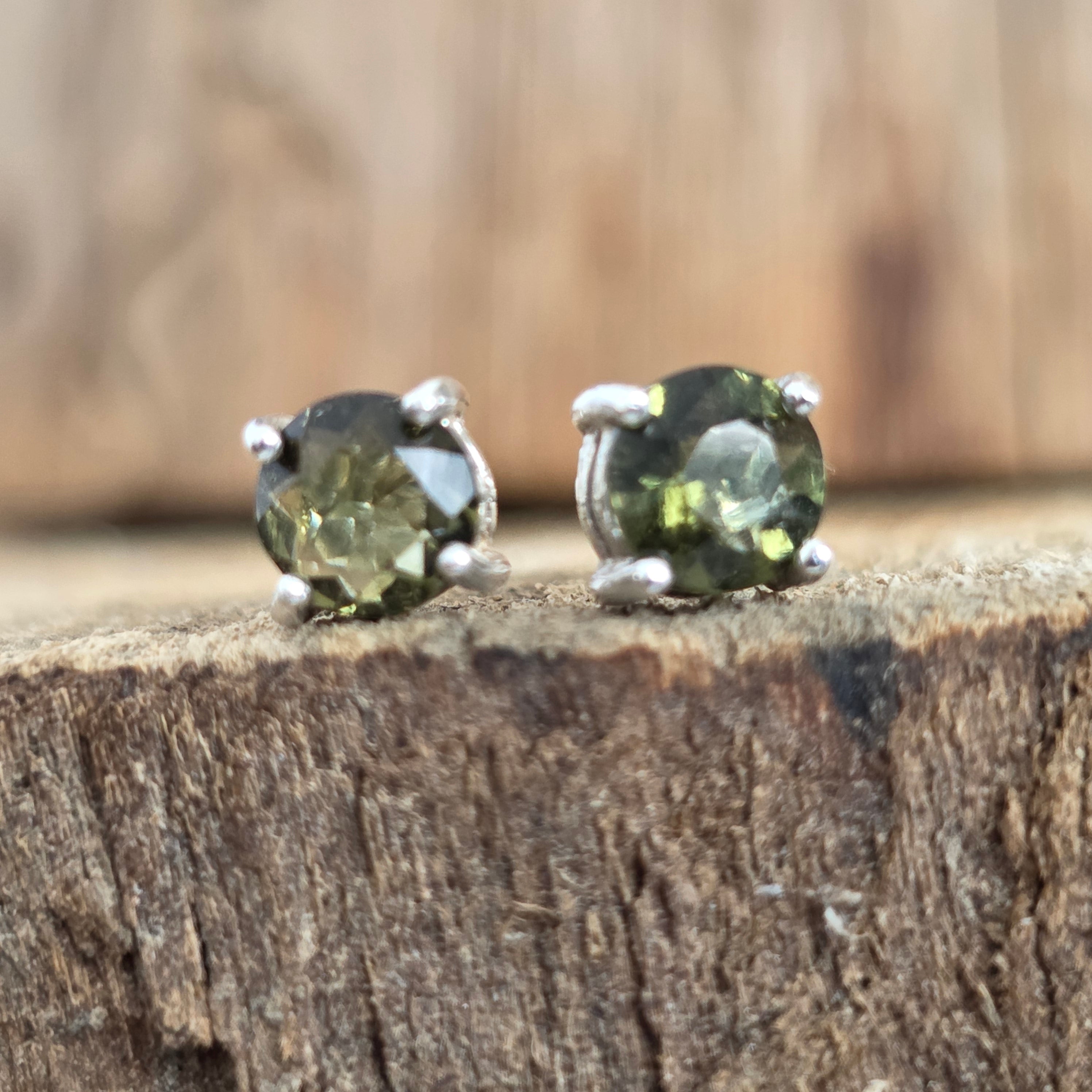 Silver Moldavite Stud Earrings 0.5 mm Round
