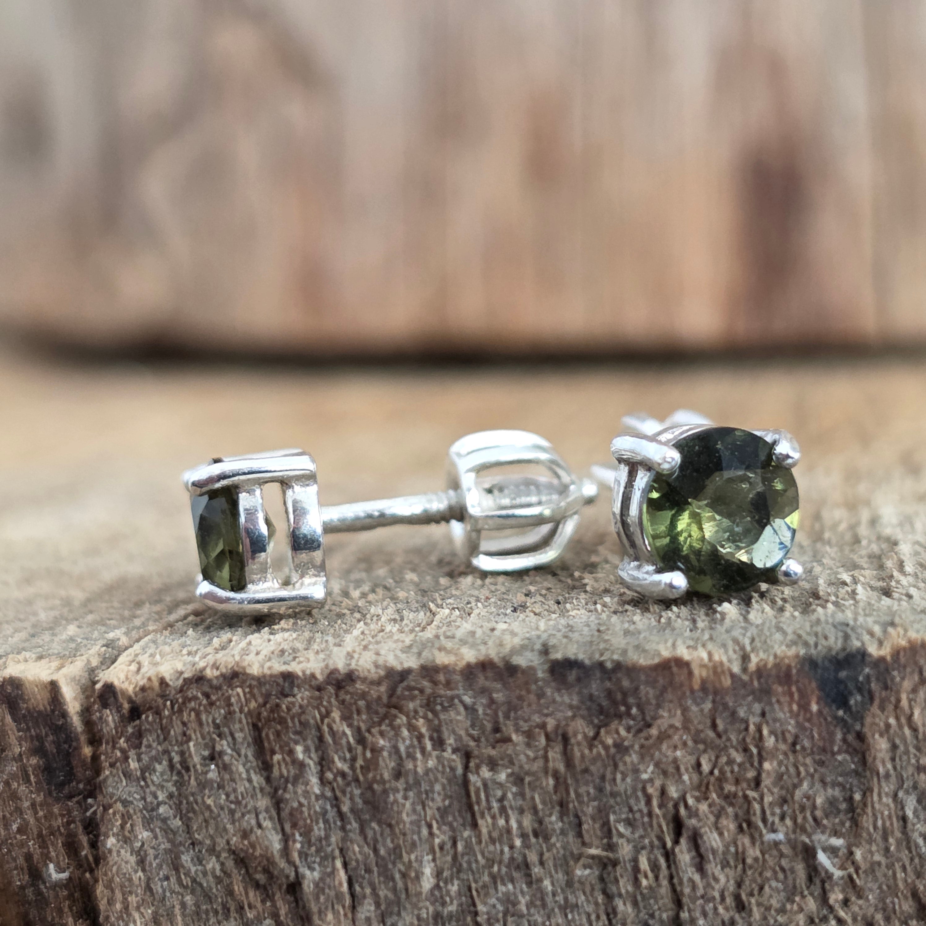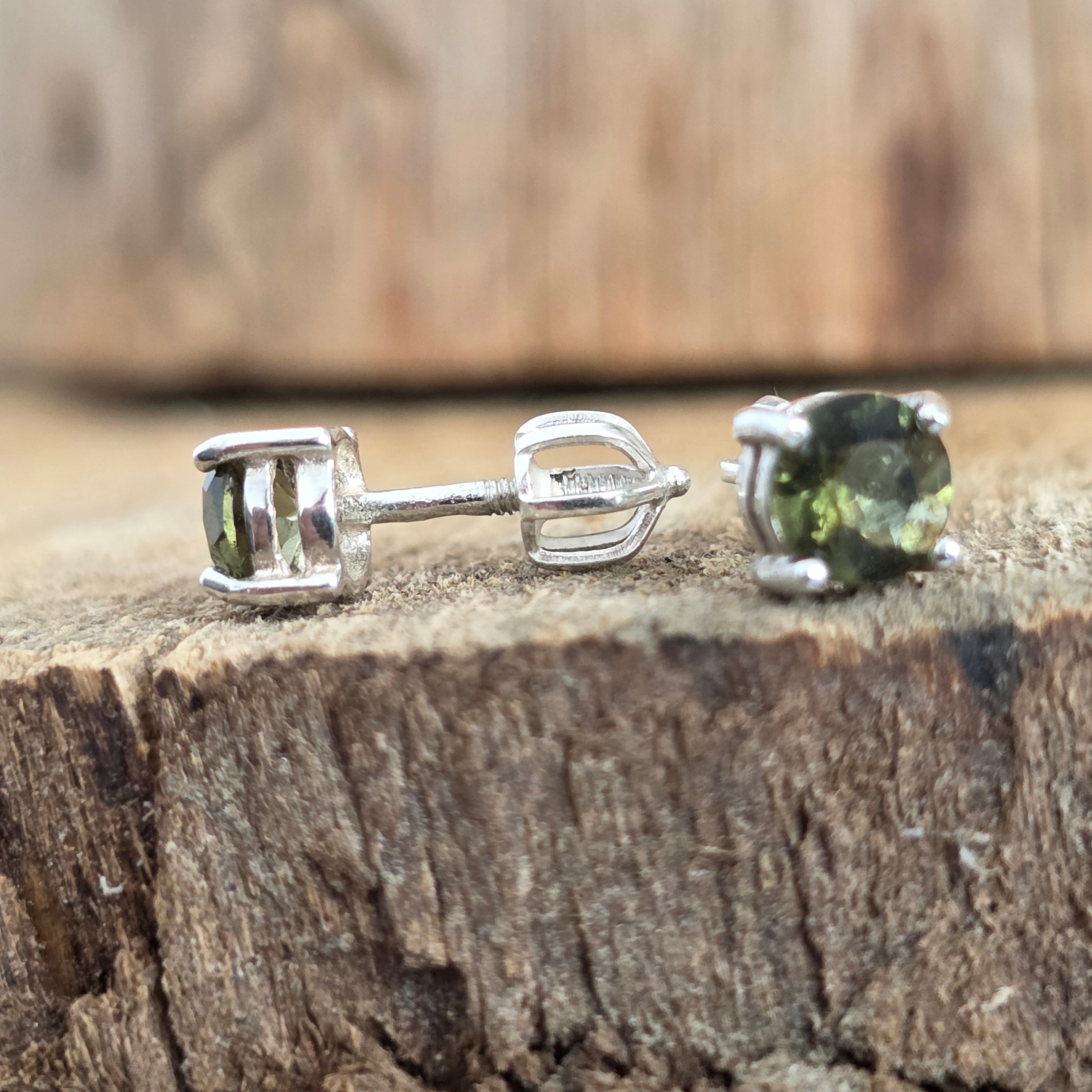 Description - Silver Moldavite Stud Earrings 0.5 mm Round