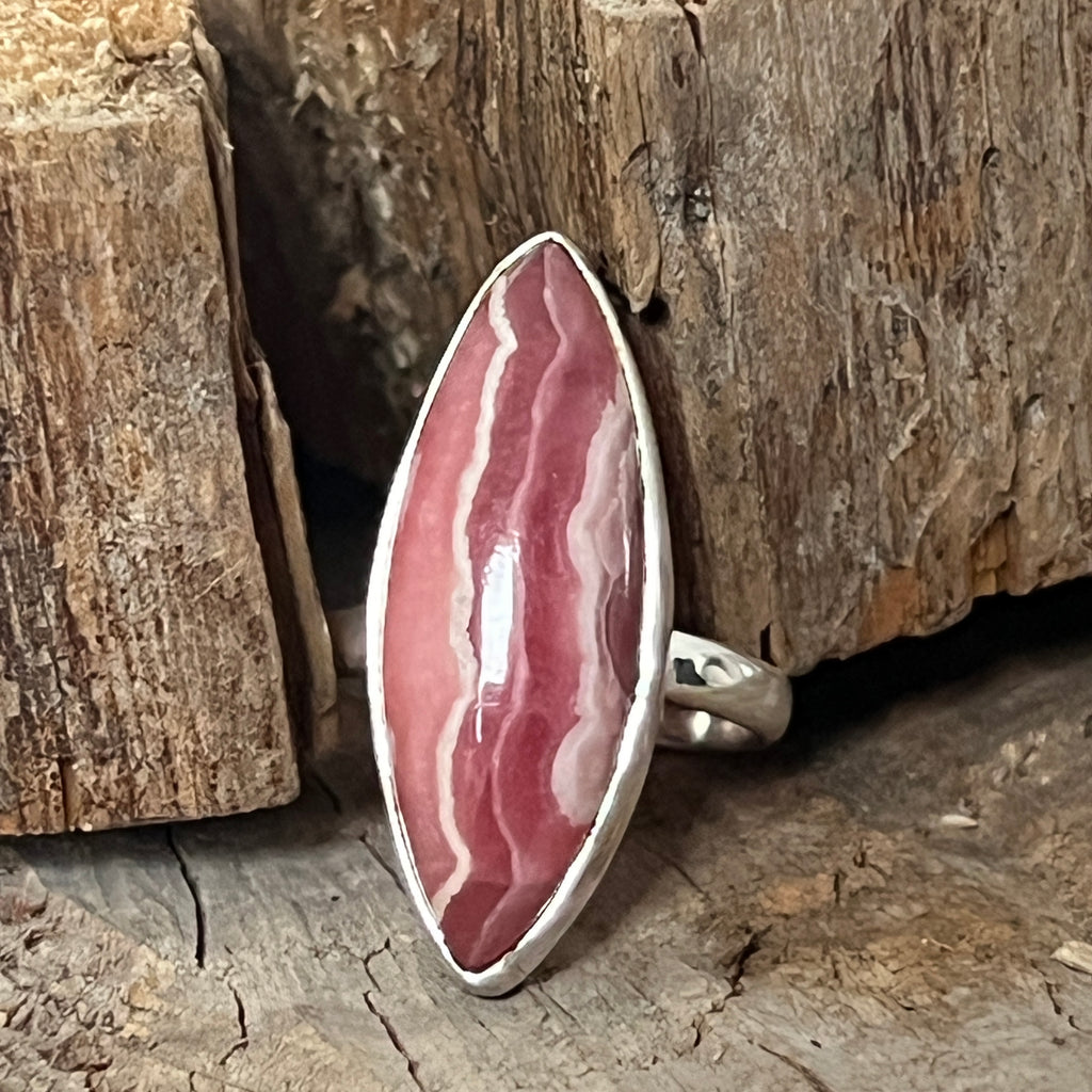 A symbol of deep love and natural beauty, this rhodochrosite ring is the perfect gift for yourself or a loved one.
