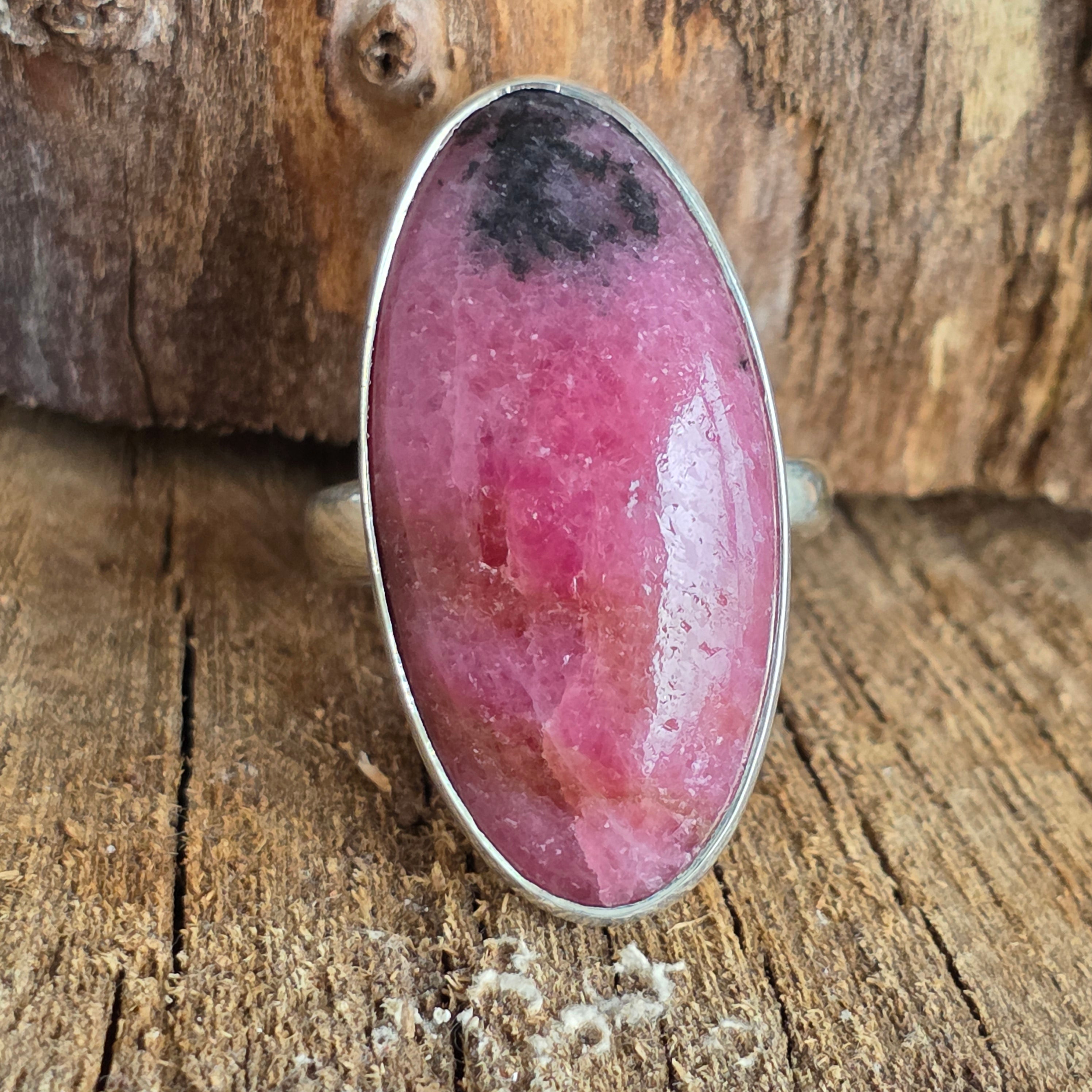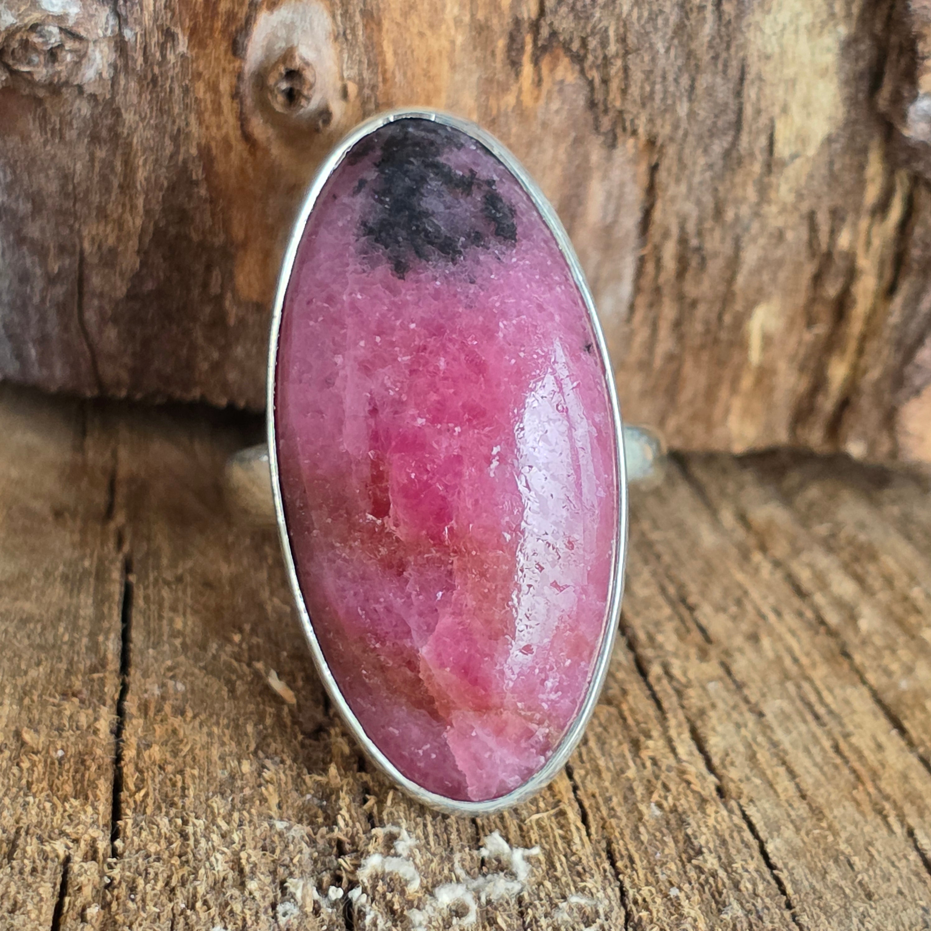 Wear this rhodonite ring to add elegance and harmony to your life - a unique piece of jewelery created for souls who love the natural beauty and healing energy of crystals.