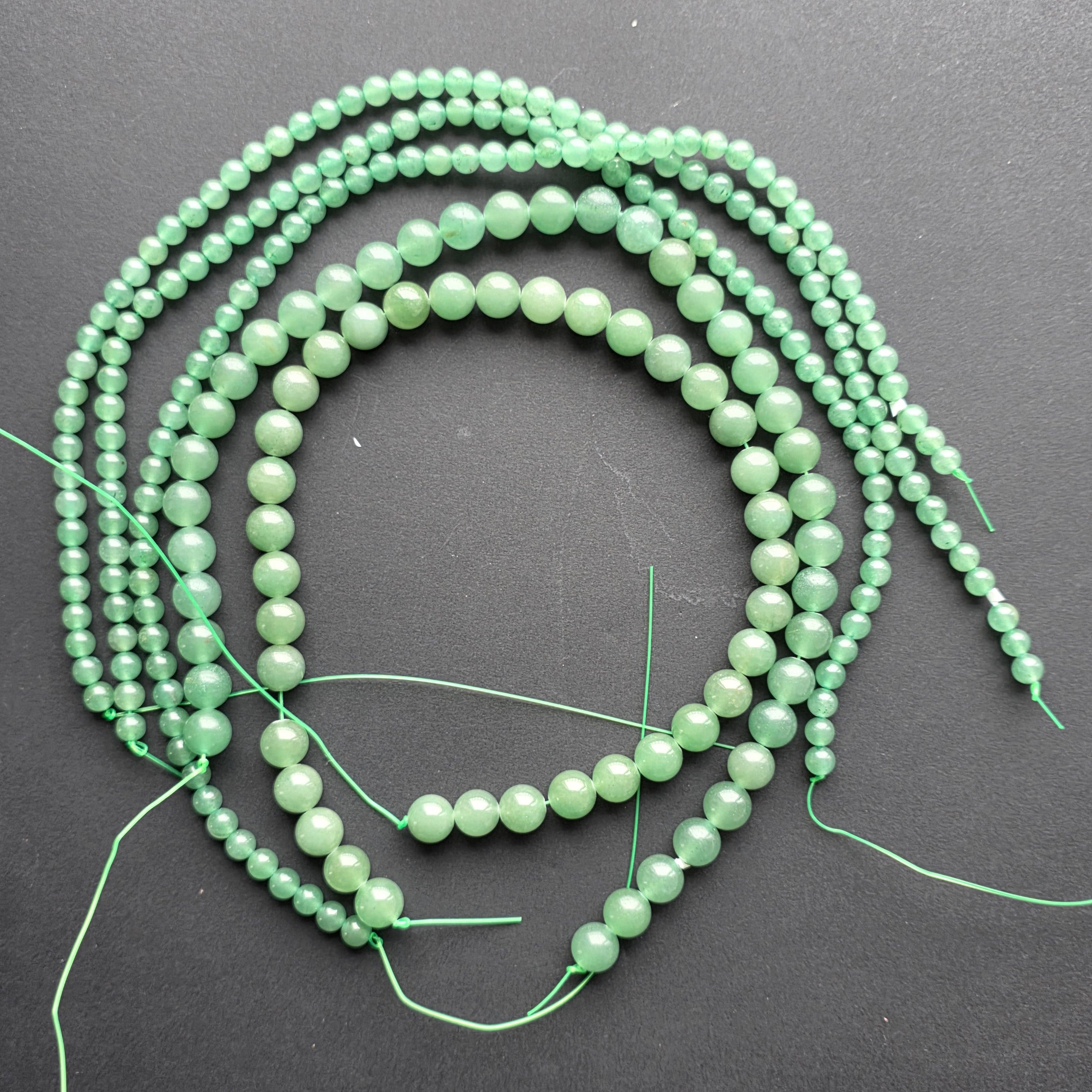 Green adventurine, made up of natural spherical beads, perfect for necklaces, bracelets or other handmade jewelry.