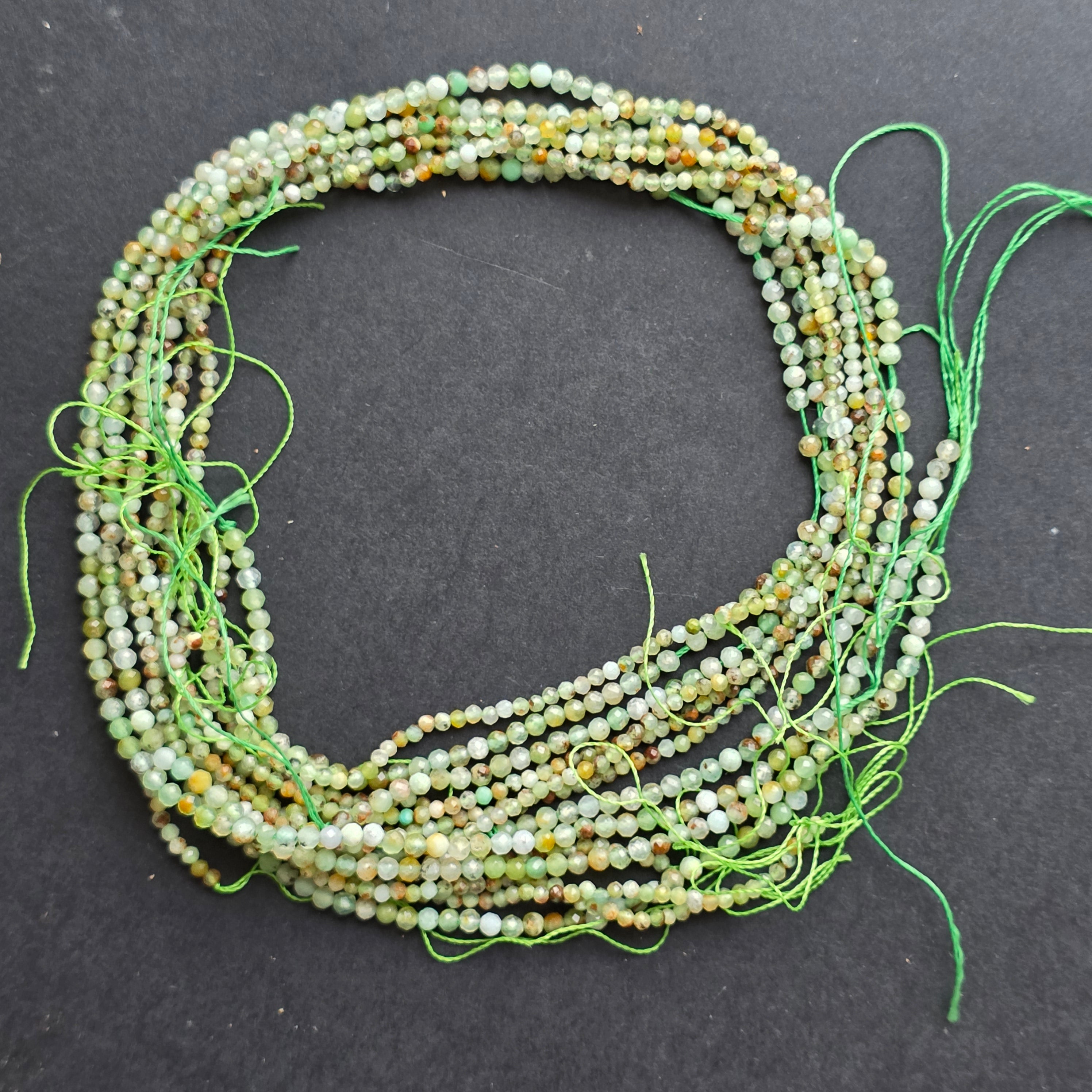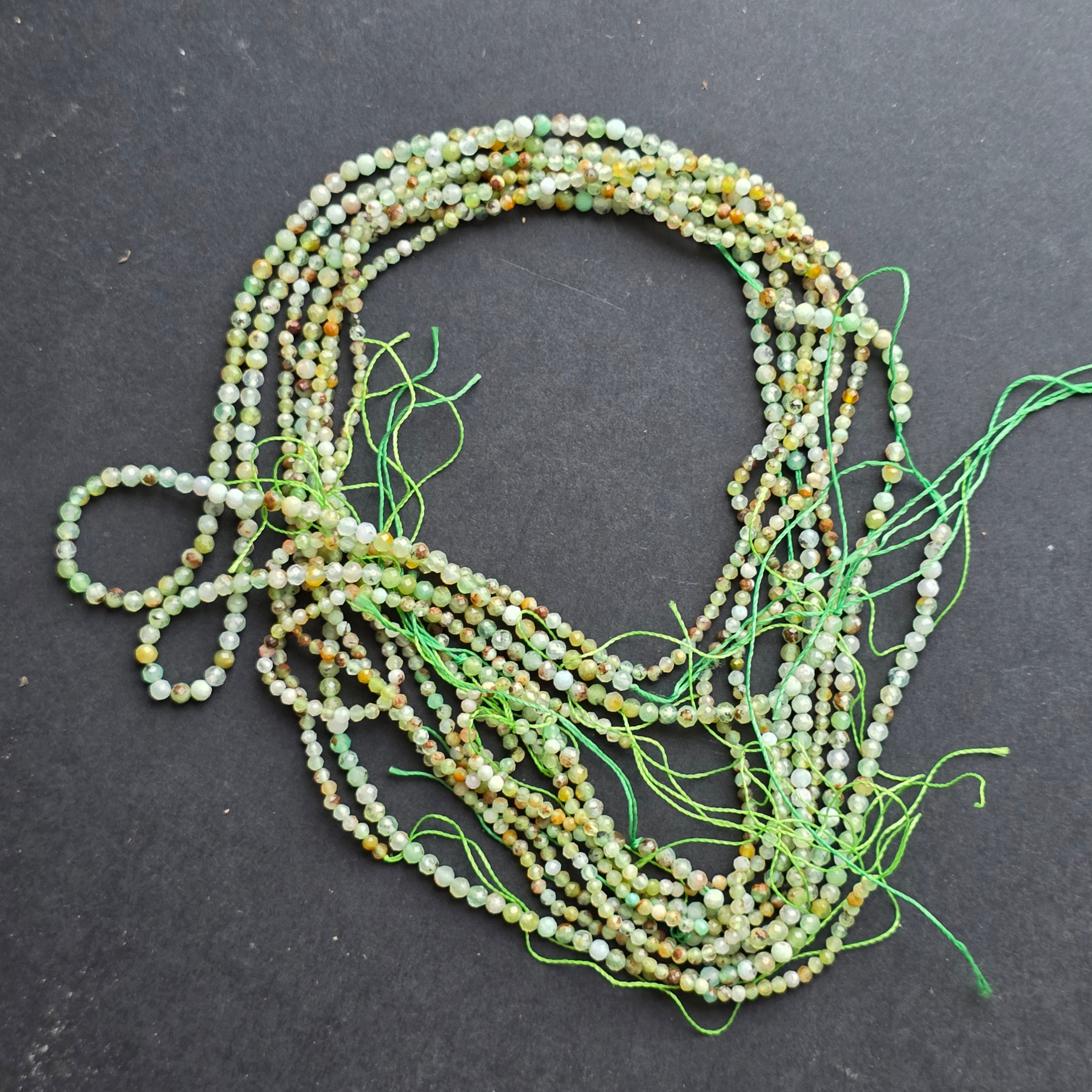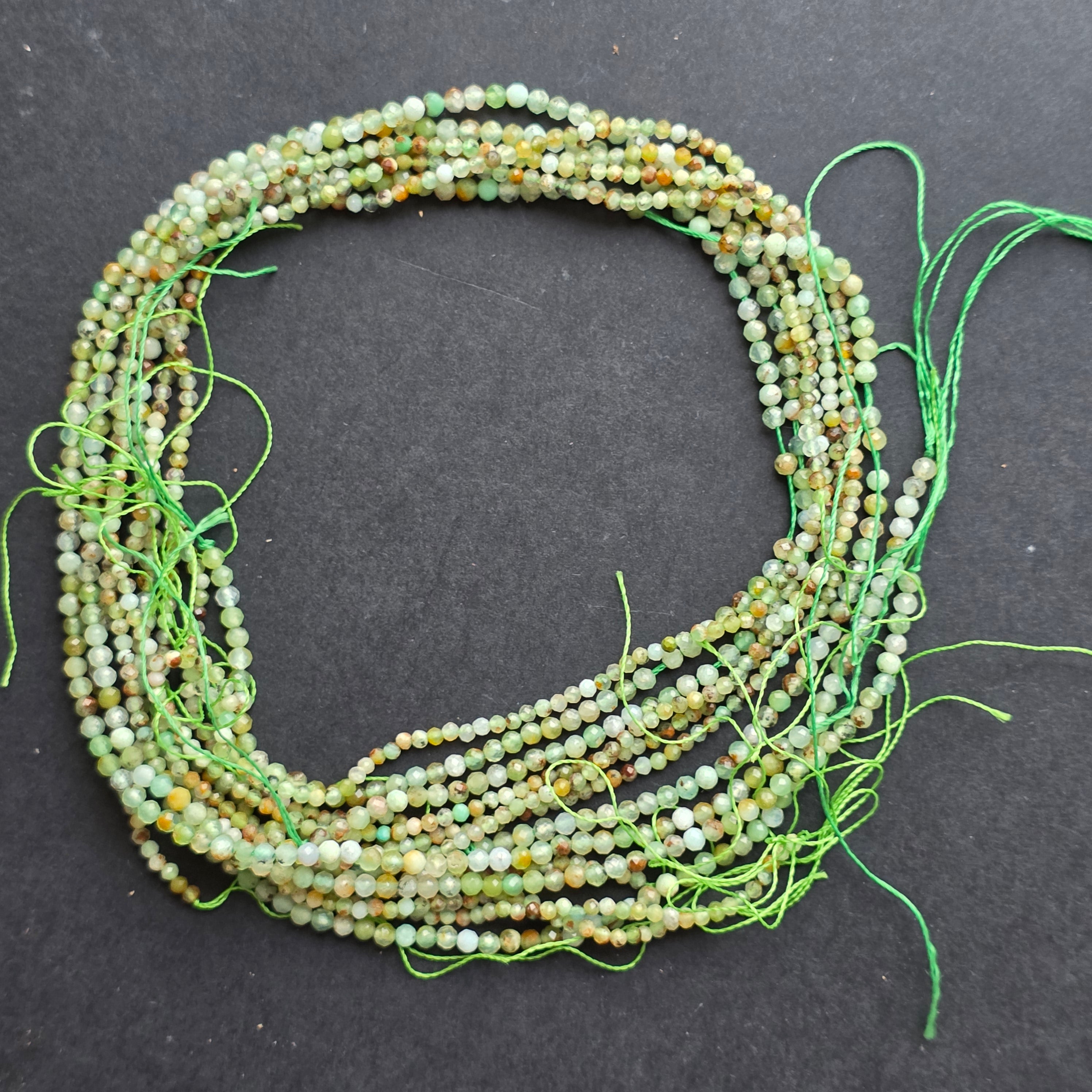 Chrysoprase string, made up of natural faceted spherical beads, perfect for necklaces, bracelets or other handmade jewelry.
