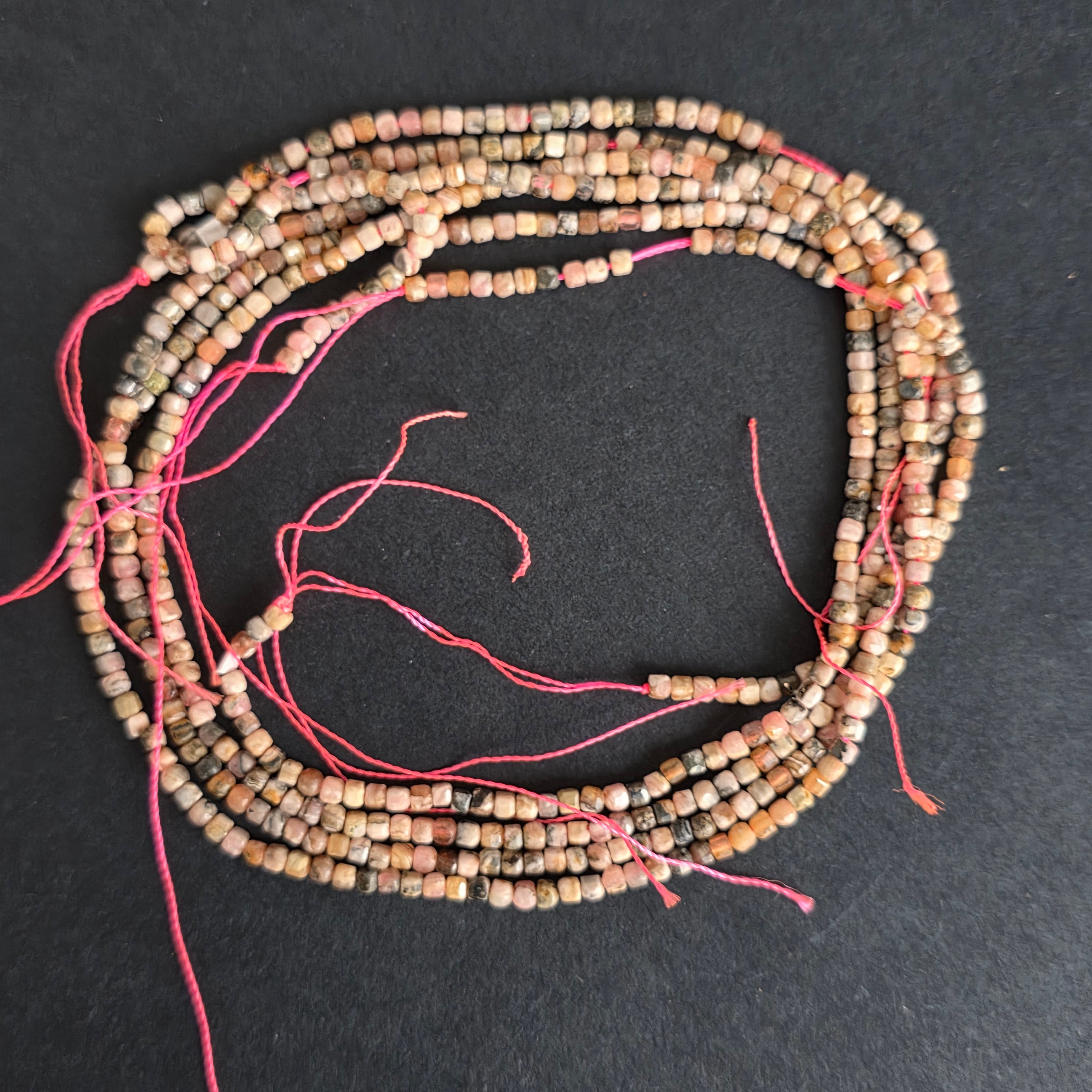Sirag de RODOCROZIT, alcătuit din cuburi fatetate naturale, perfect pentru coliere, brățări sau alte bijuterii handmade.