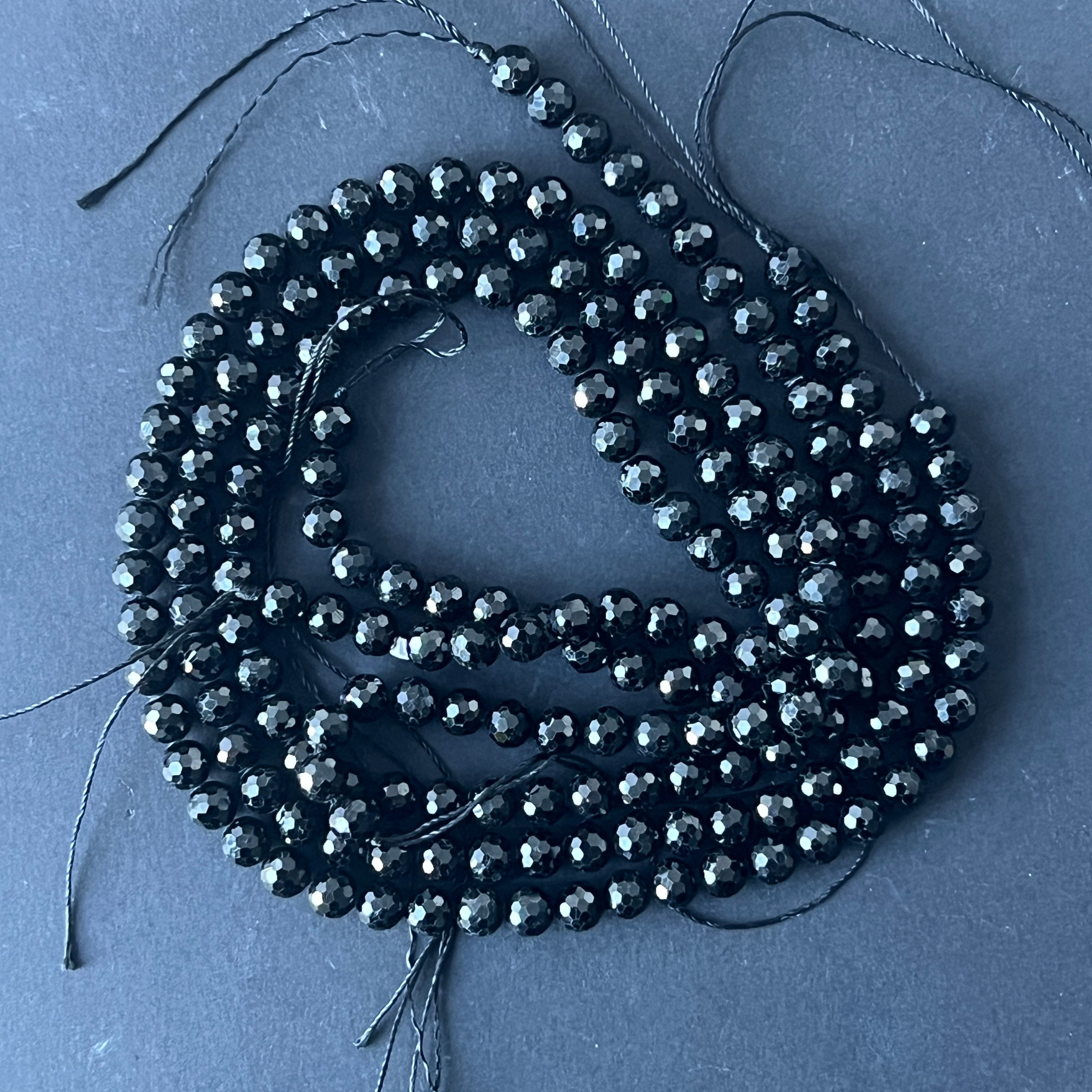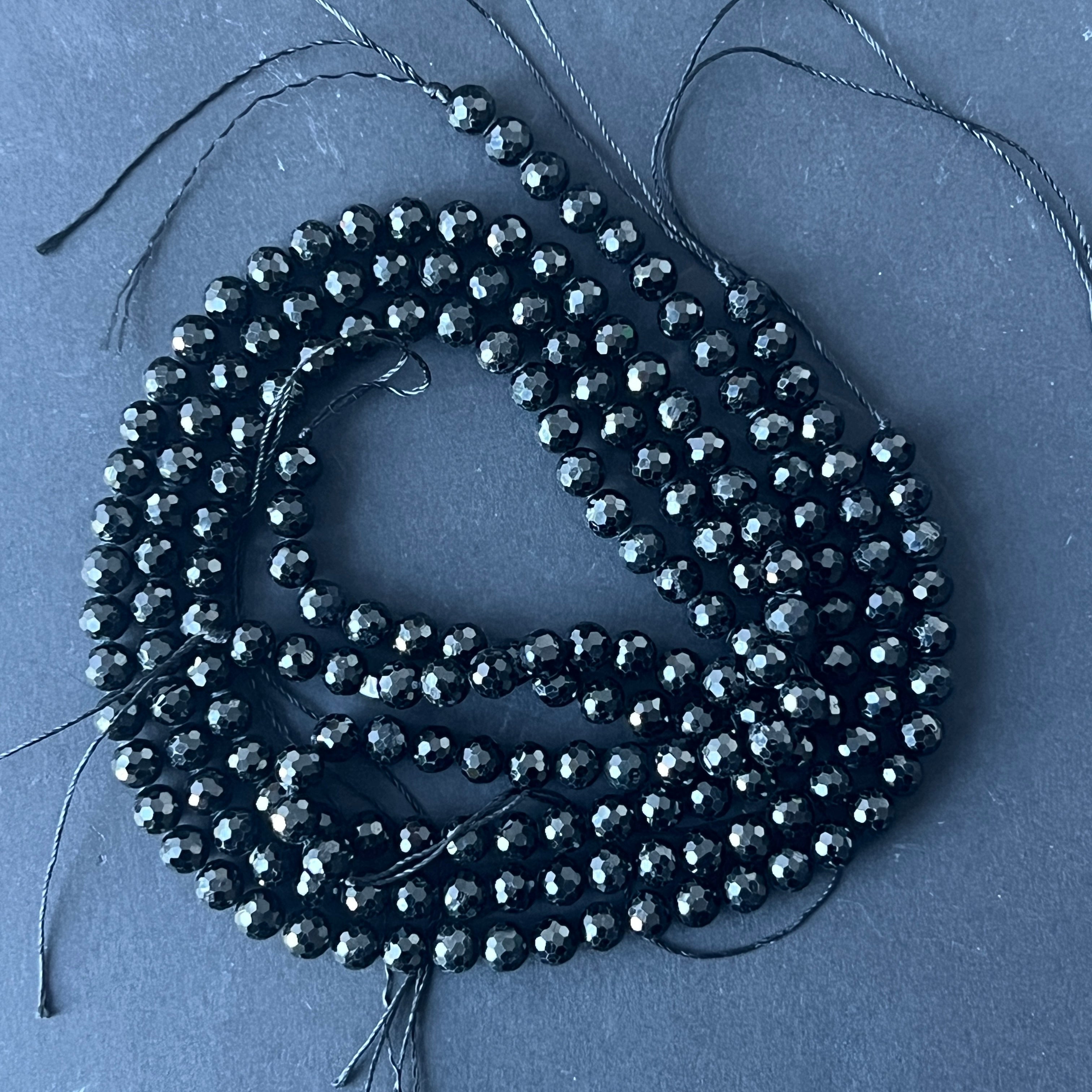 Description - Sirag margele pietre semipretioase sfere fatetate turmalina neagra