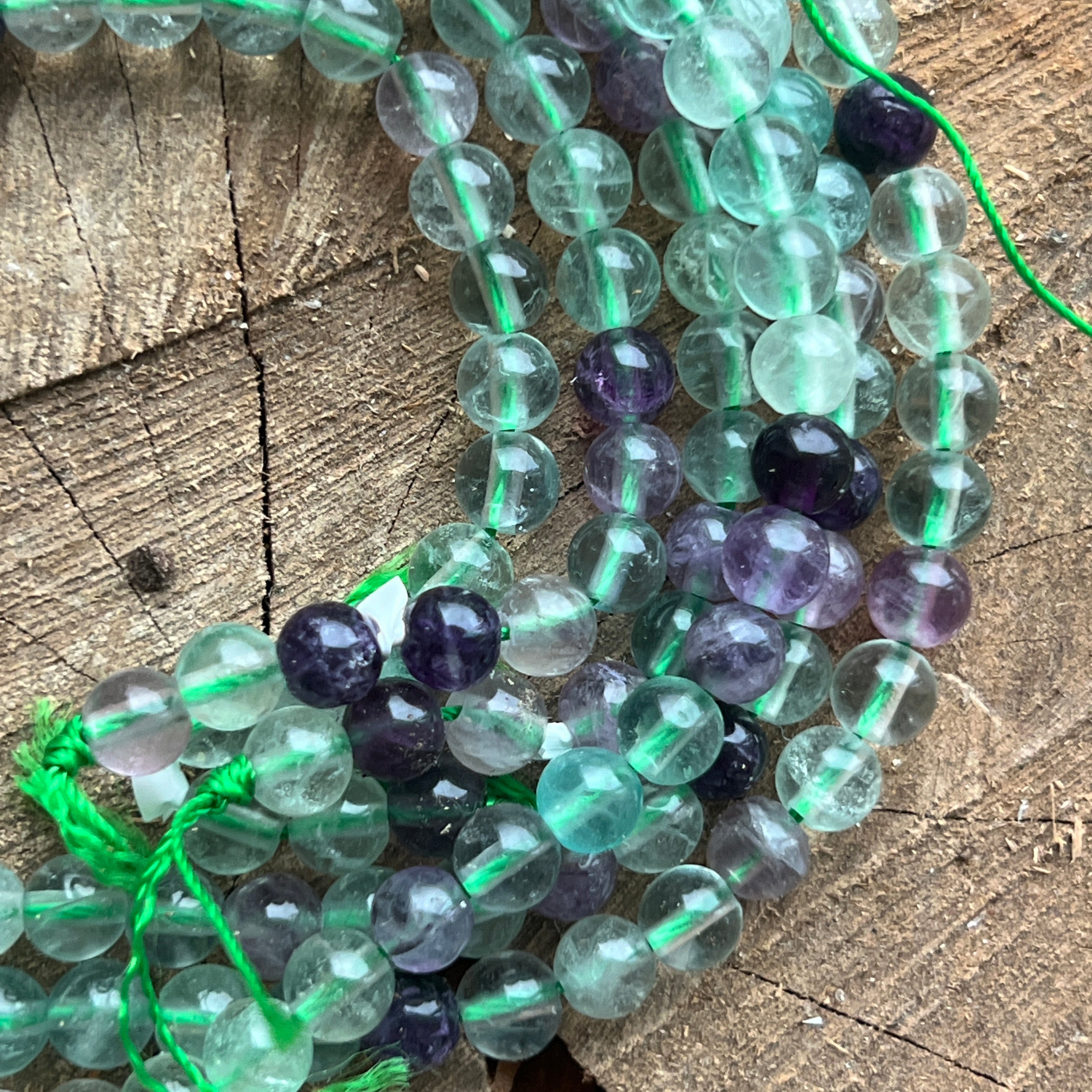 Șirag de FLUORIT, alcătuit din mărgele sferice naturale, perfect pentru coliere, brățări sau alte bijuterii handmade.
