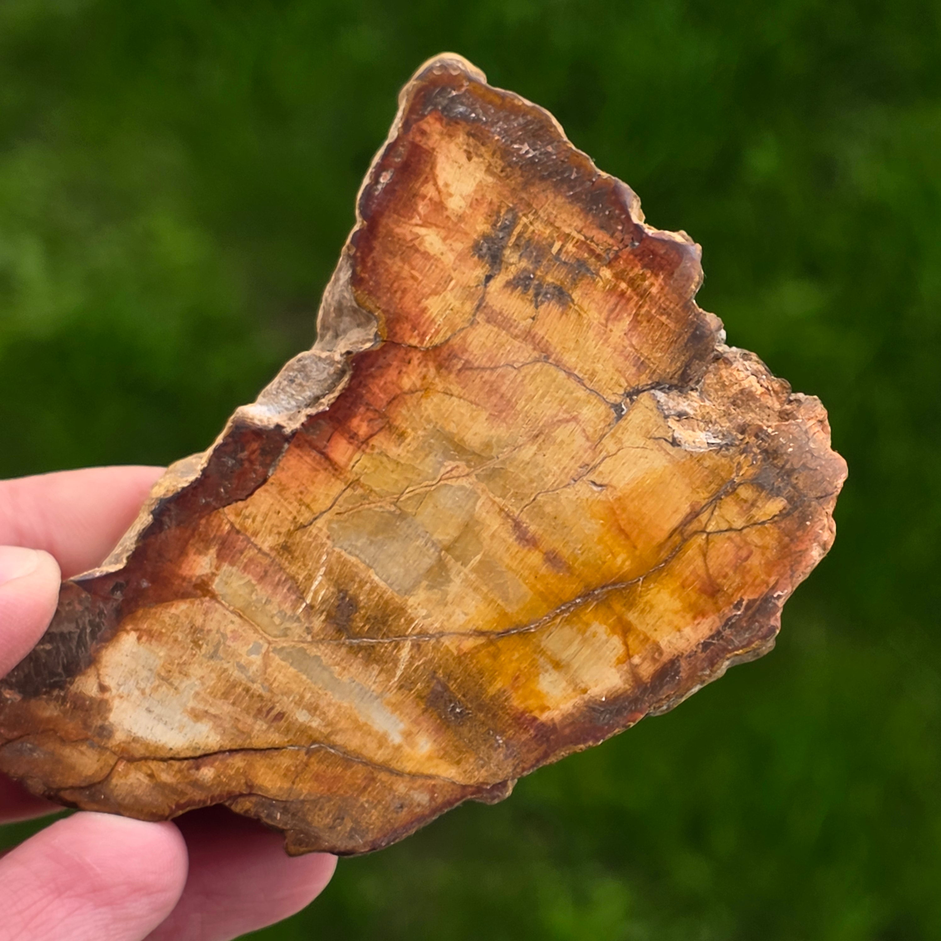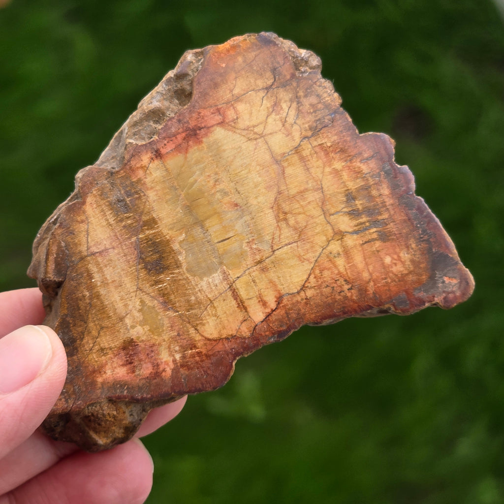 Over time, the colors of petrified wood develop due to mineral impurities: iron adds reddish or orange, manganese brings black and purple tones, and copper can introduce green or blue accents. Although it seems wood at first sight this stone is completely mineralized, having a Mohs hardness of about 6.5 - 7, similar to that of the quartz.