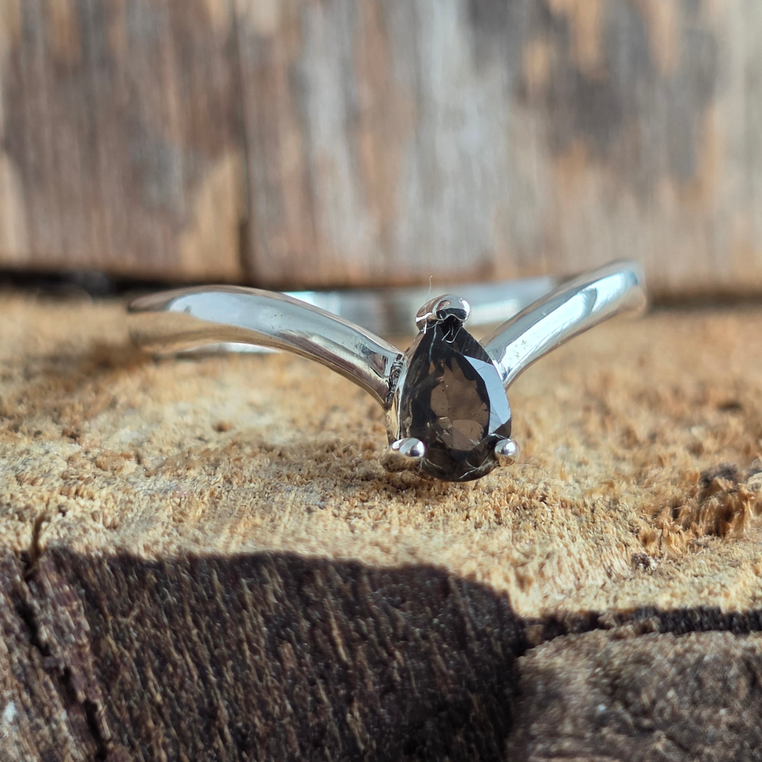 Delicate and sophisticated, this one 925 silver ring reveals the mysterious depth of smoky topaz, a stone of stability, mental clarity and inner balance.