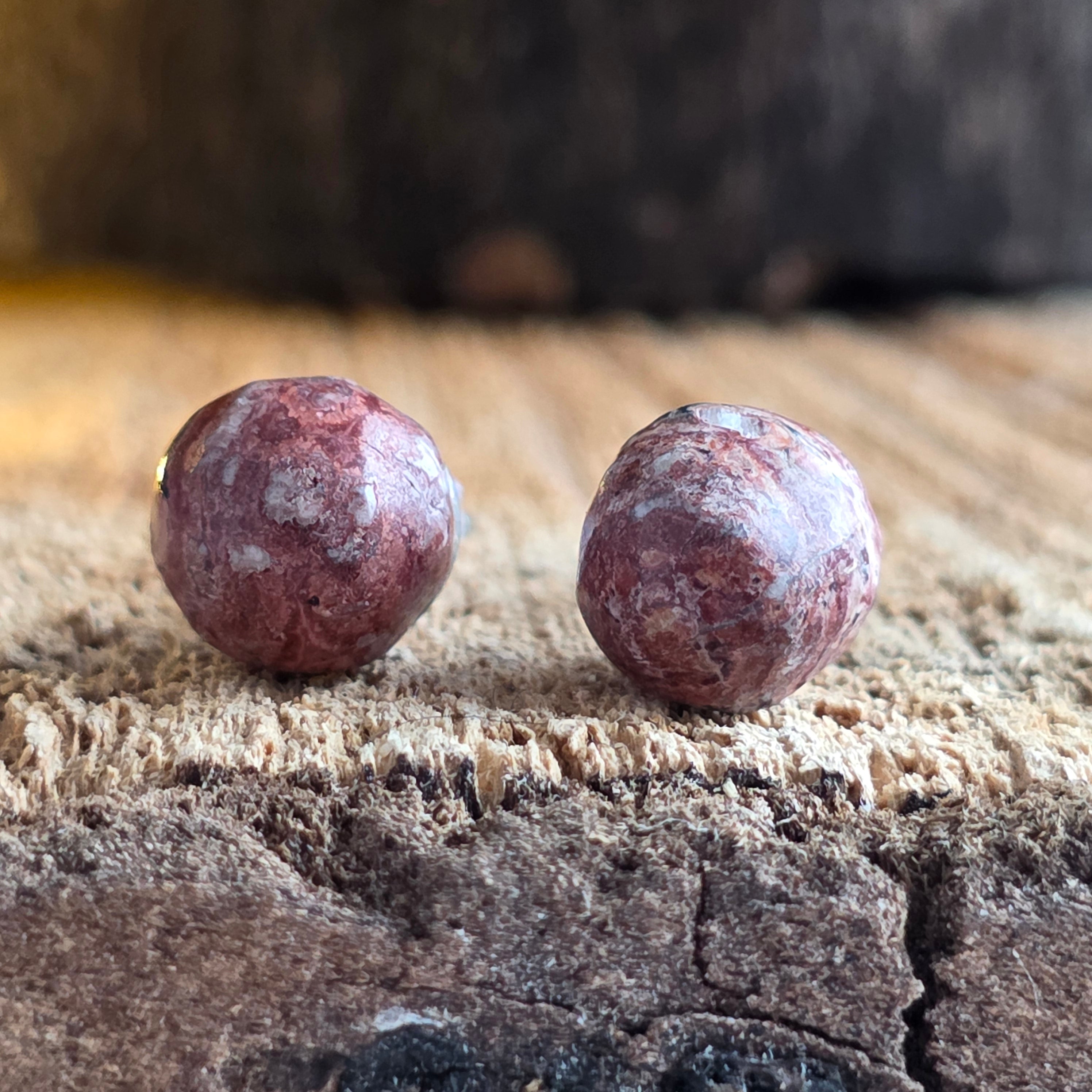 These stud earrings made of natural leopard jasper They are a celebration of the strength and vitality of the Earth. Each stone bears a unique design, like nature's footprints — a mixture of warm hues and dark spots that evoke the grace and power of the leopard.