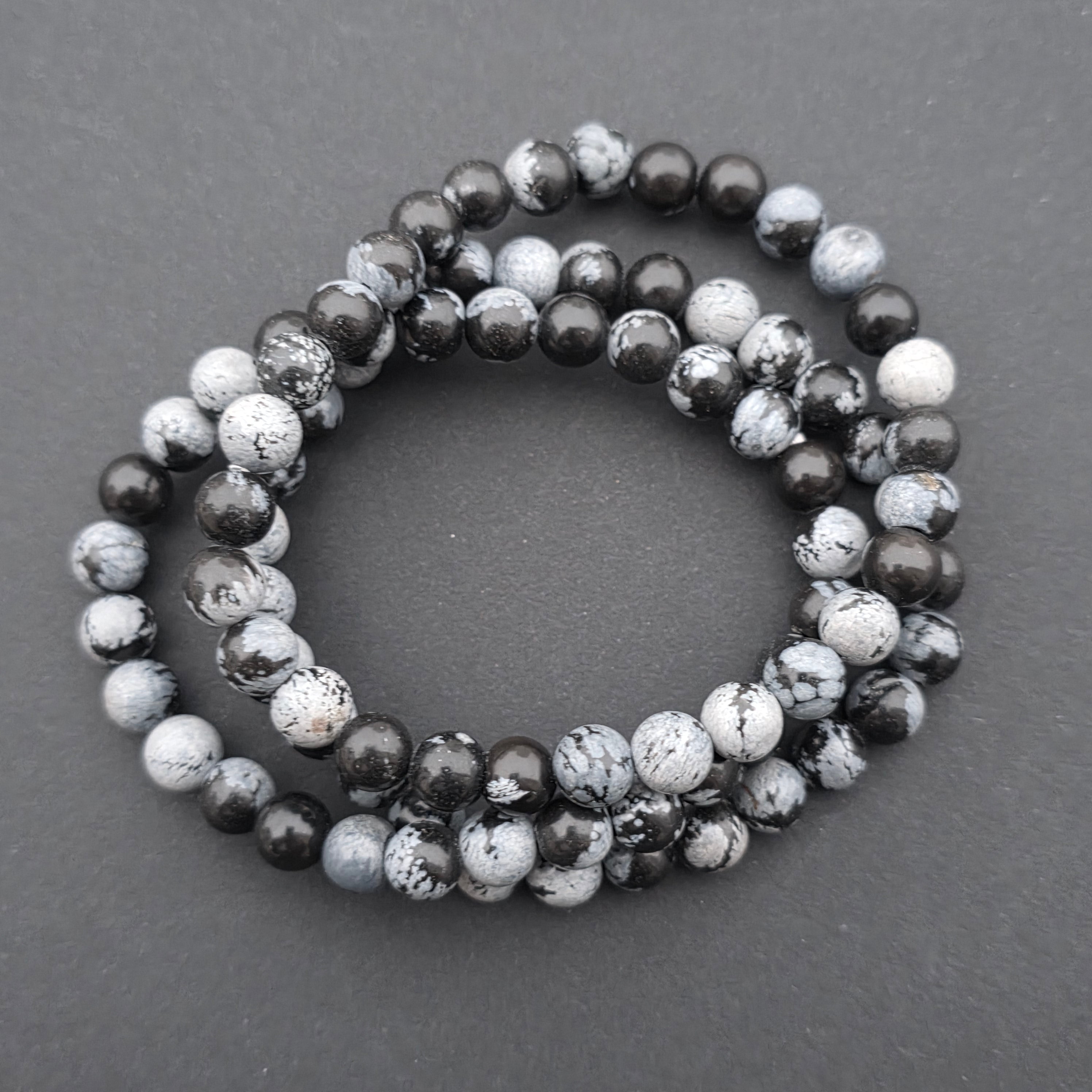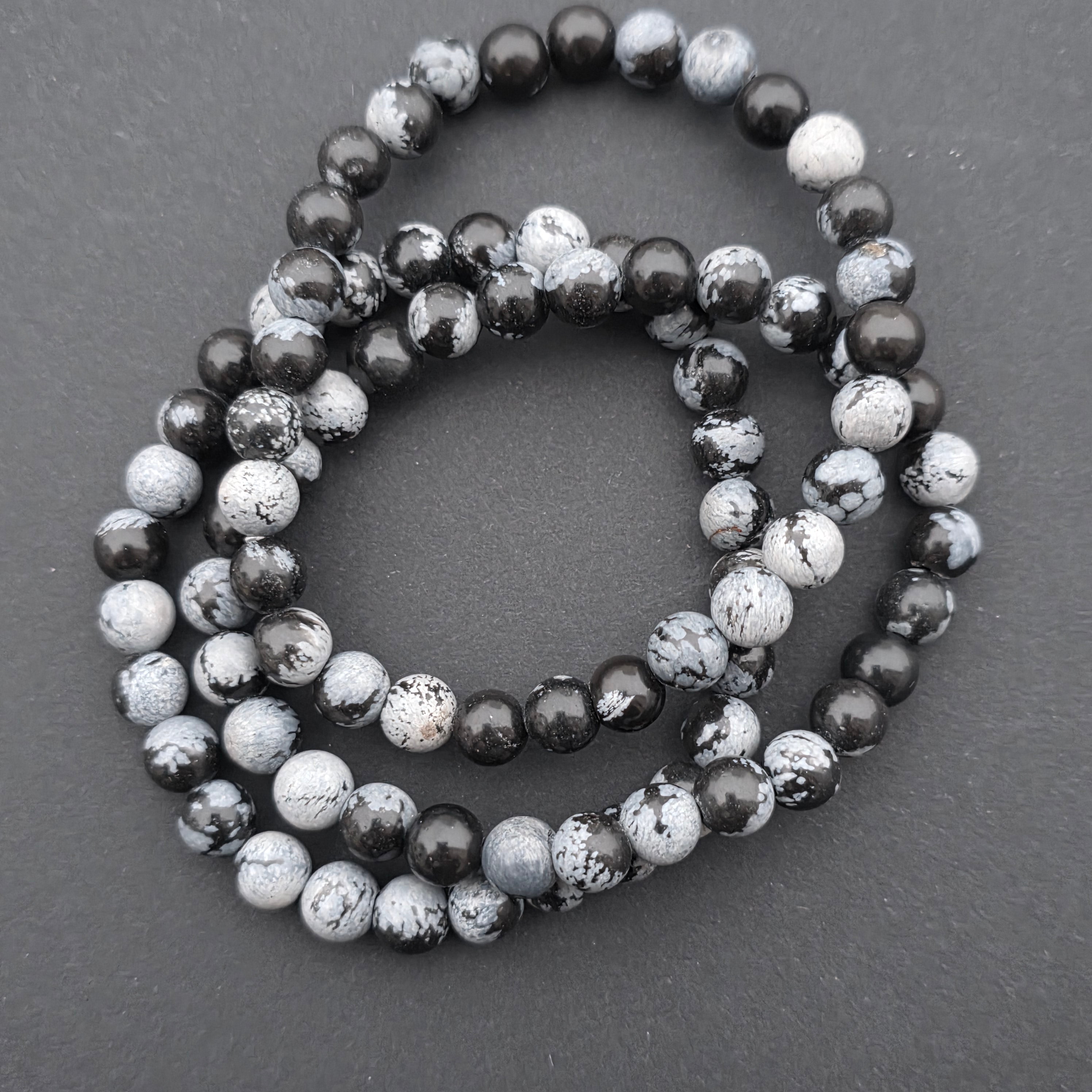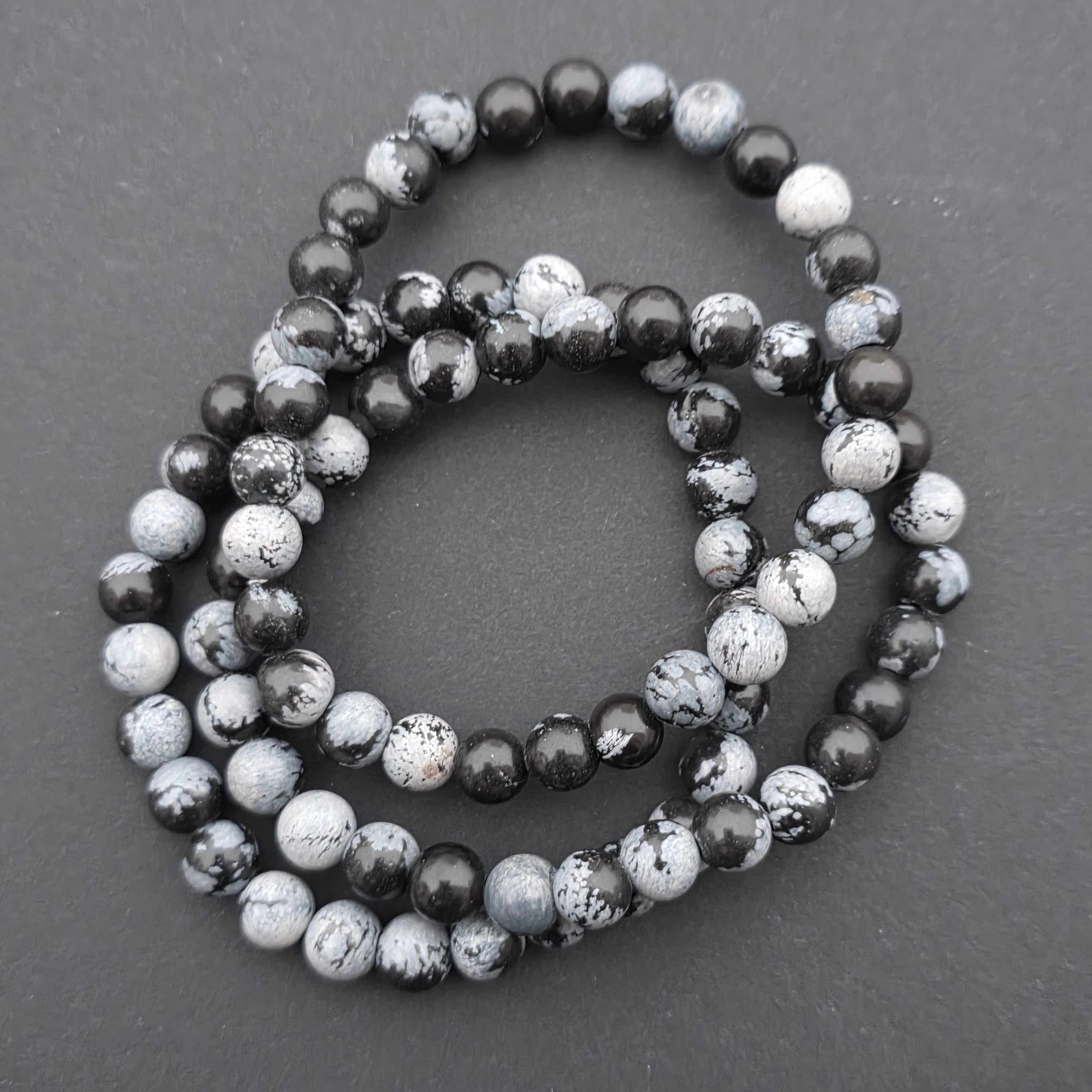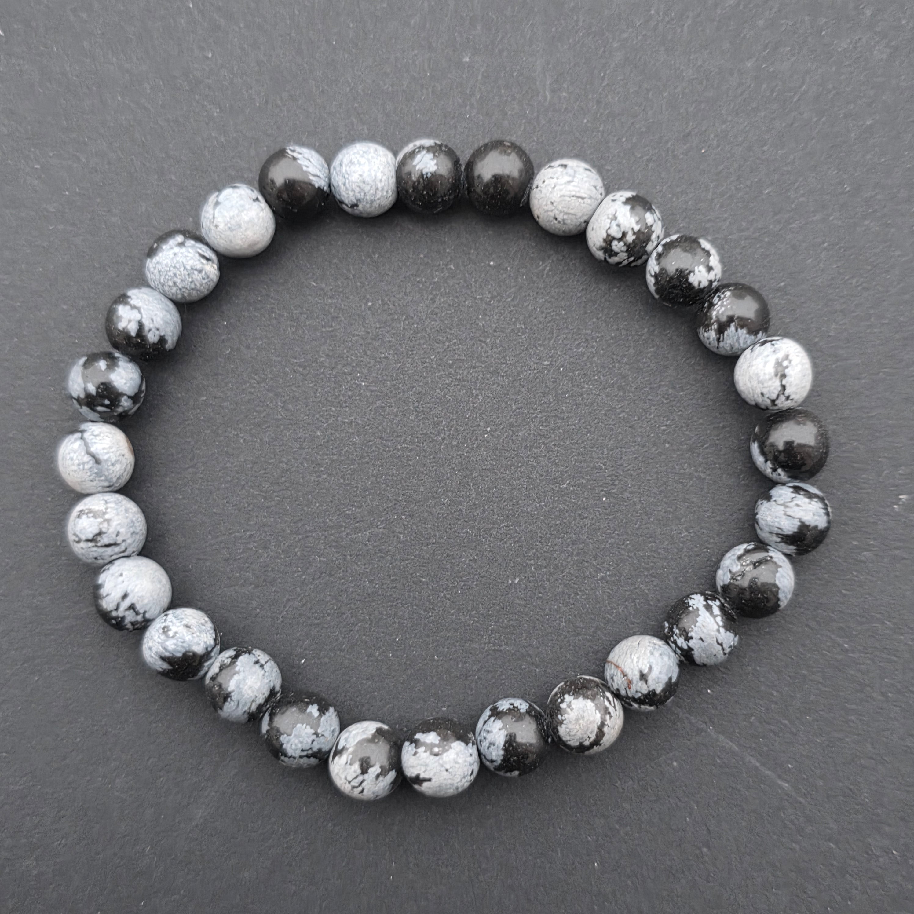 Description - Snowflake Obsidian Bracelet 6-7 mm