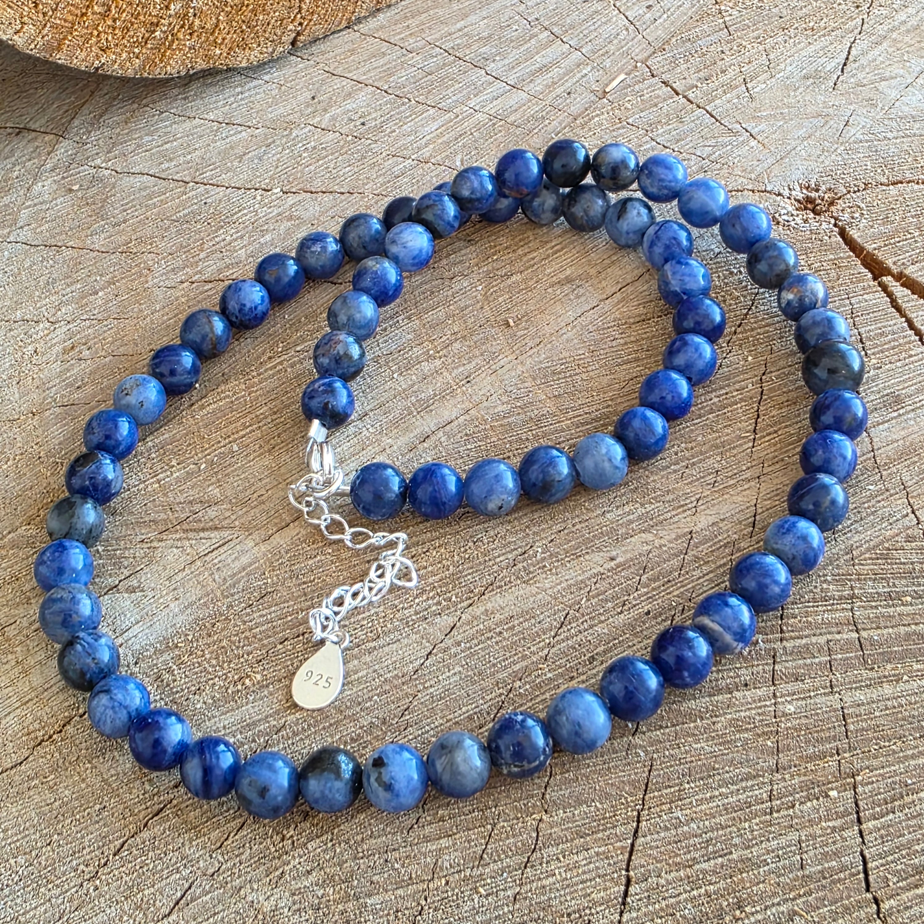 Materials: natural sodalite, 8 mm beads, 925 silver