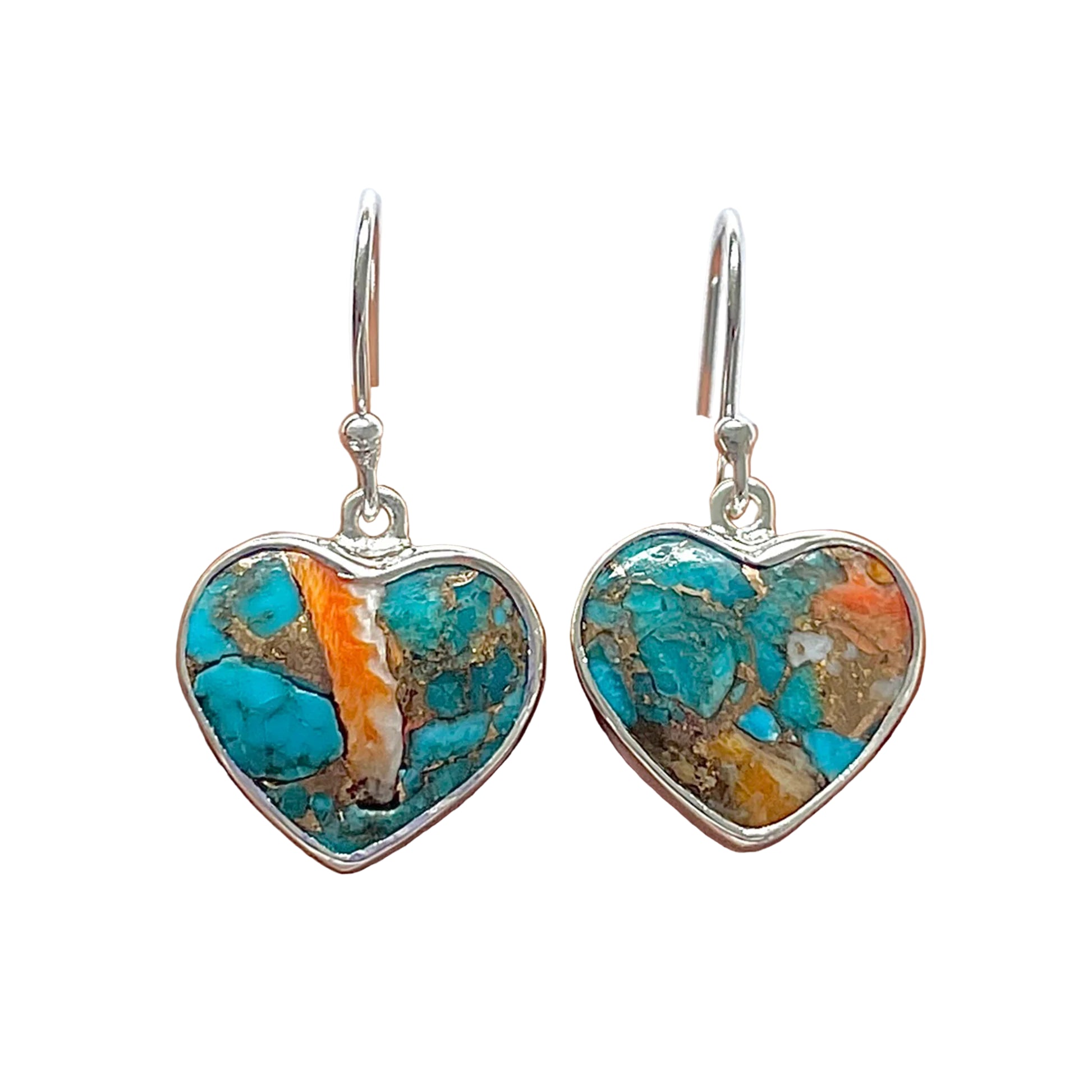 These unique heart -shaped earrings manage to capture the energy of the sea and the sun. The contrast between the intense blue turquoise and the warm orange and white shades of Spiny Oyster shell create a lively jewel, which evokes the freedom of the ocean and the joy of the present moment.