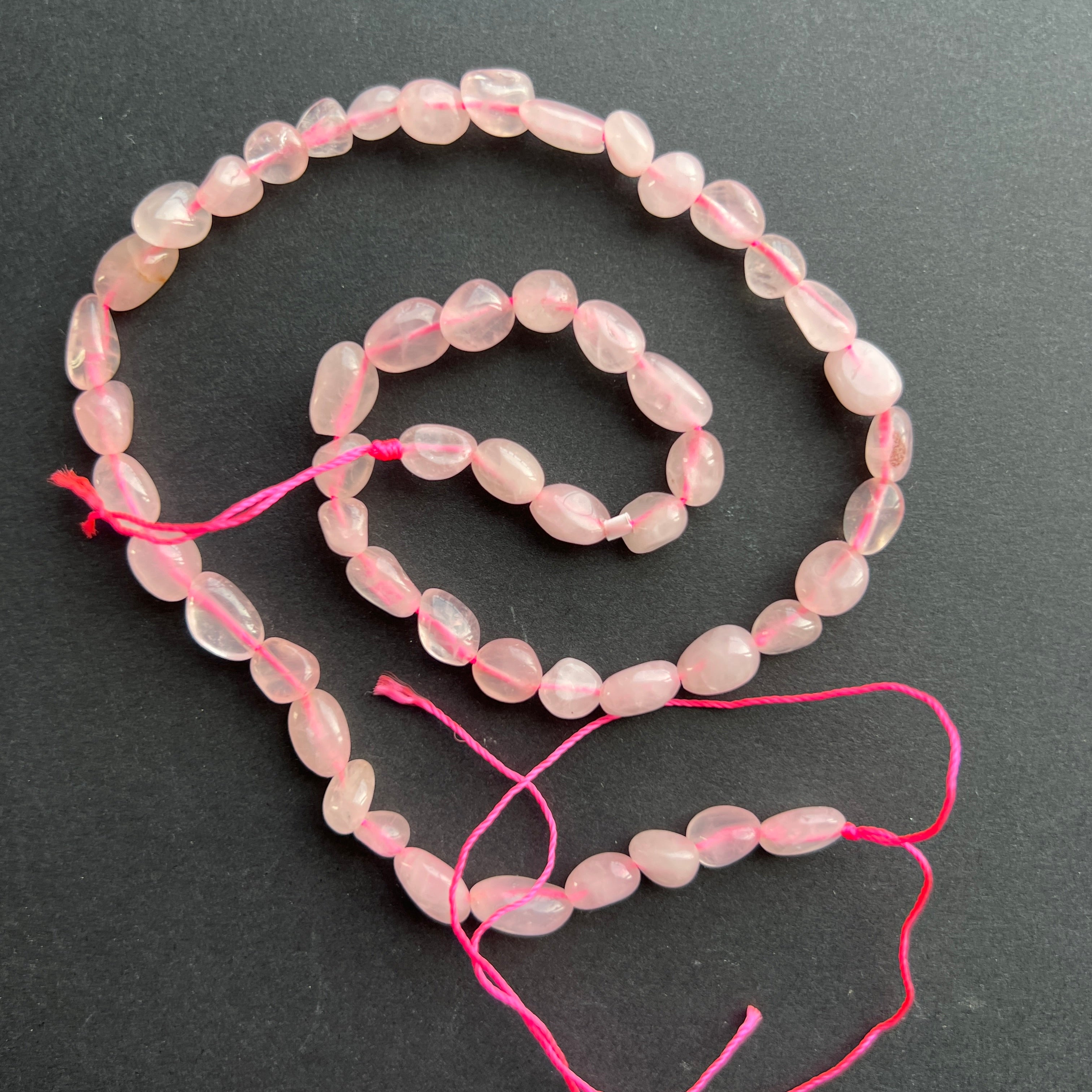 Reviews- Strand of beads semi-precious stones raw rolled PINK QUARTZ