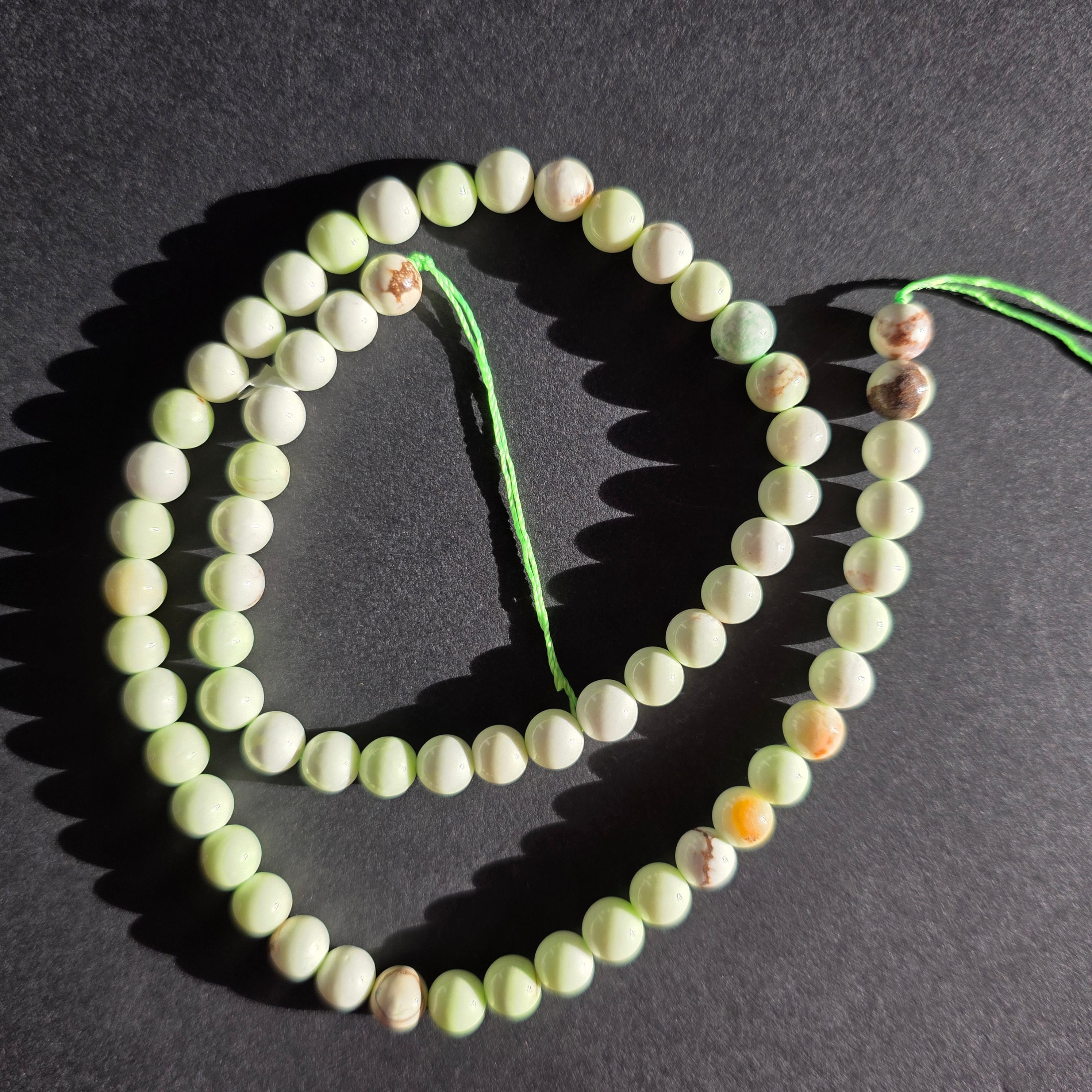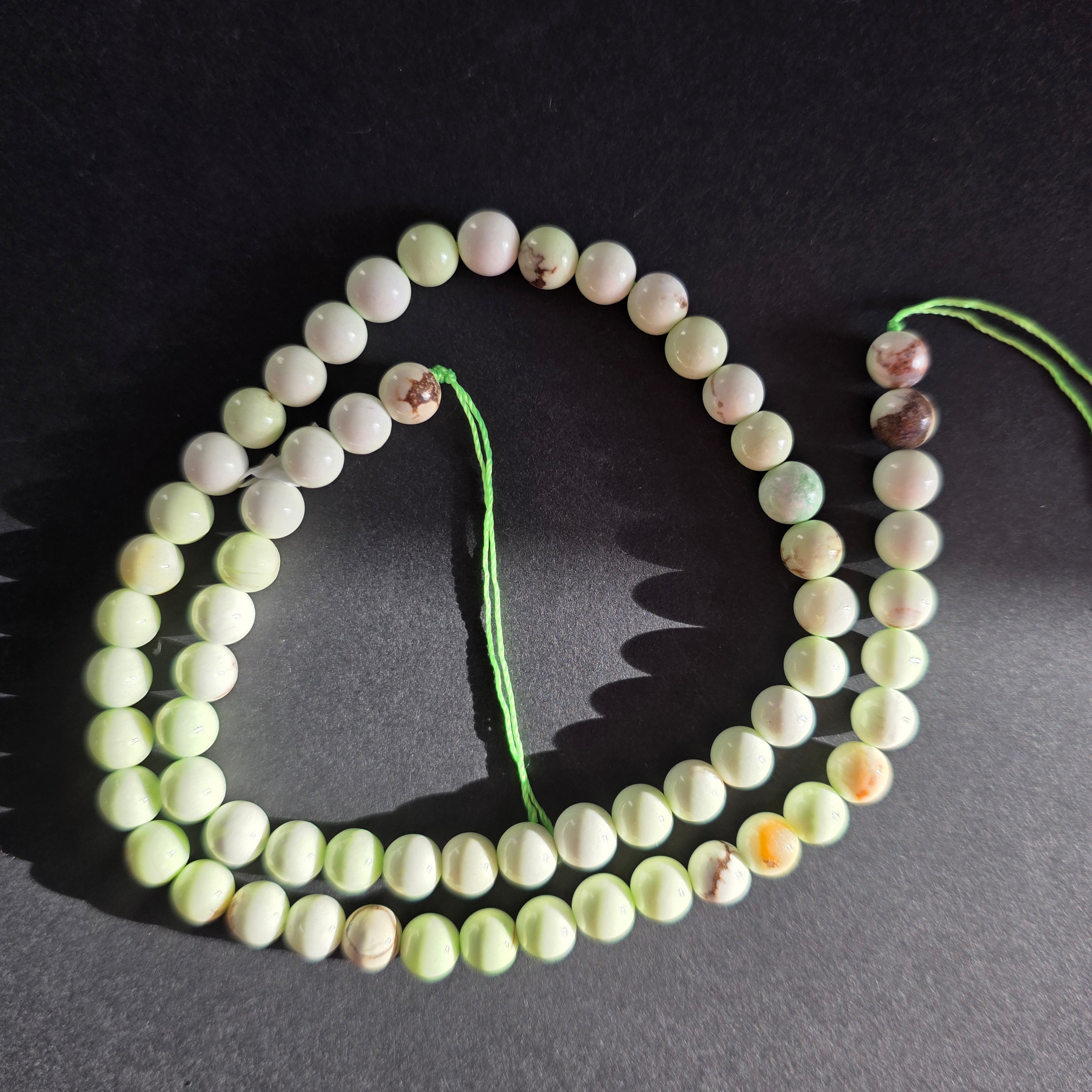 Description - Strand of semi-precious stone beads CHRYSOPRASE LEMON SPHERES