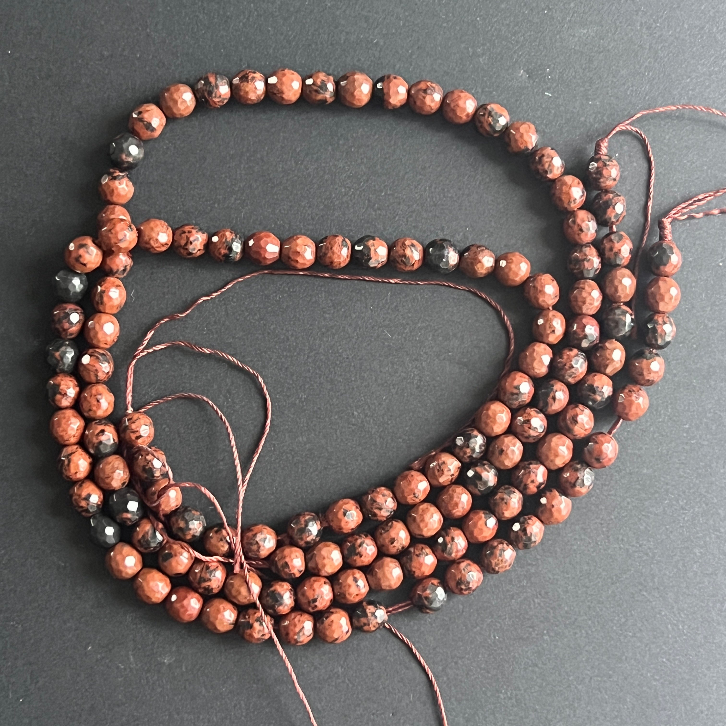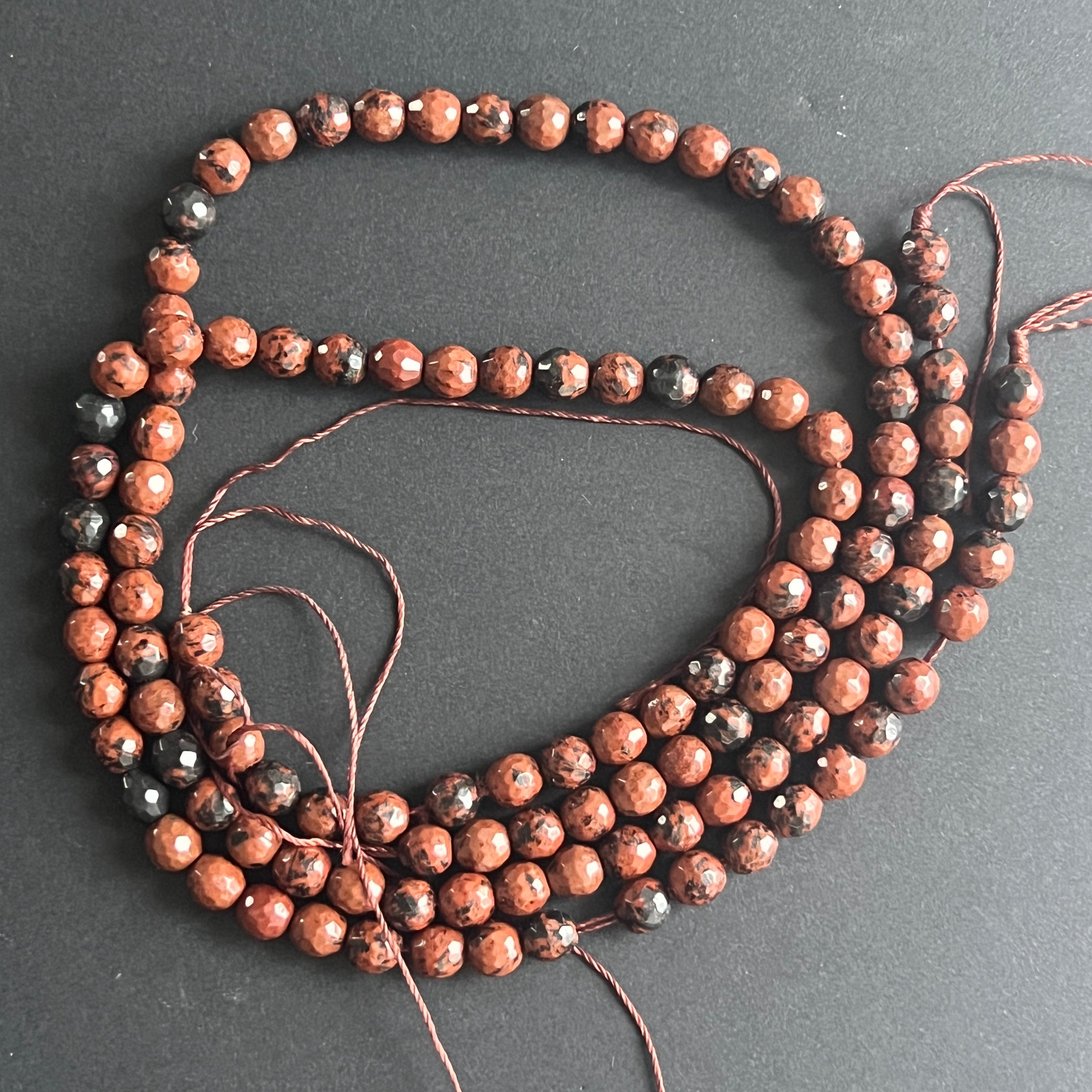 Description - Strand of semi-precious stone beads, faceted spheres MAHOGANY OBSIDIAN