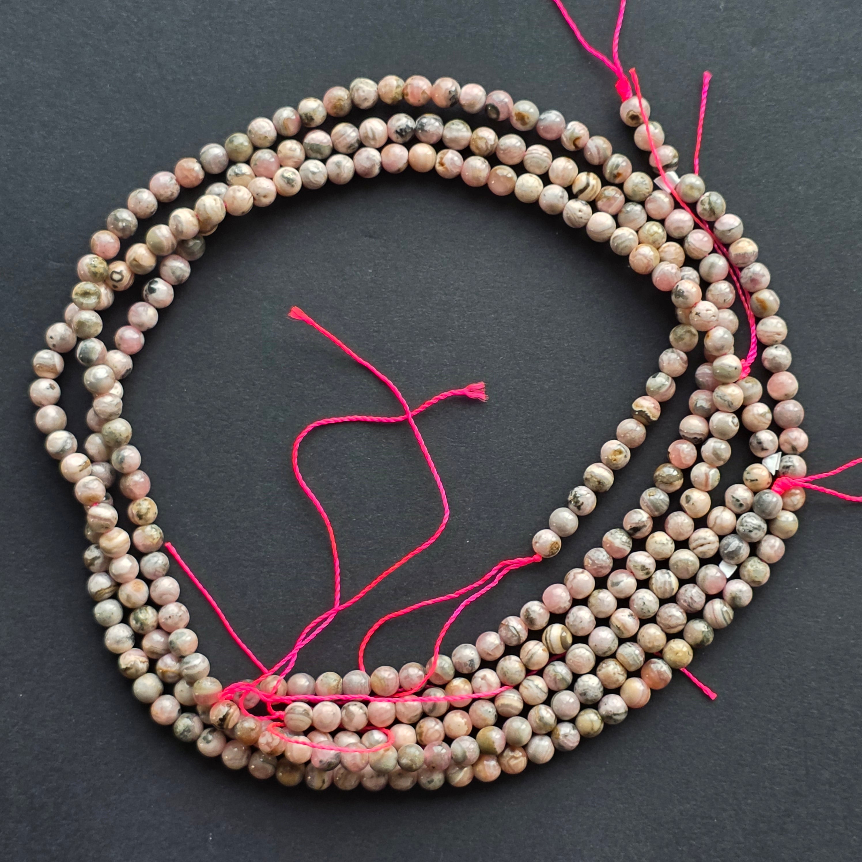 RODOCROSITE Strand, made of natural spherical beads, perfect for necklaces, bracelets, or other handmade jewelry.