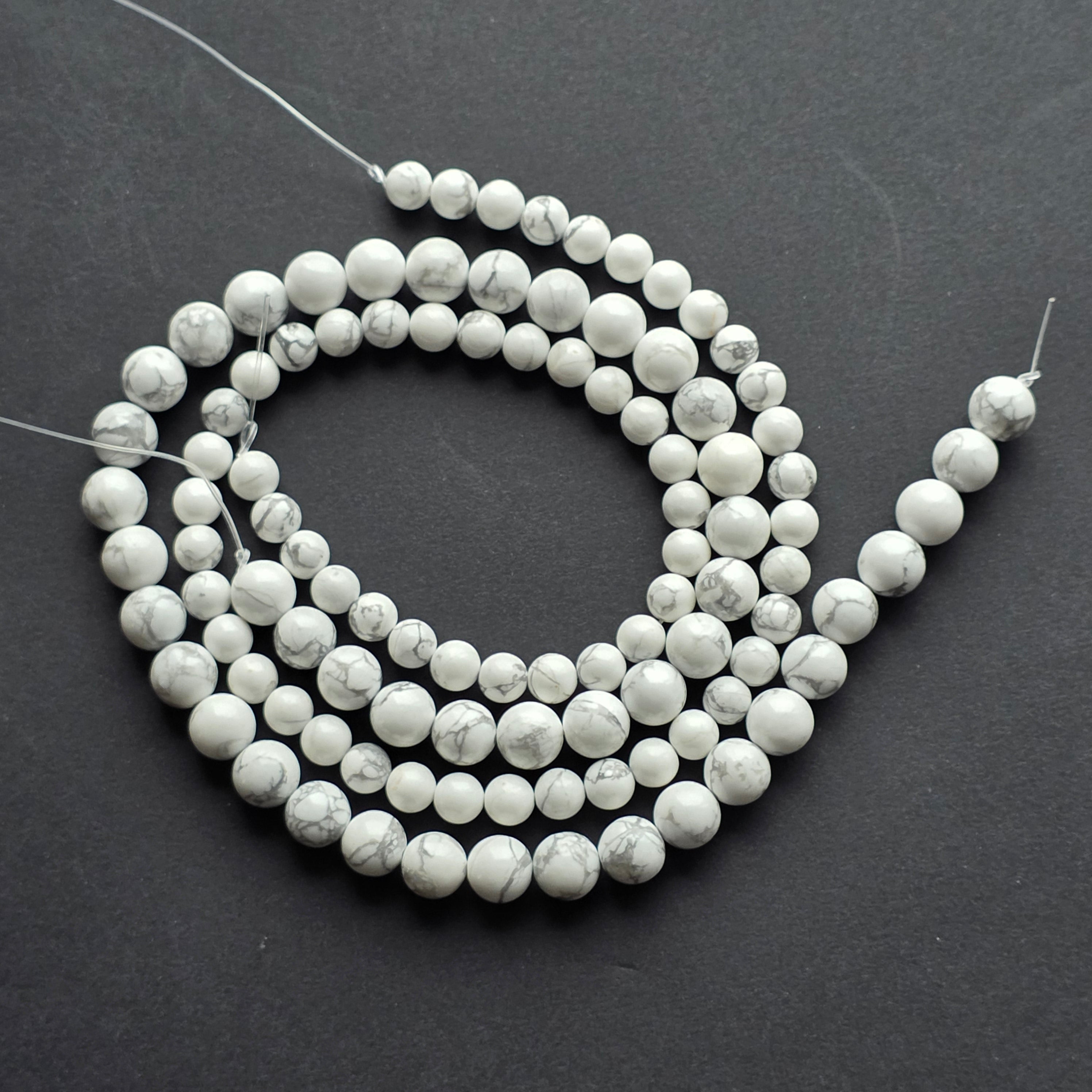 White Howlite Strand, made of natural spherical beads, perfect for necklaces, bracelets, or other handmade jewelry.