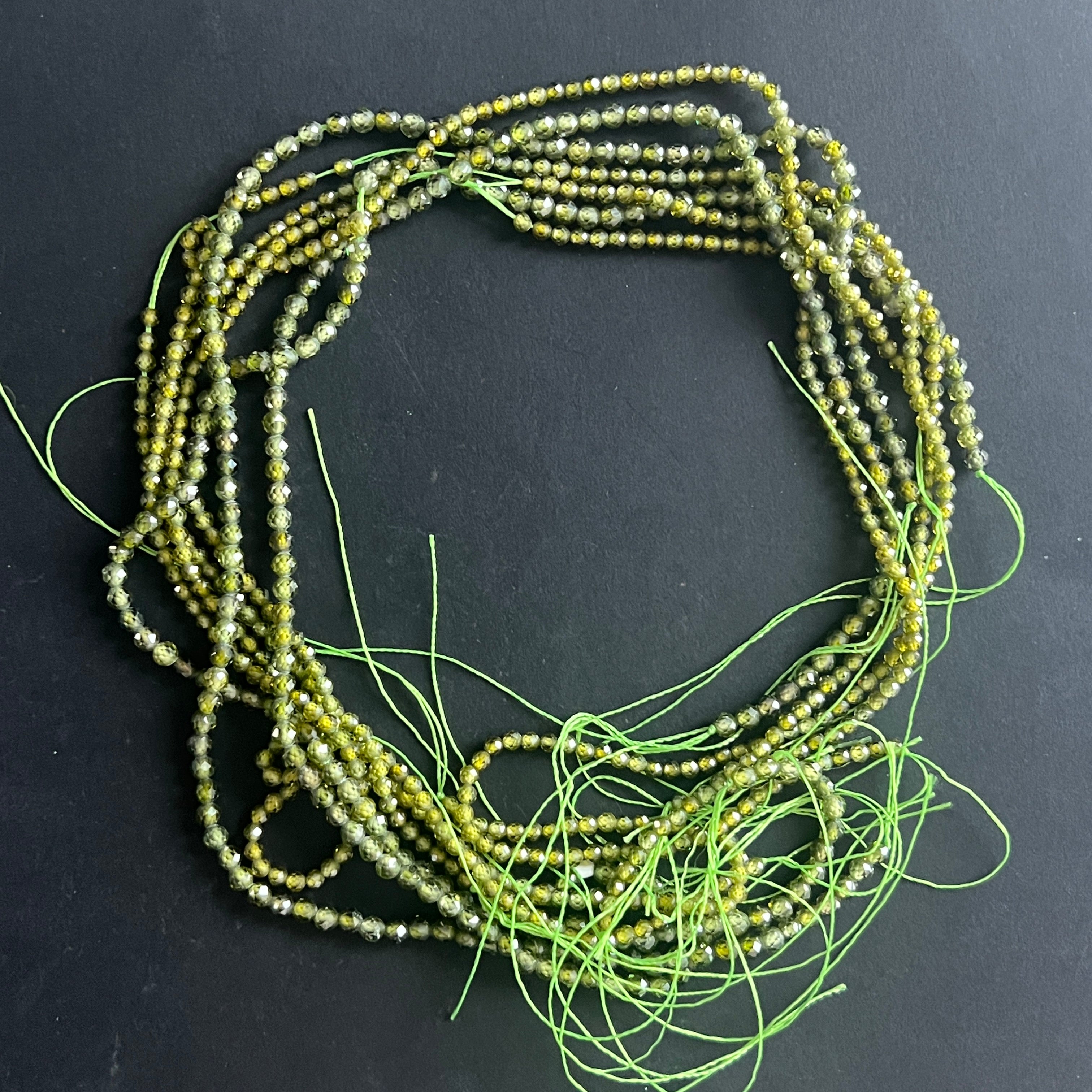 Reviews- String of beads with semi-precious faceted ZIRCON GREEN spheres