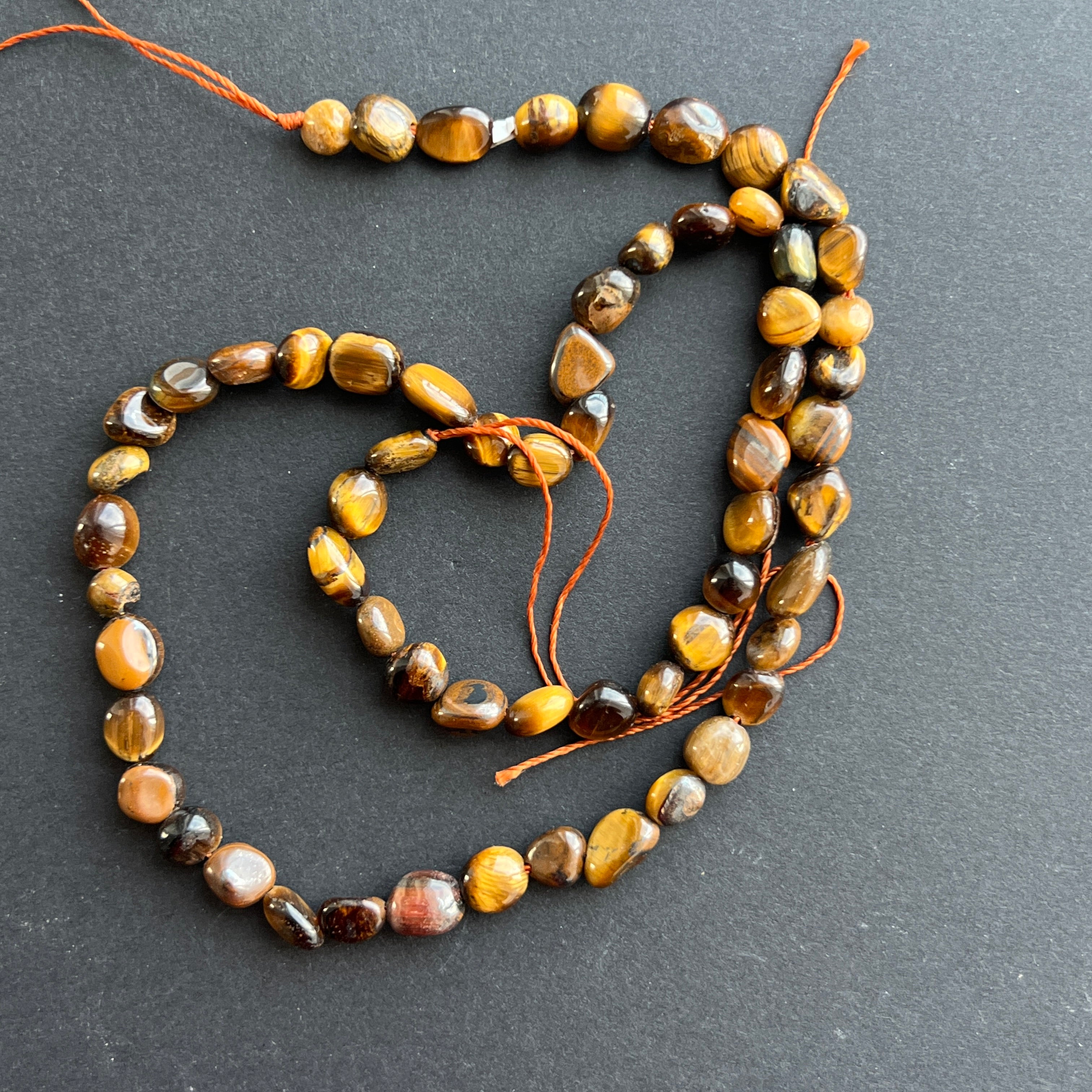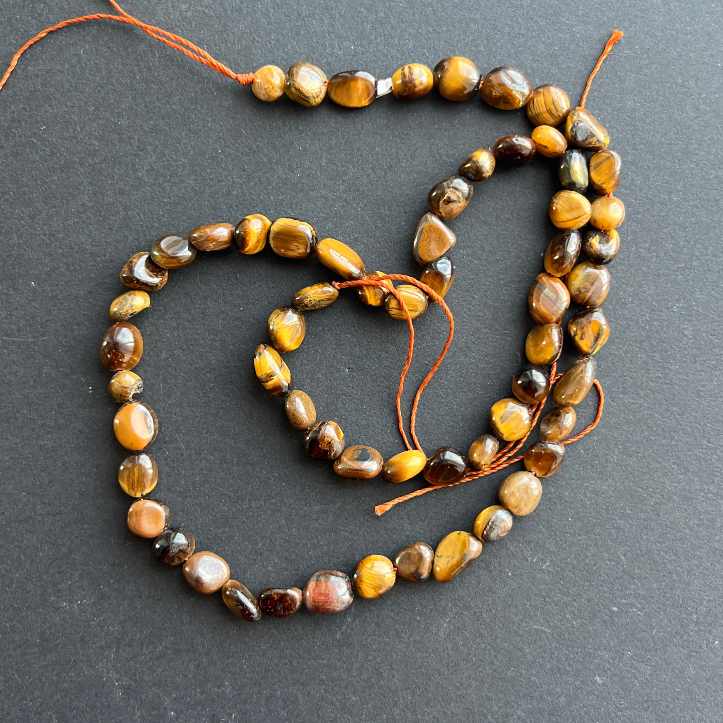 String of semi-precious beads raw rolled stones TIGER'S EYE