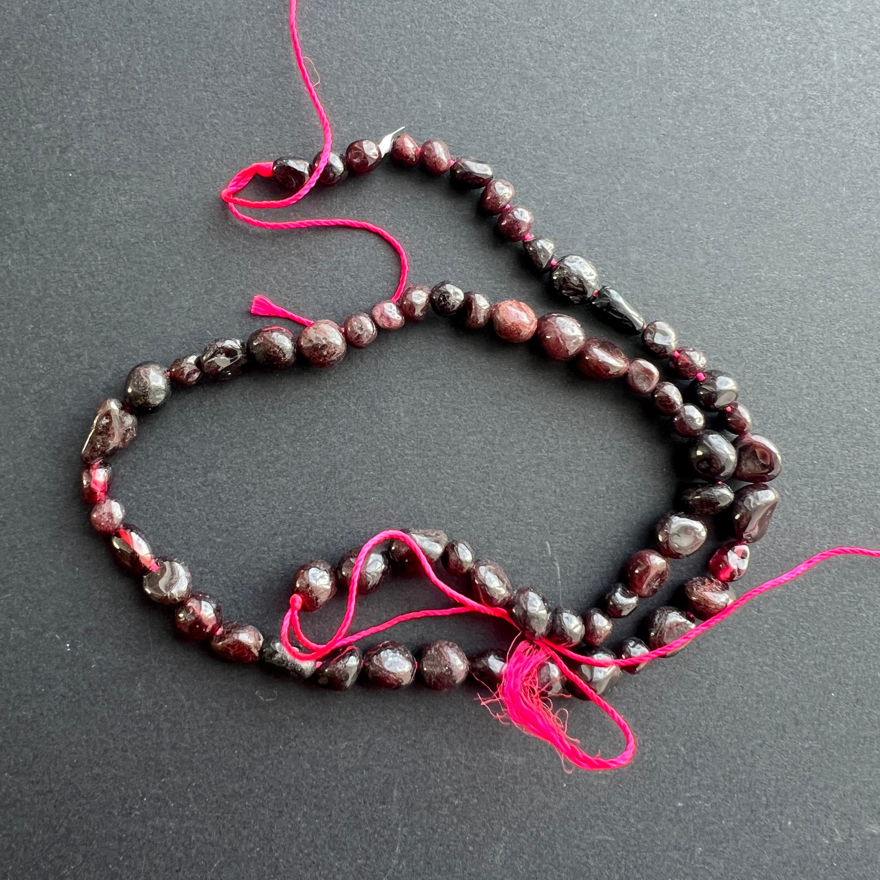 String of semi-precious beads rough tumbled stones GARNET