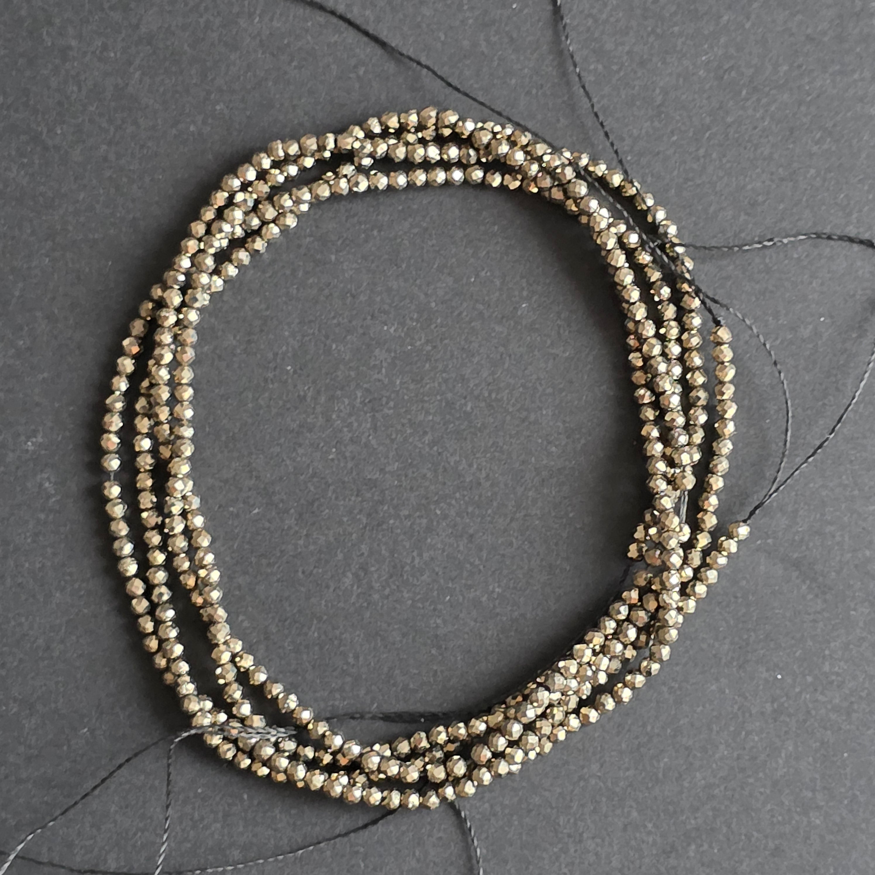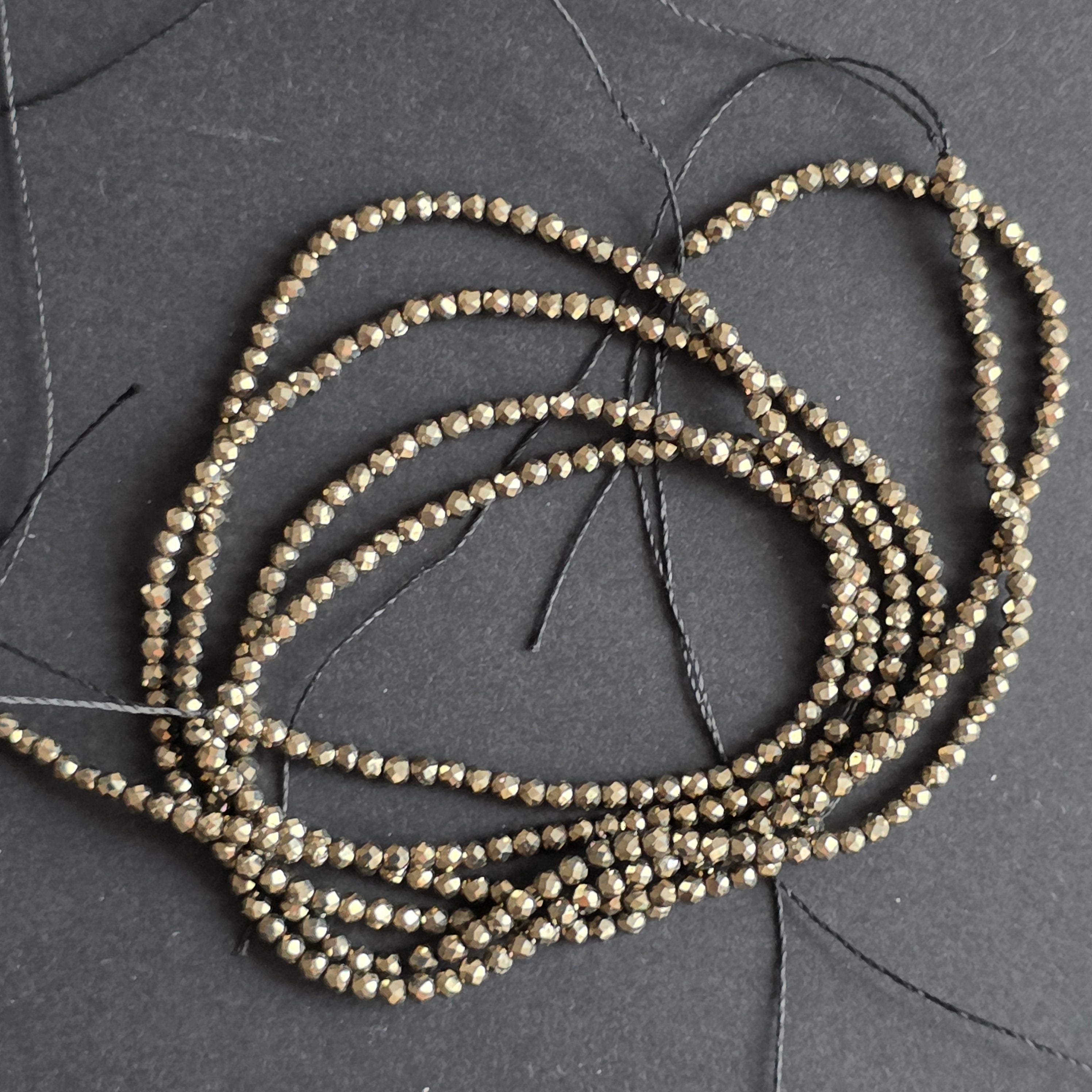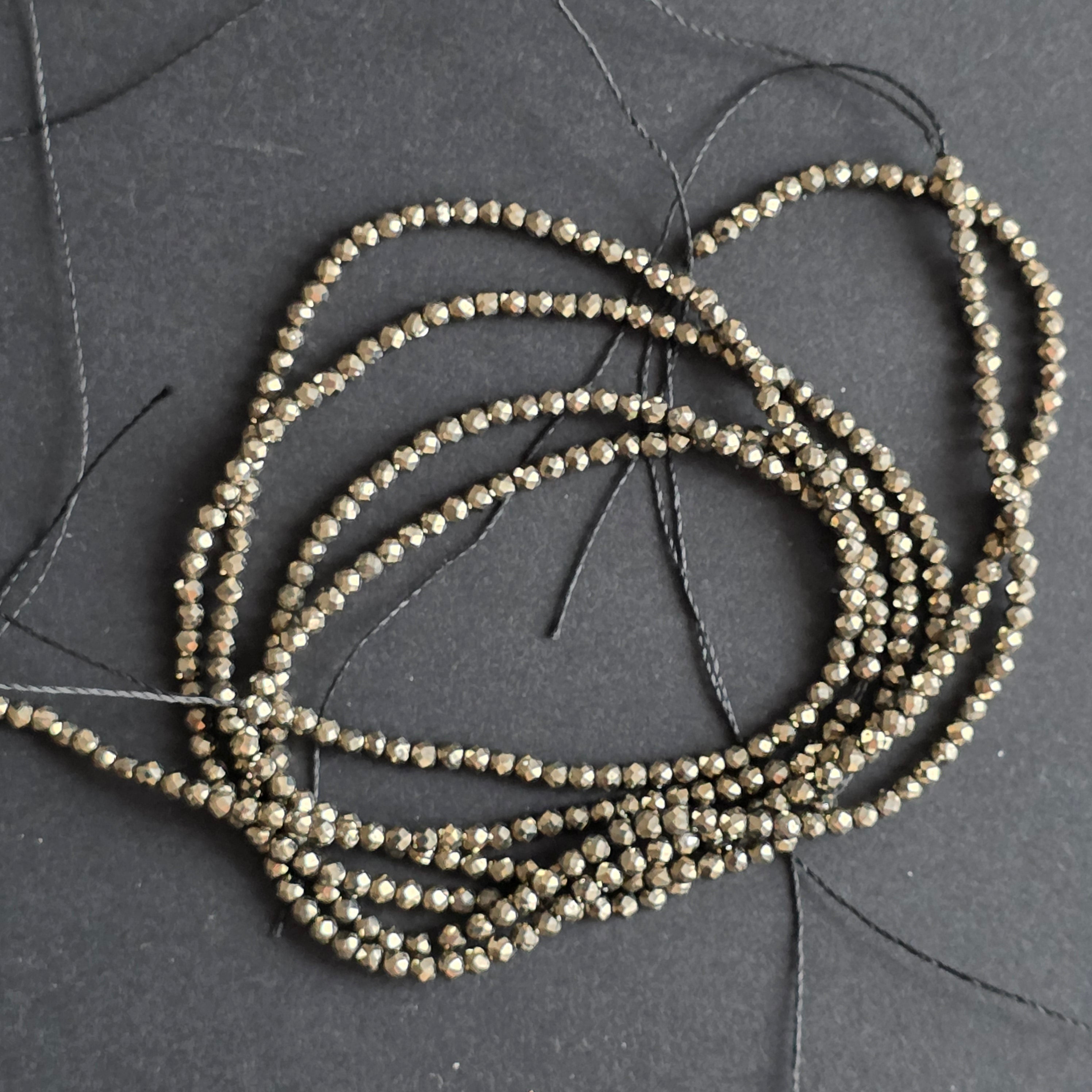 String of semi-precious stone beads, faceted PYRITE spheres