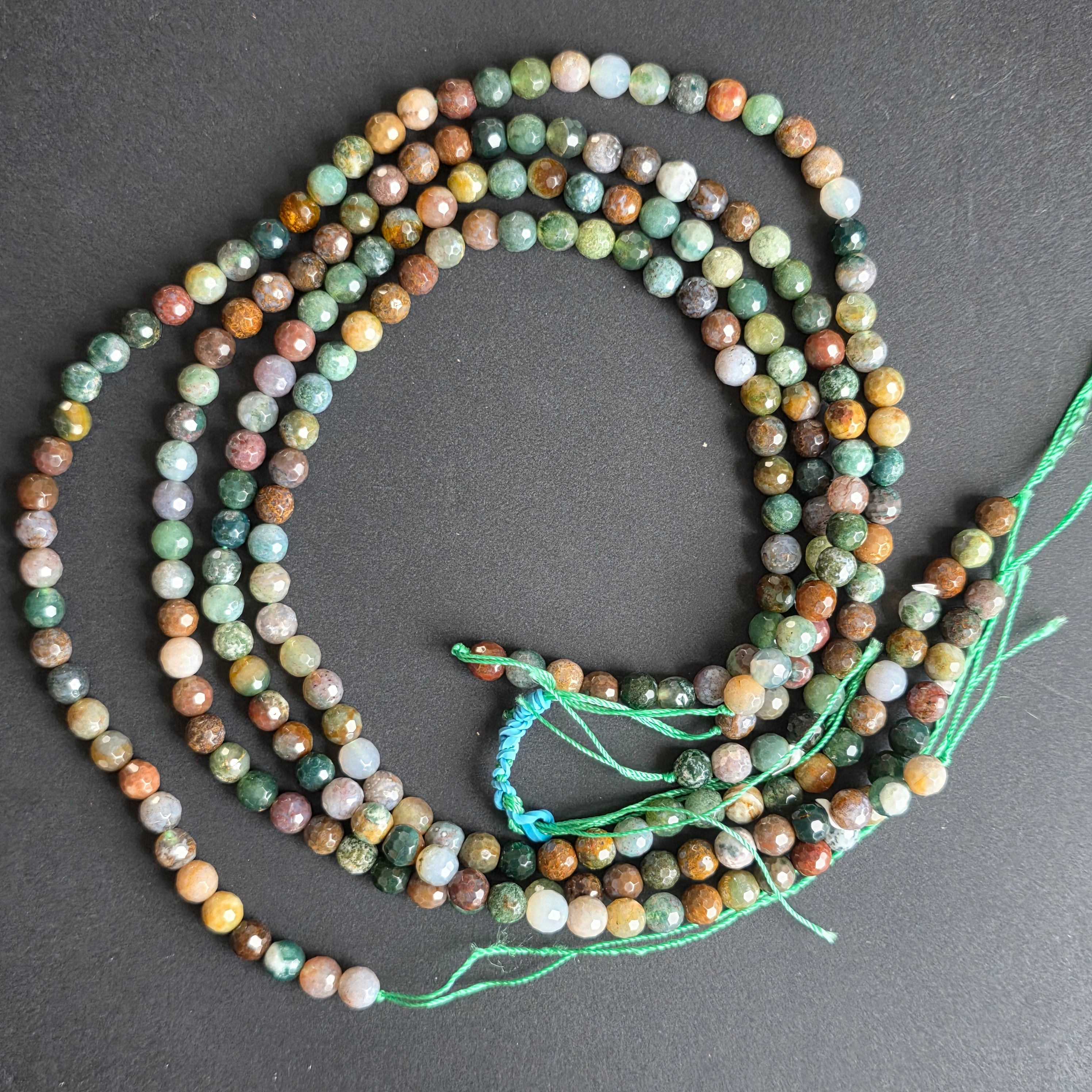 String of INDIAN AGATE,composed of natural faceted spherical beads,perfect for necklaces, bracelets, or other handmade jewelry.