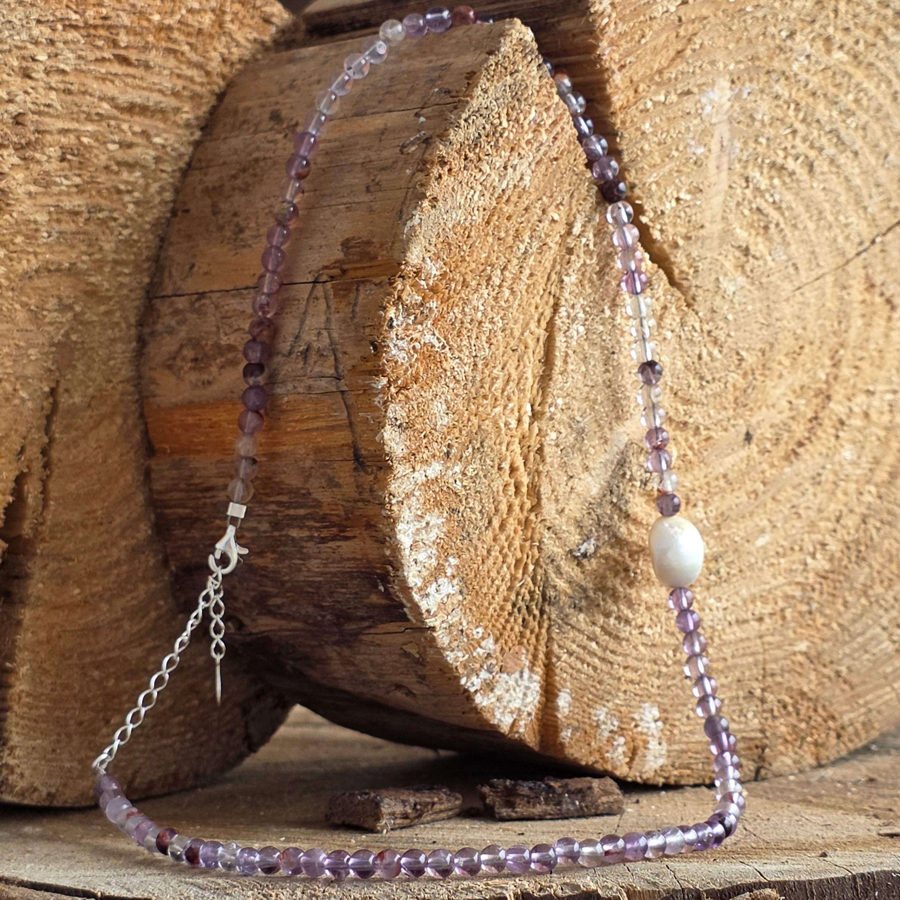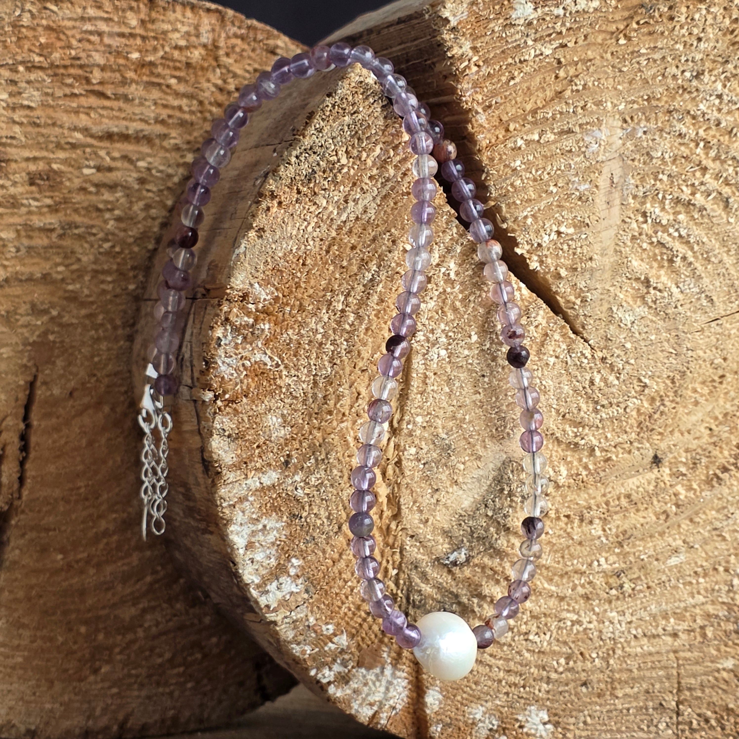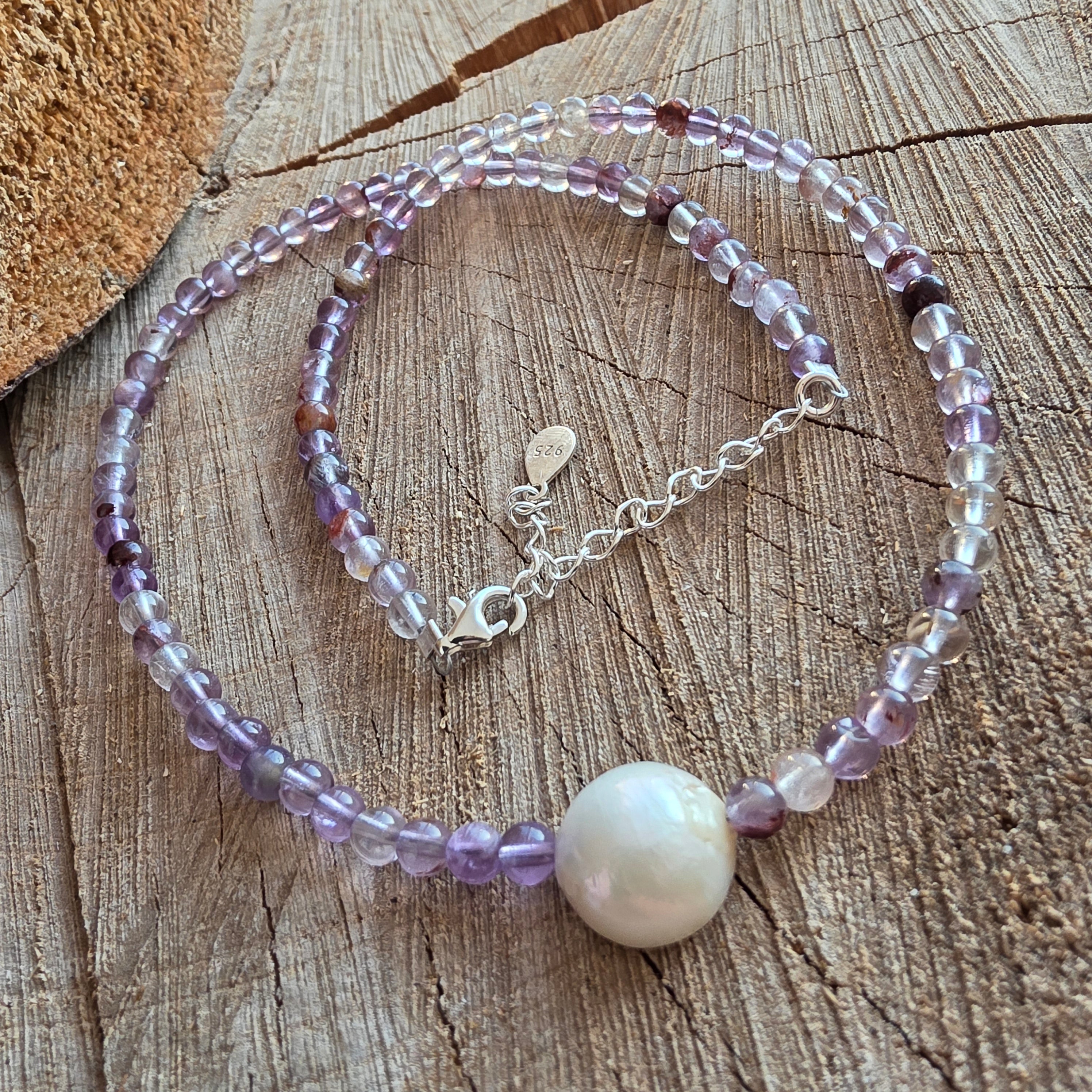 Materials: Natural Super Seven, 4 mm beads, 1 cm accent pearl, 925 silver