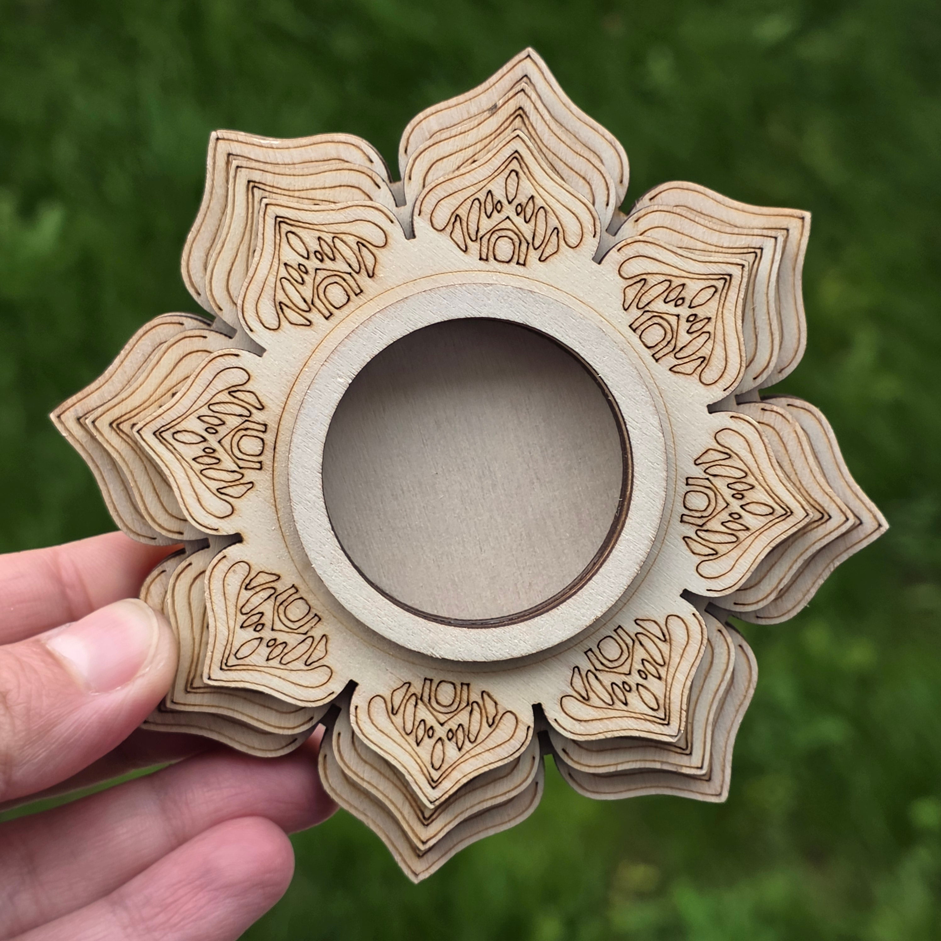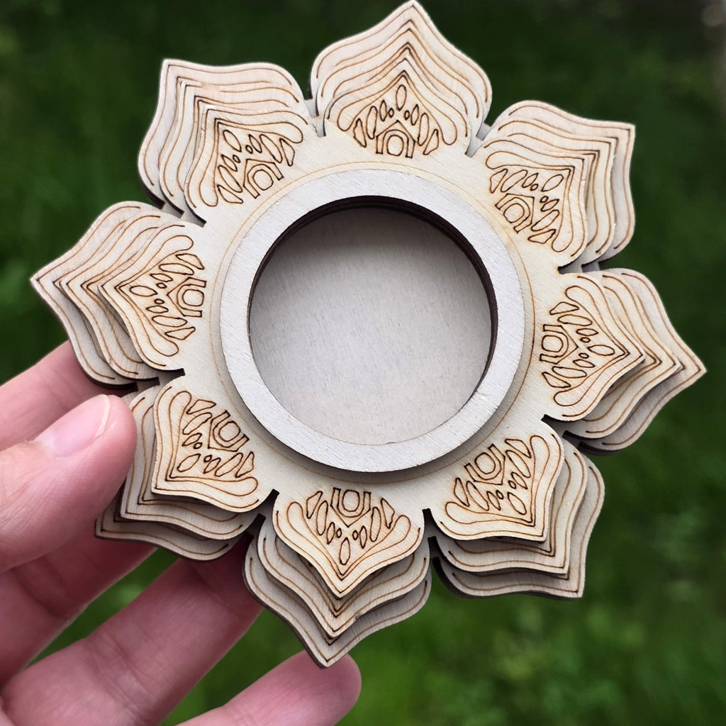 Description - Suport din lemn Mandala pentru cristale și sfere