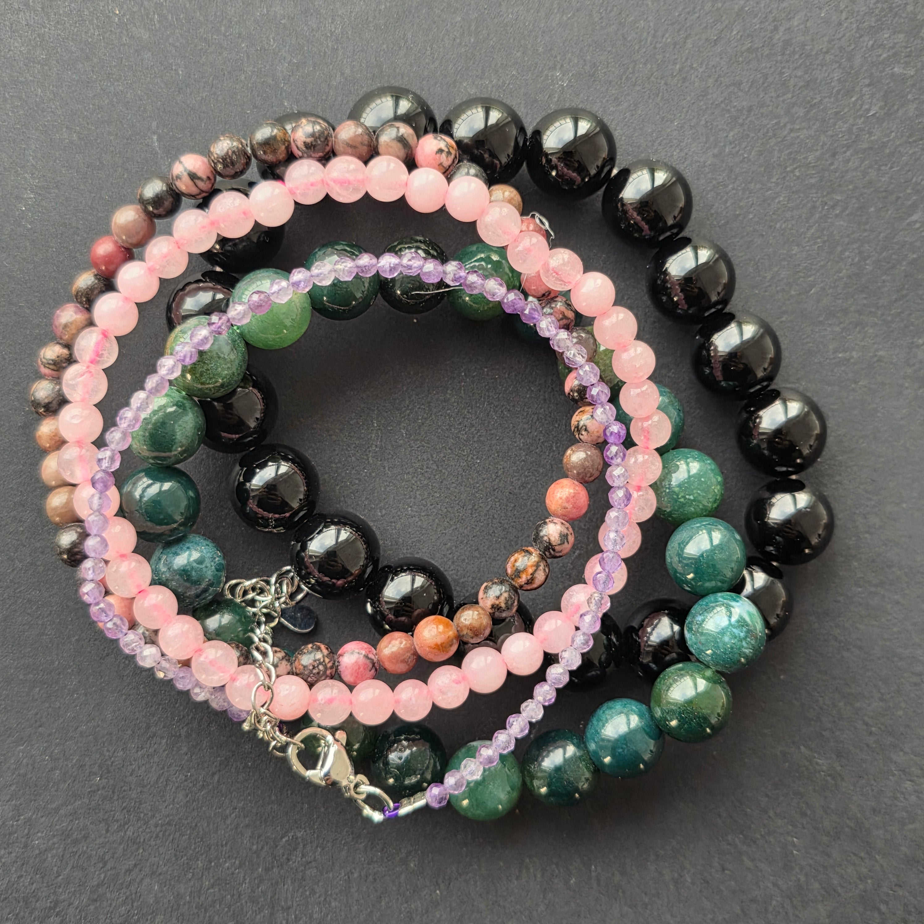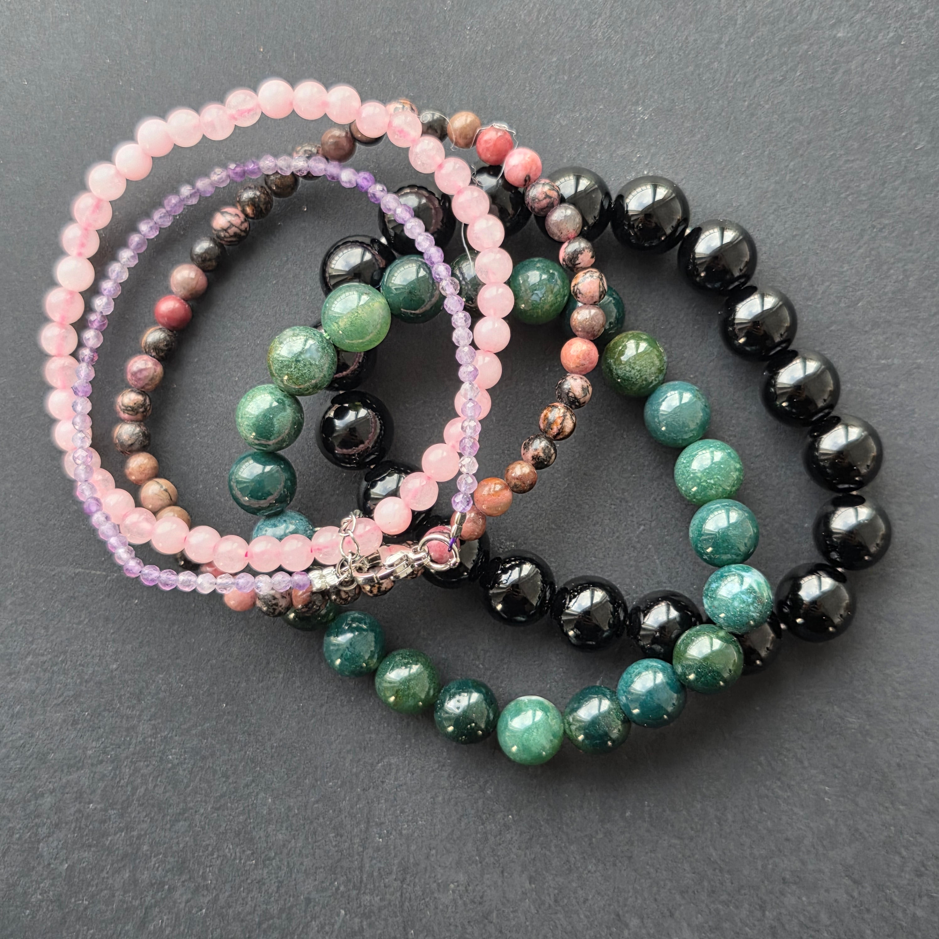 – Moss agate bracelet, 8 mm
