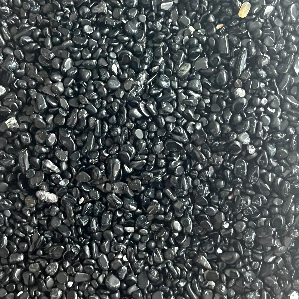 Chipsurile din Turmalină Neagră naturală sunt fragmente mici de energie pură, perfect pentru colecționari, pentru decor sau pentru practici energetice. Fiecare piatră de 3–5 mm a fost șlefuită delicat pentru a păstra luciul natural și forța de protecție a turmalinei.