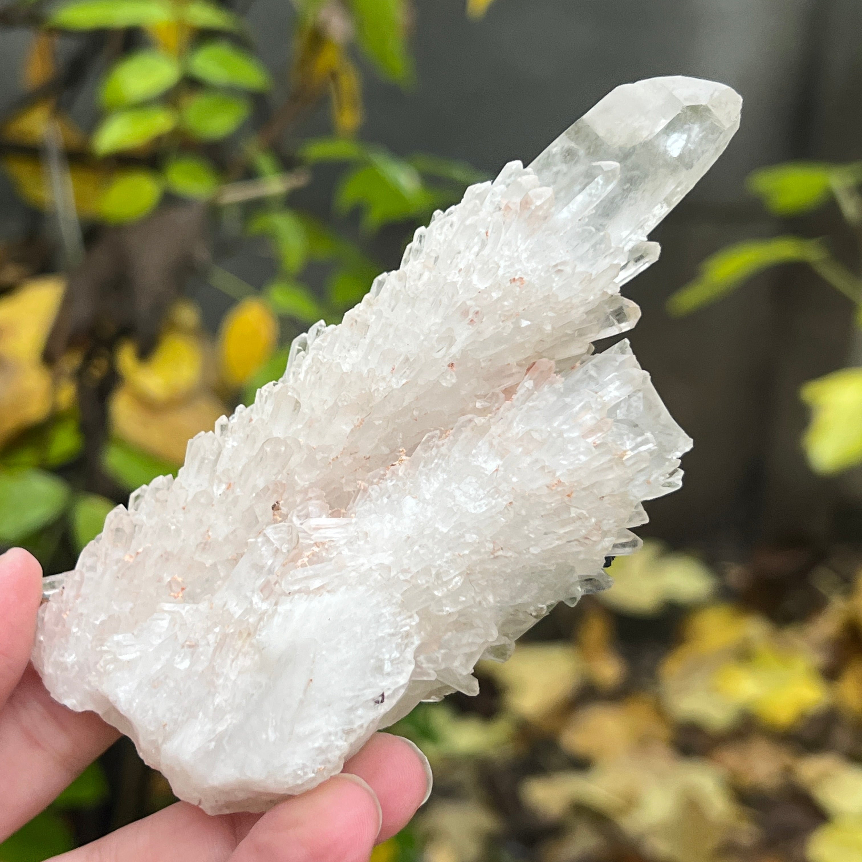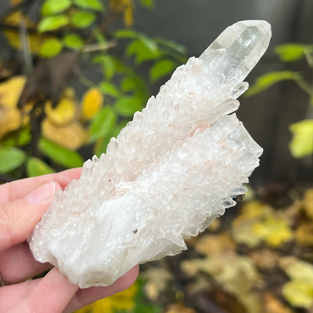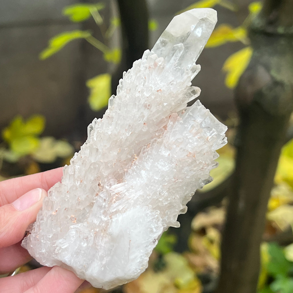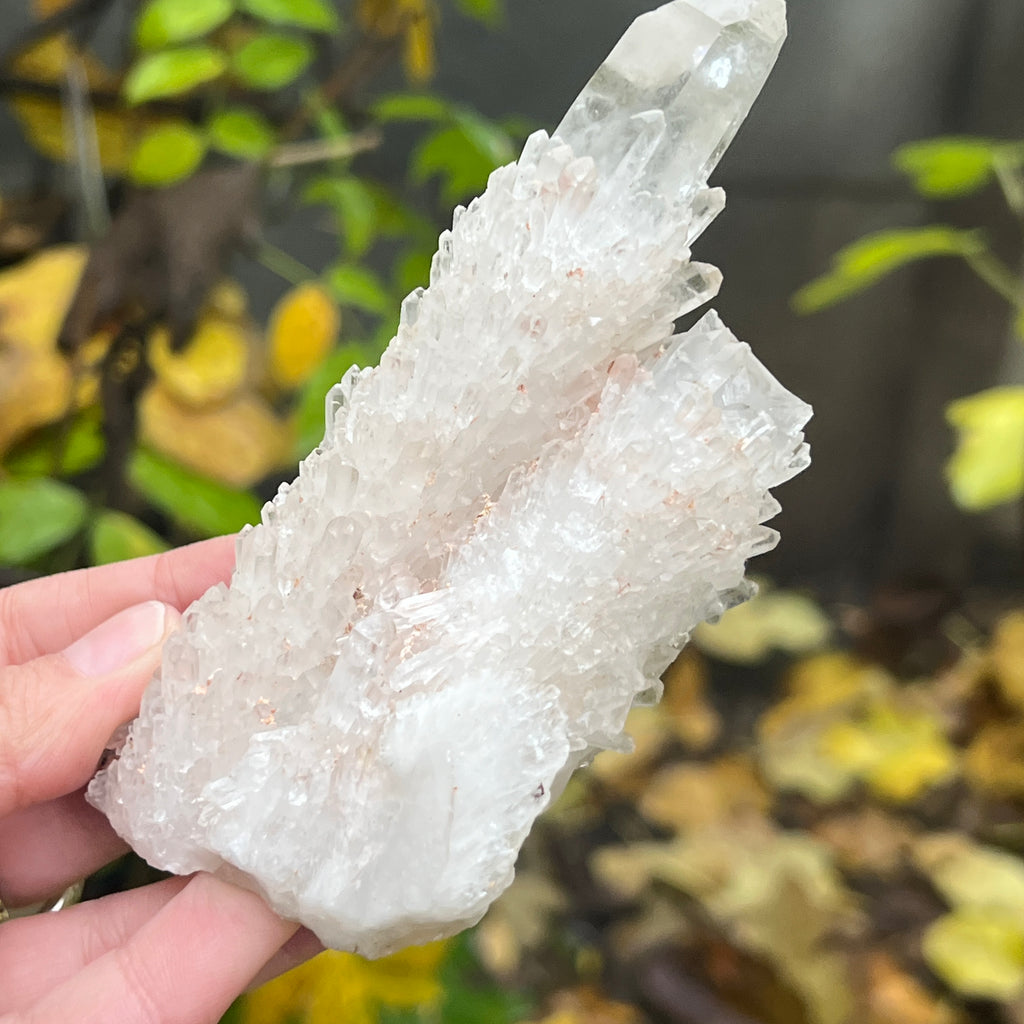 Un vârf care pare sculptat de lumină însăși. Cuartul celest, cunoscut și ca cuart lumânare, îmbină forța unui cristal de cuarț cu blândețea și strălucirea unei flăcări interioare. Forma sa unică, asemănătoare unui ananas cristalin, emană o energie de purificare profundă și de conectare cu planurile superioare ale conștiinței.