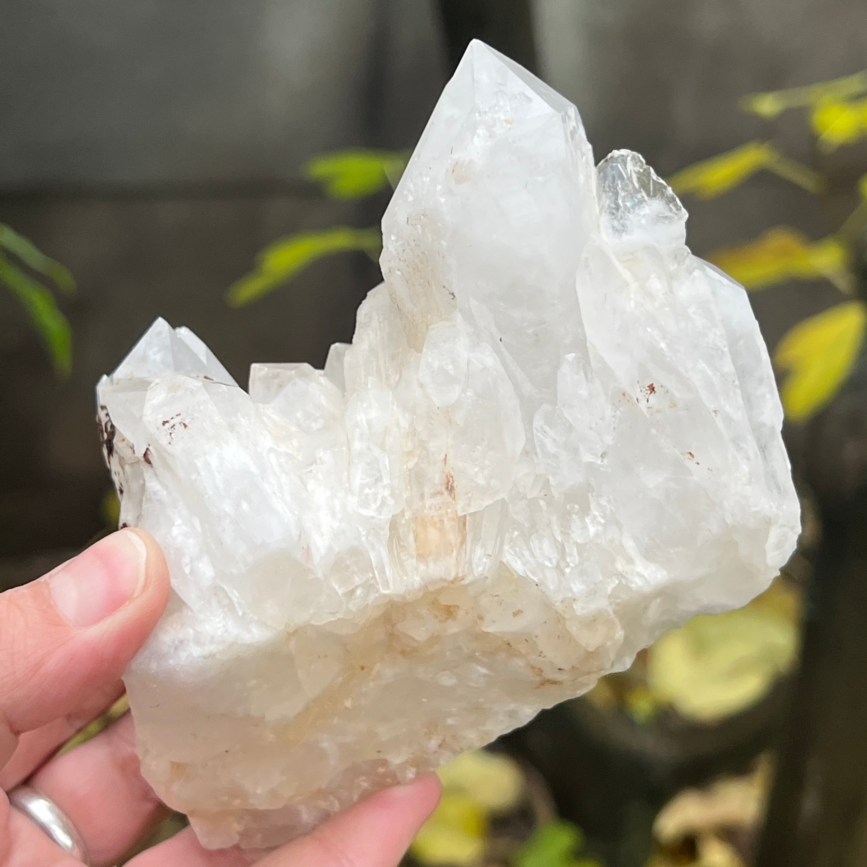 Un vârf care pare sculptat de lumină însăși. Cuartul celest, cunoscut și ca cuart lumânare, îmbină forța unui cristal de cuarț cu blândețea și strălucirea unei flăcări interioare. Forma sa unică, asemănătoare unui ananas cristalin, emană o energie de purificare profundă și de conectare cu planurile superioare ale conștiinței.