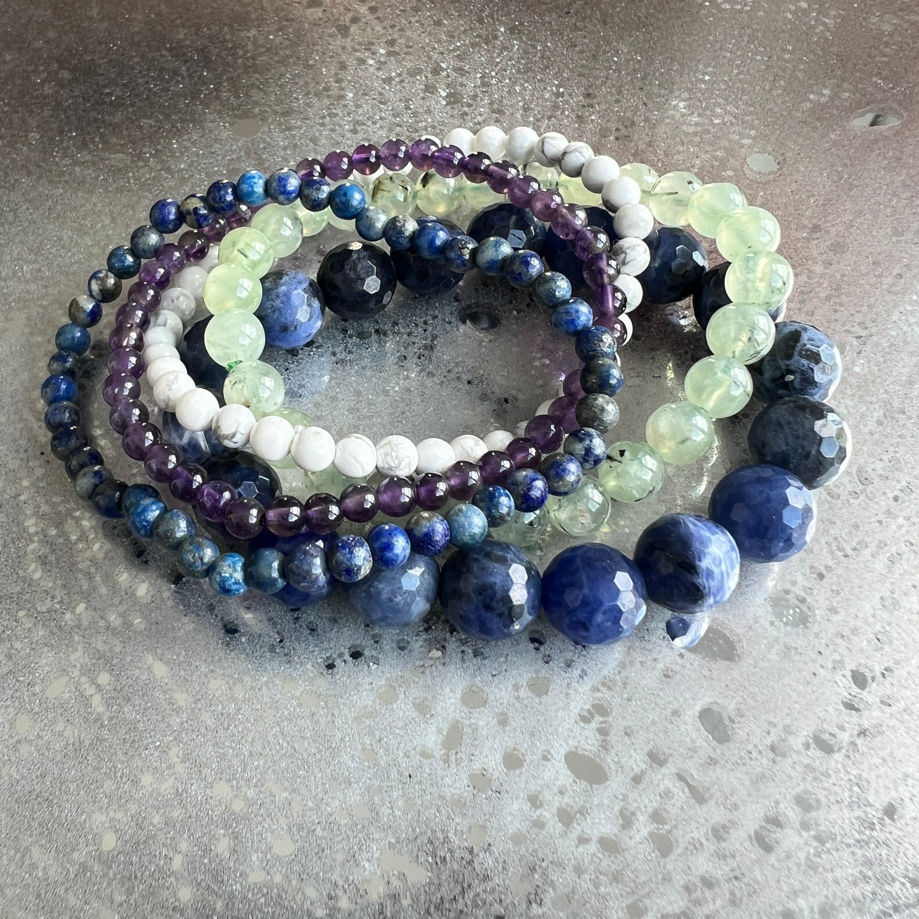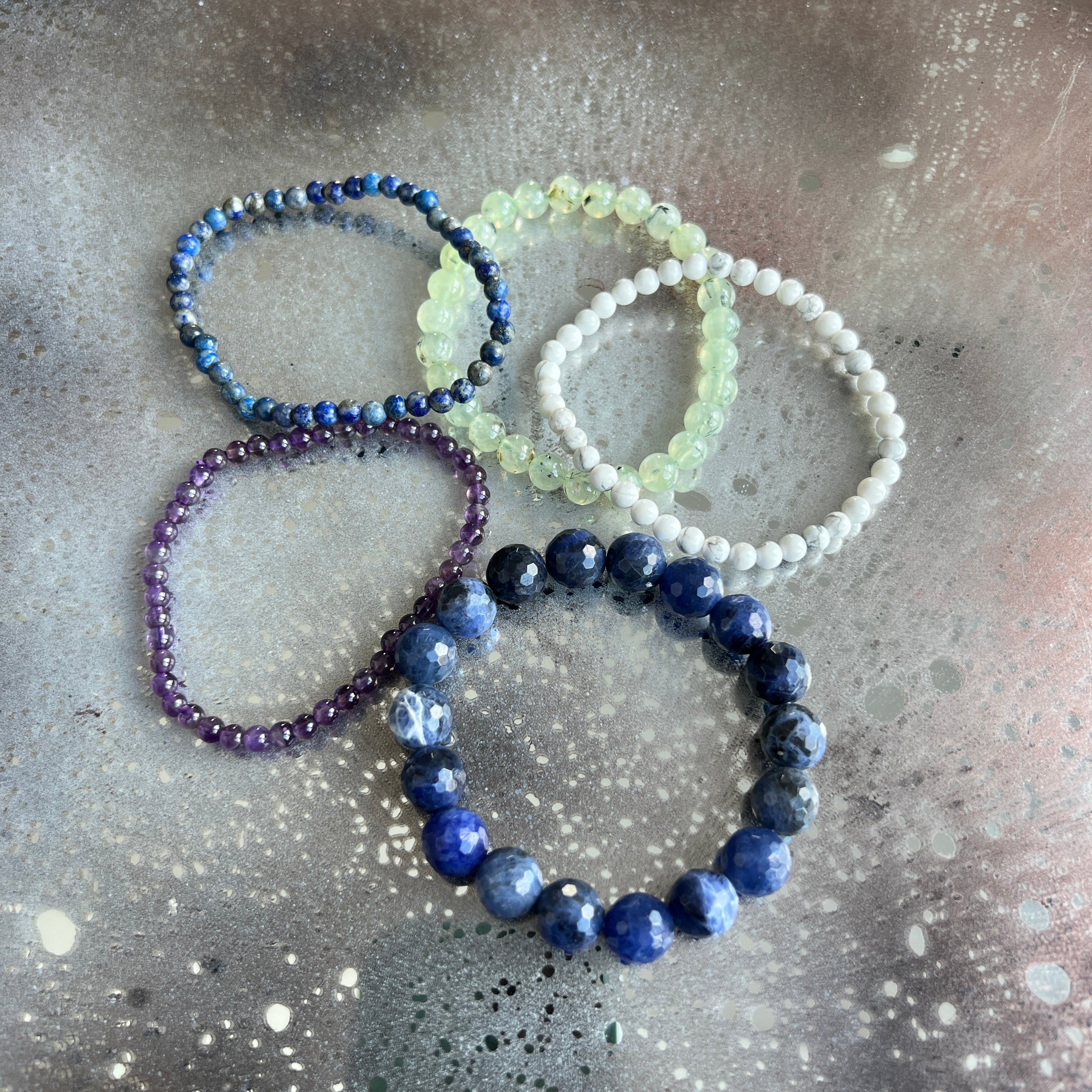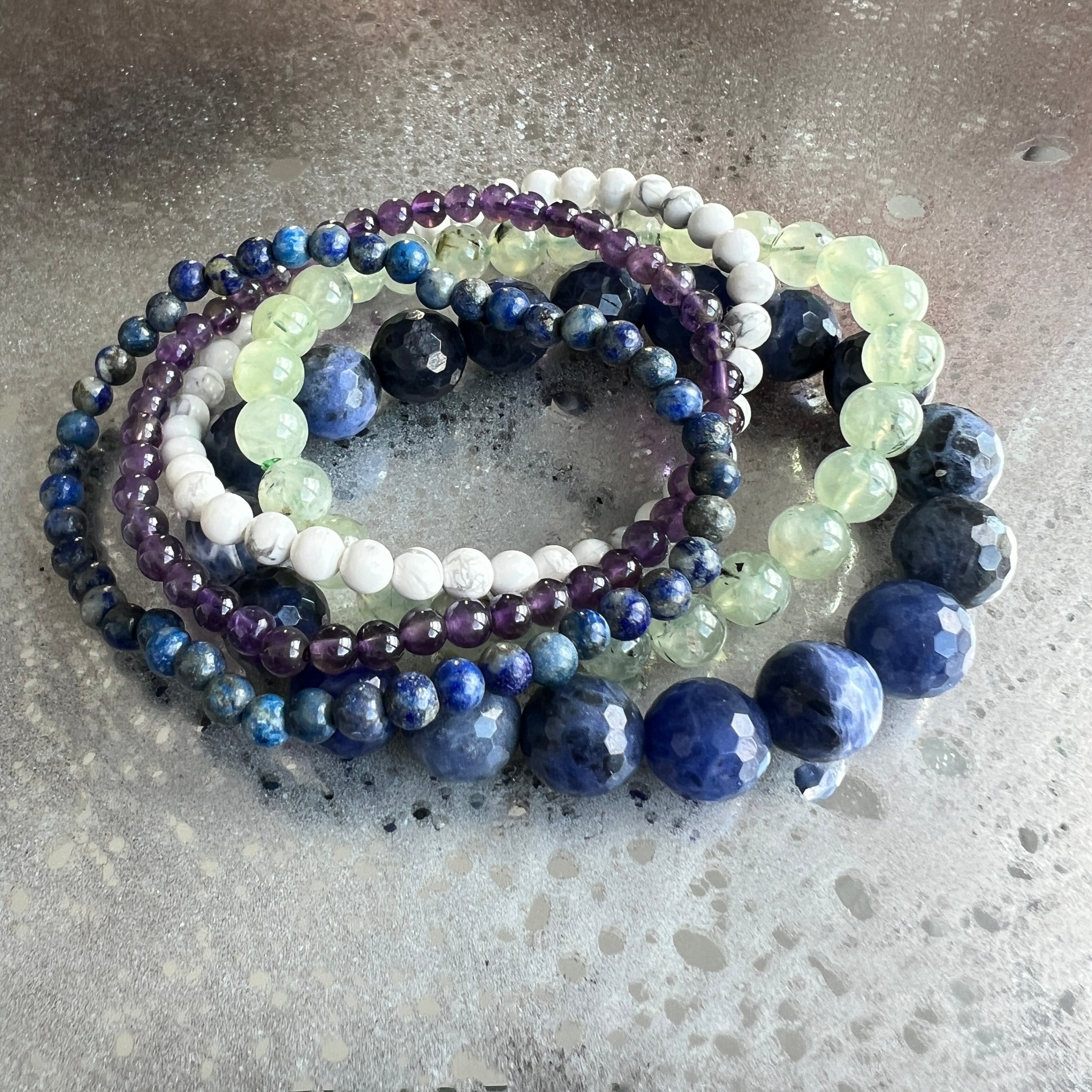 Faceted sodalite of 10 mm provides her with mental clarity, coherence, and confidence in her own voice, helping her stay centered in her decisions.