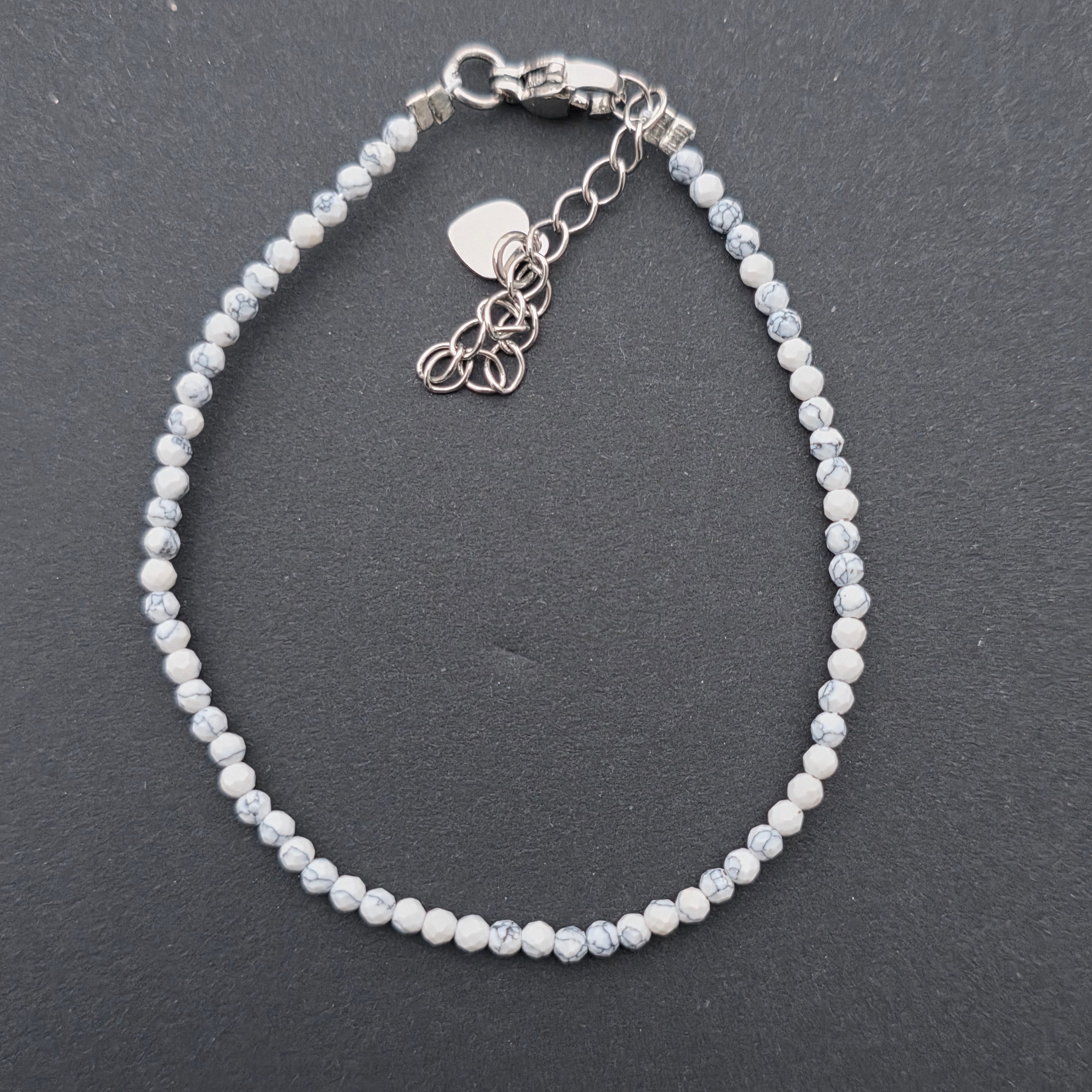 White Howlite Bracelet 2 mm Adjustable