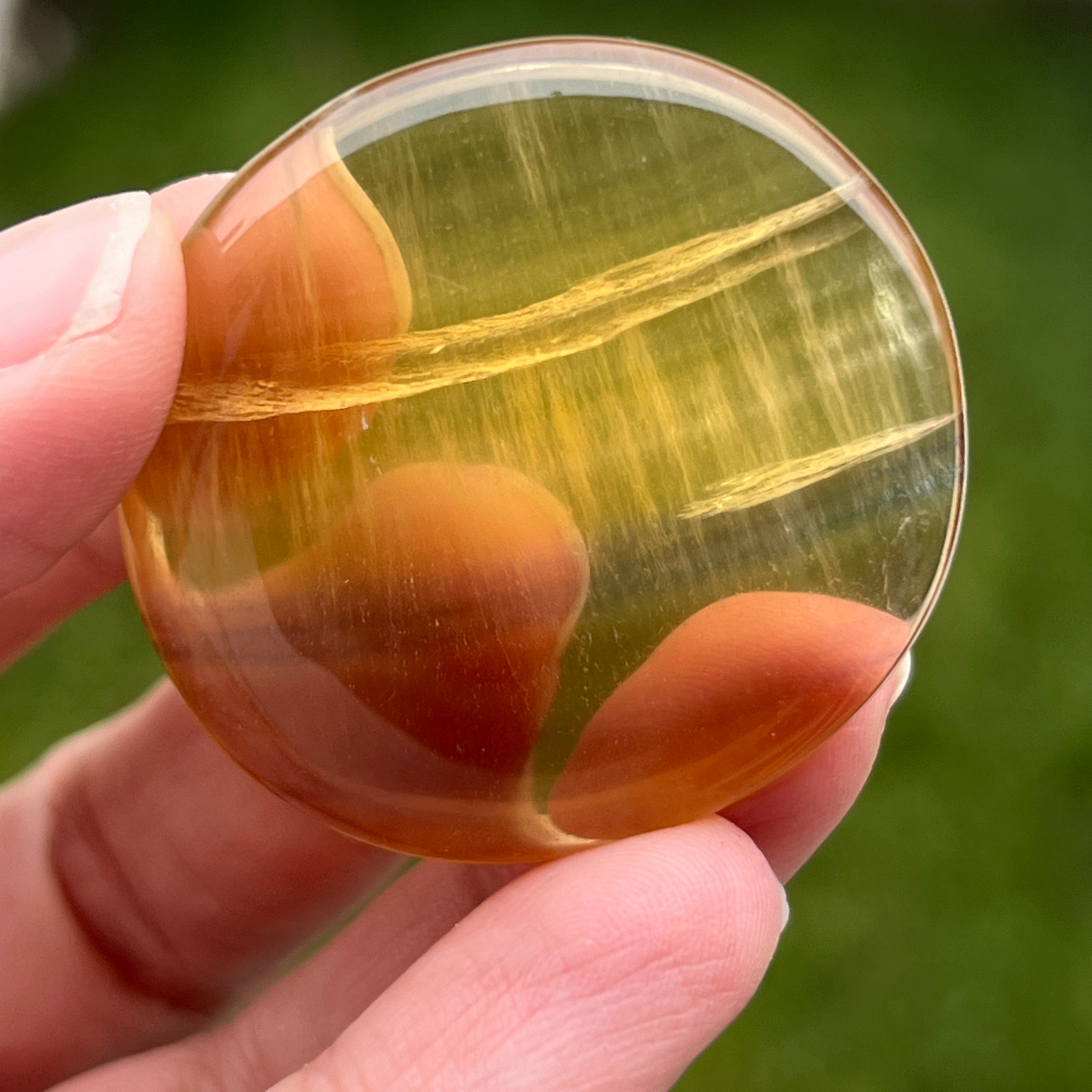 Reviews- Yellow Fluorite Palmstone | Model 2
