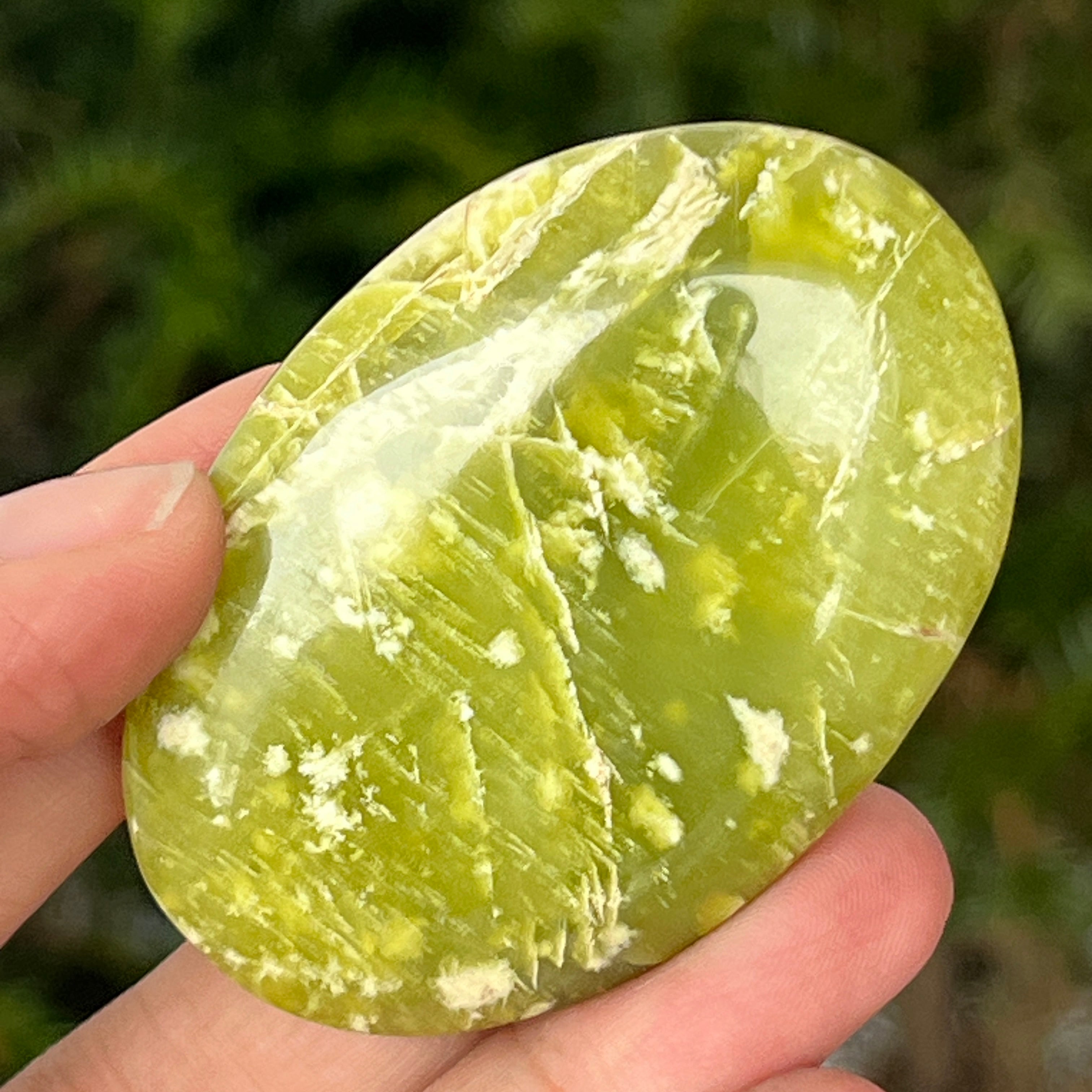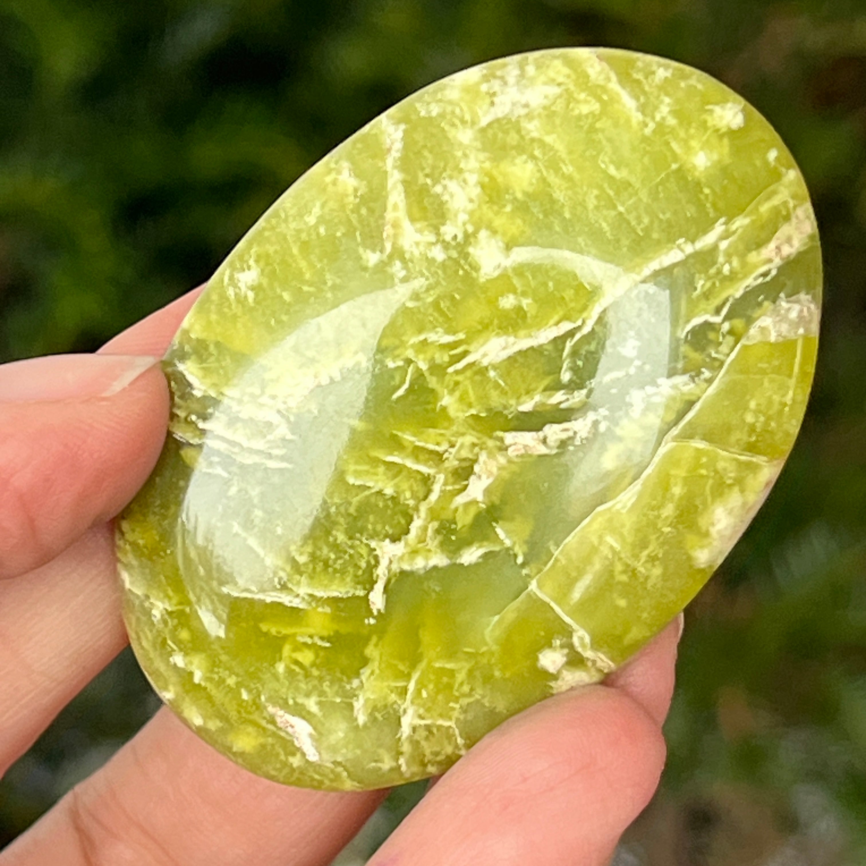Yellow serpentine palmstone XL7, size 9.7 * 4.9 * 2.1 cm