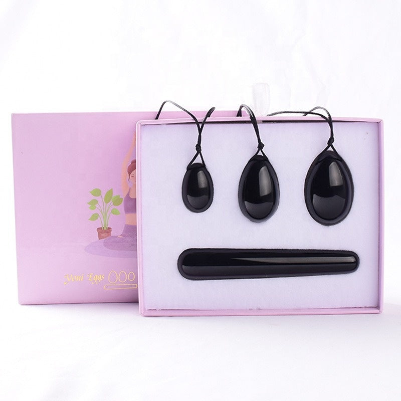 Yoni Eggs and Obsidian Wand - Set of 3 pieces